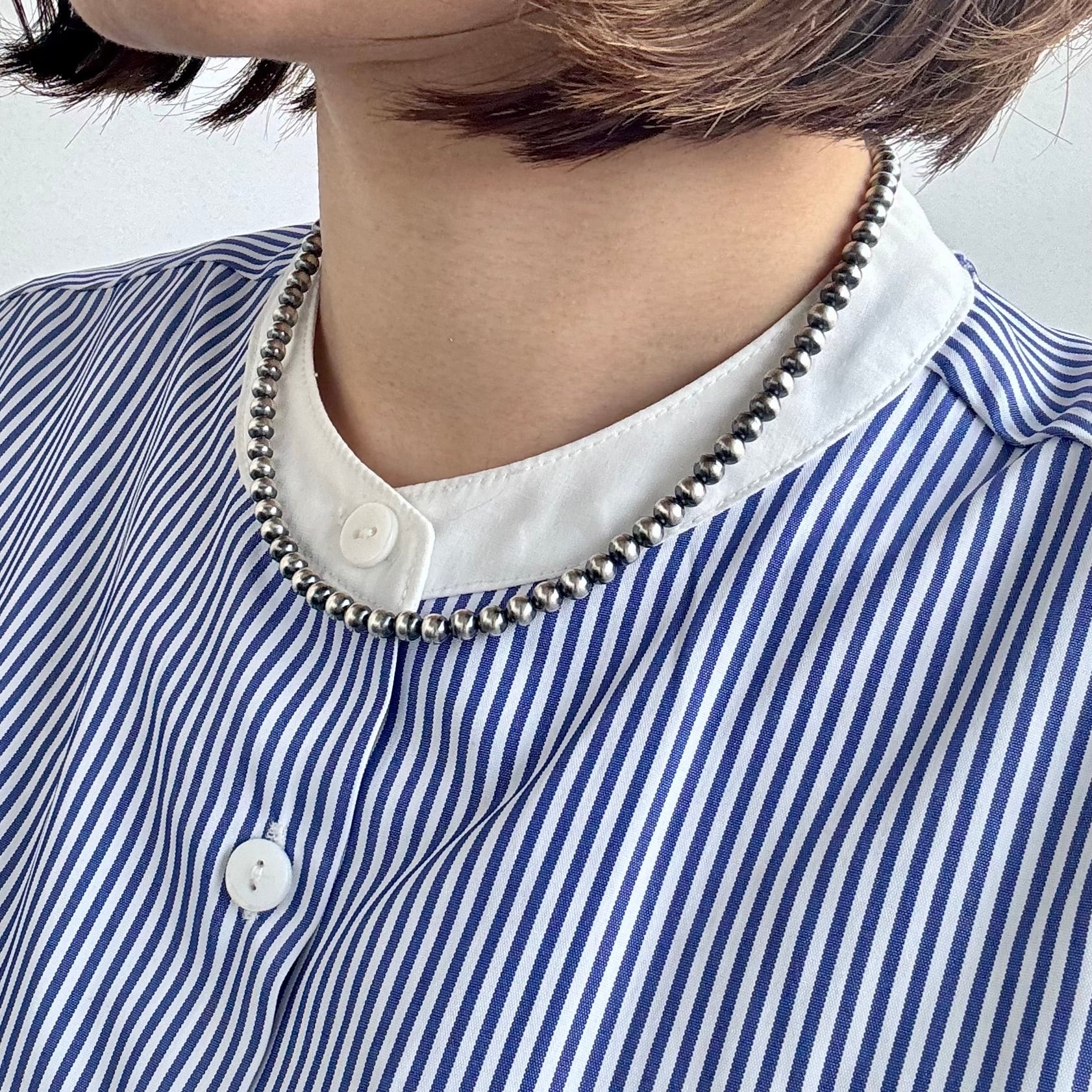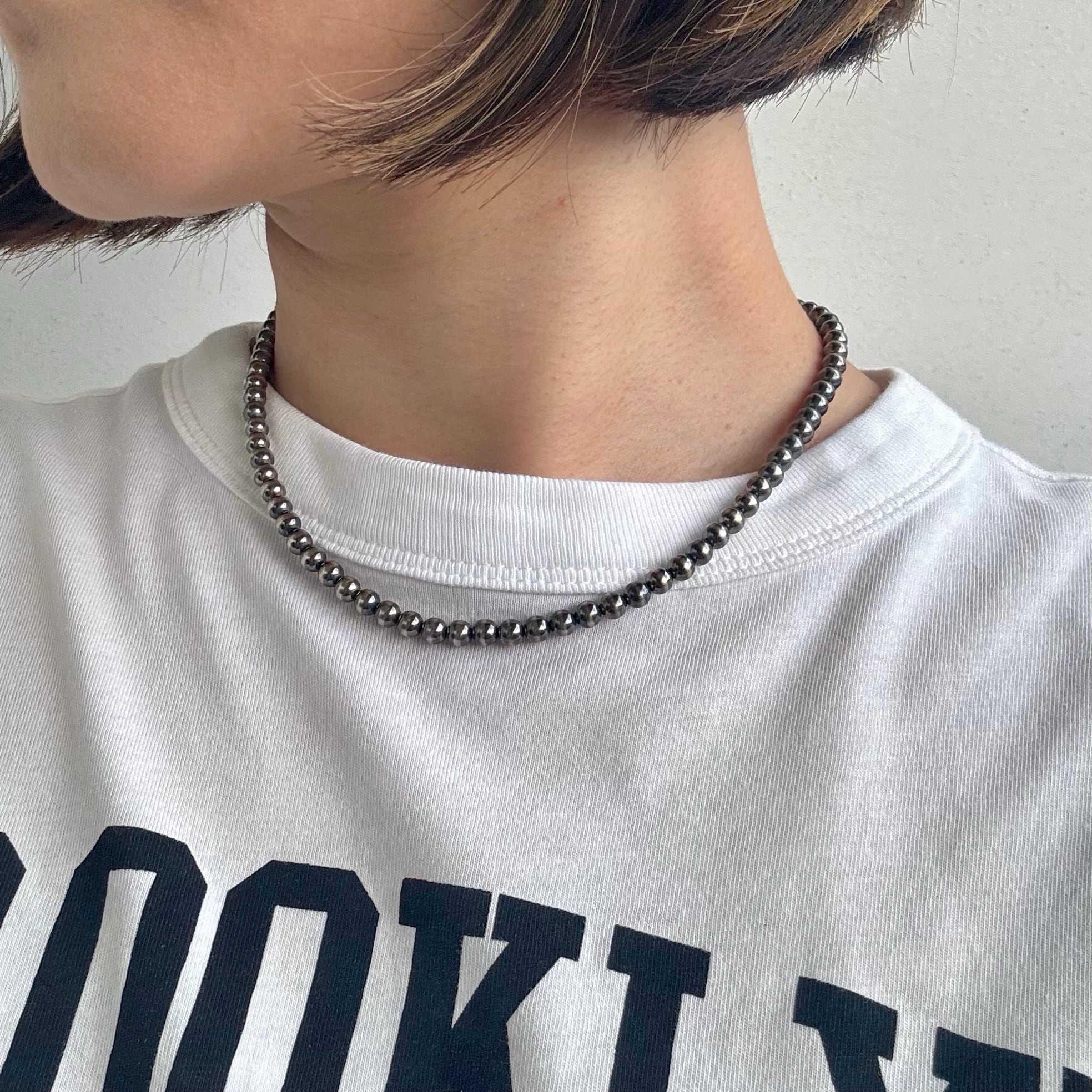 いぶし銀丸珠 5mm x 40cm ネックレス