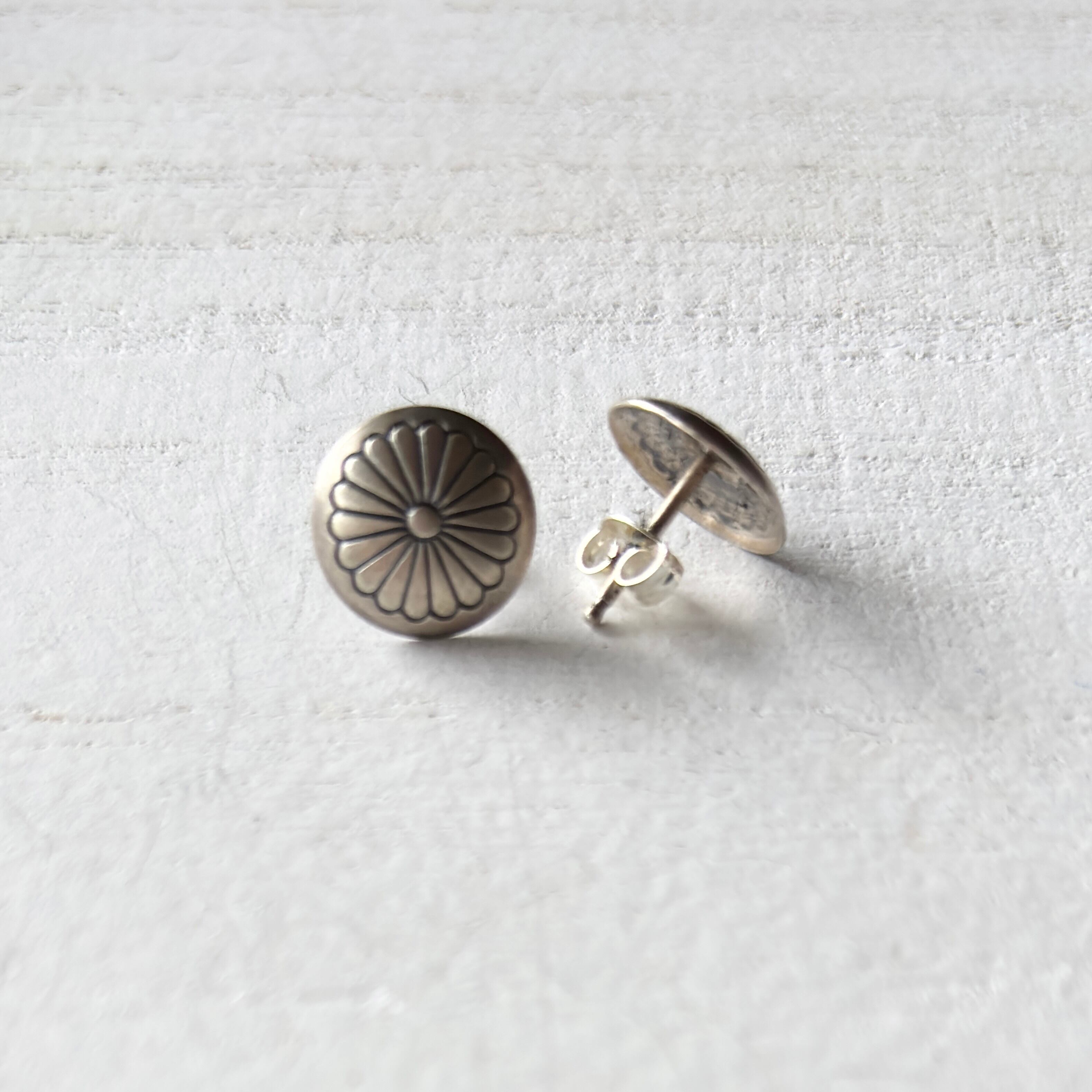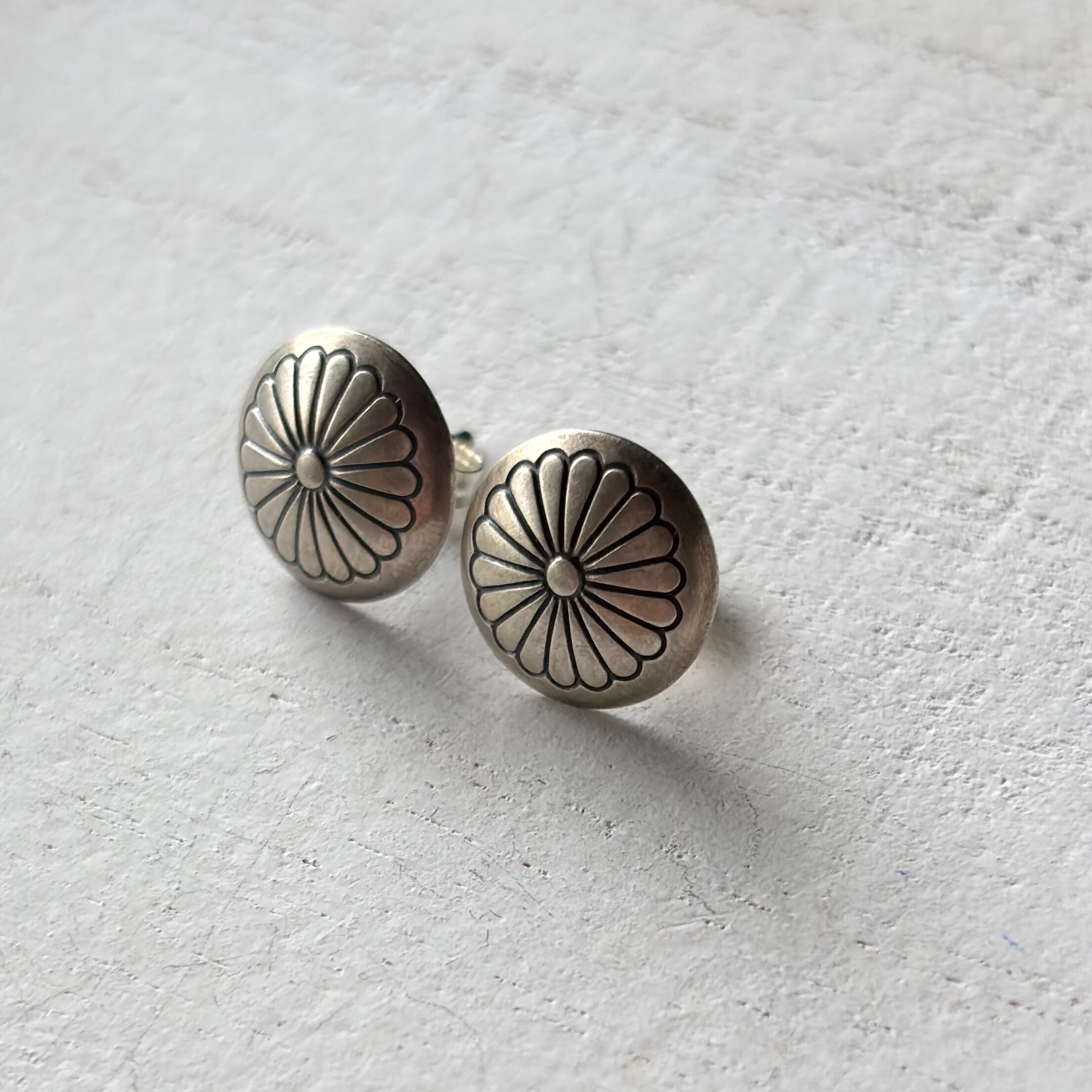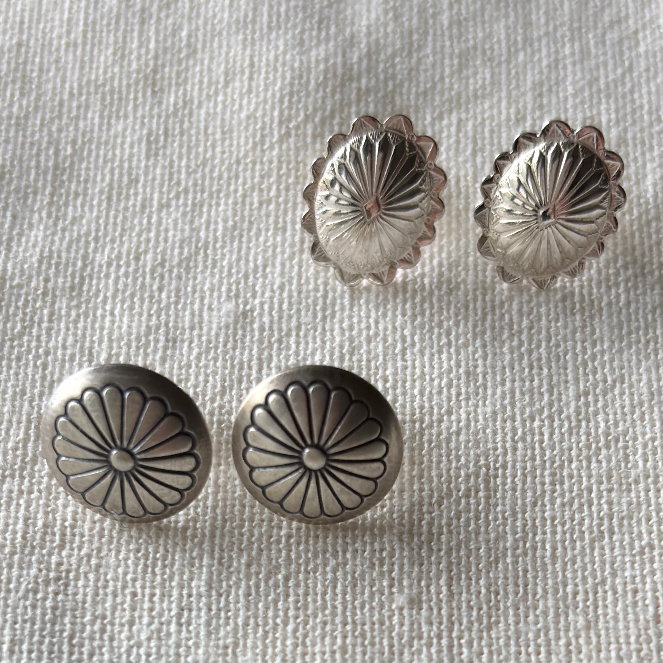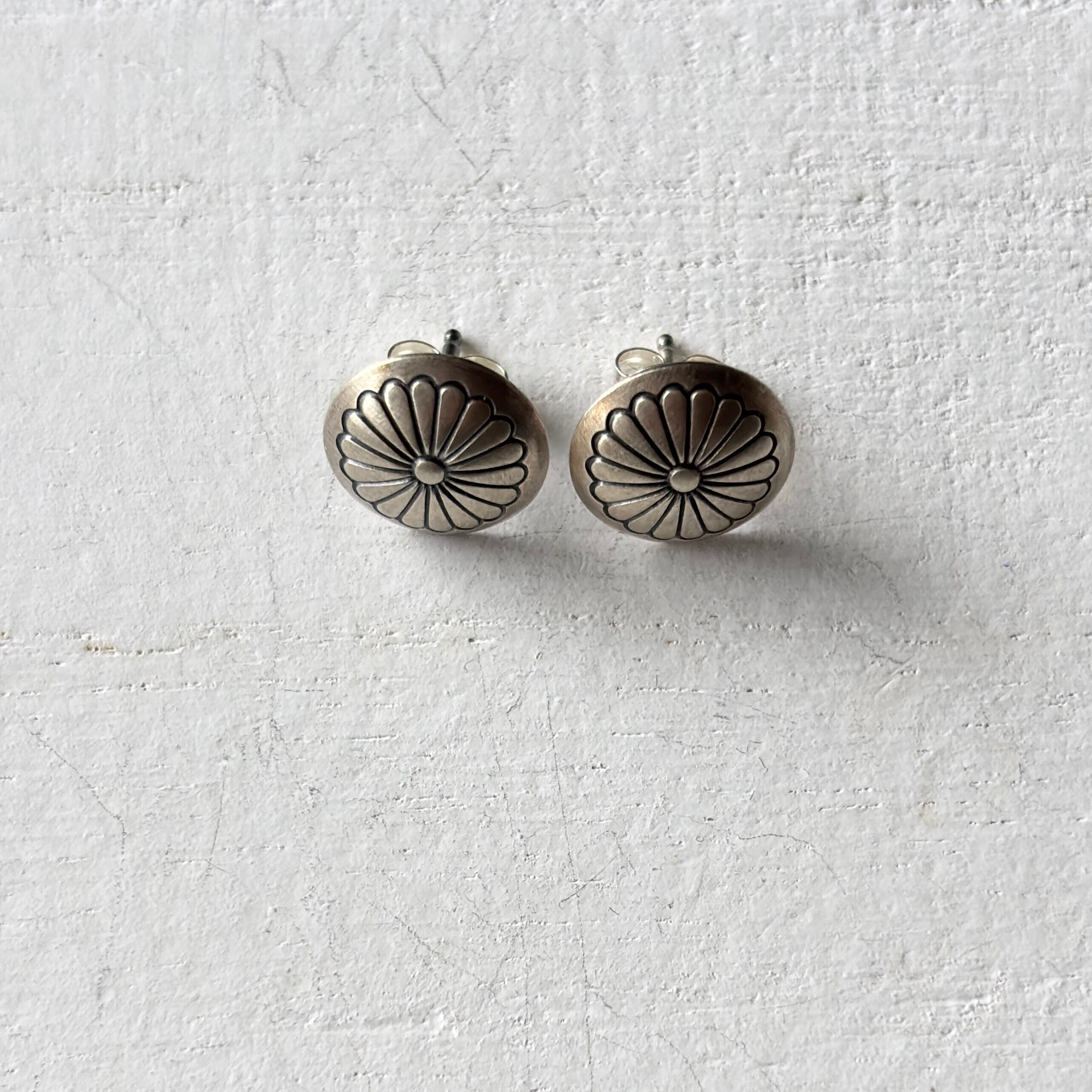 いぶし銀コンチョスタッズピアス(トラディショナルフラワー)