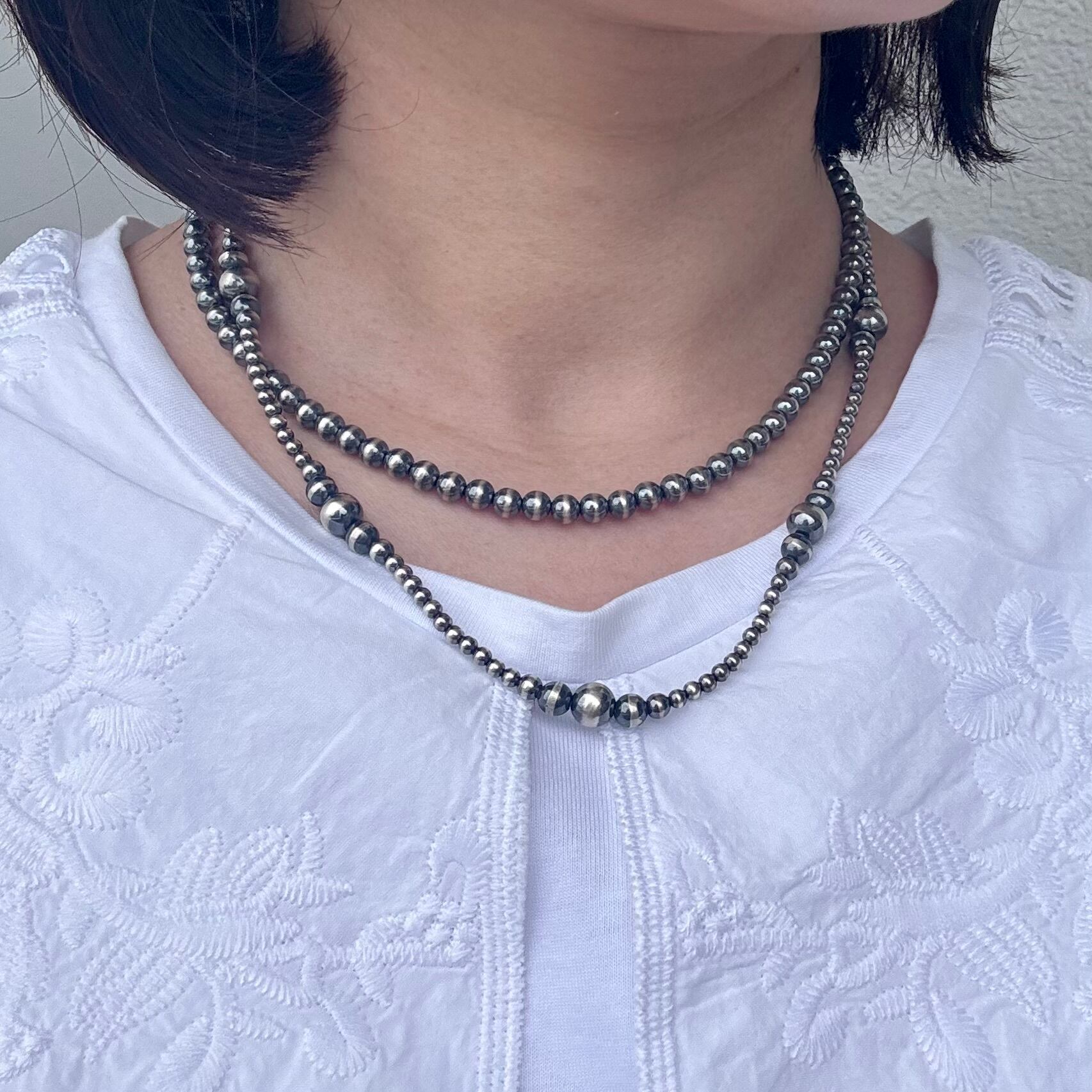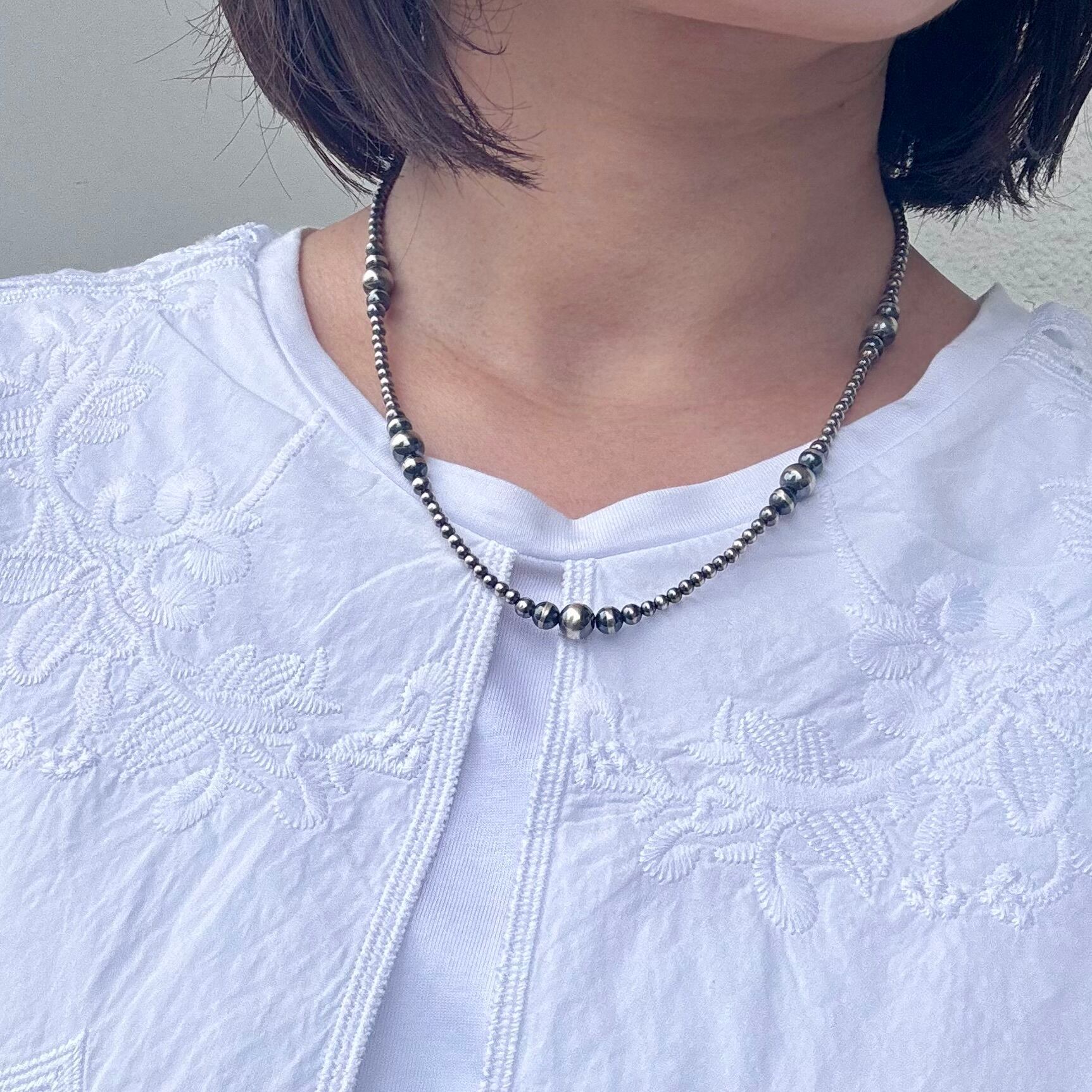 いぶし銀丸珠 サイズグラデーション ネックレス