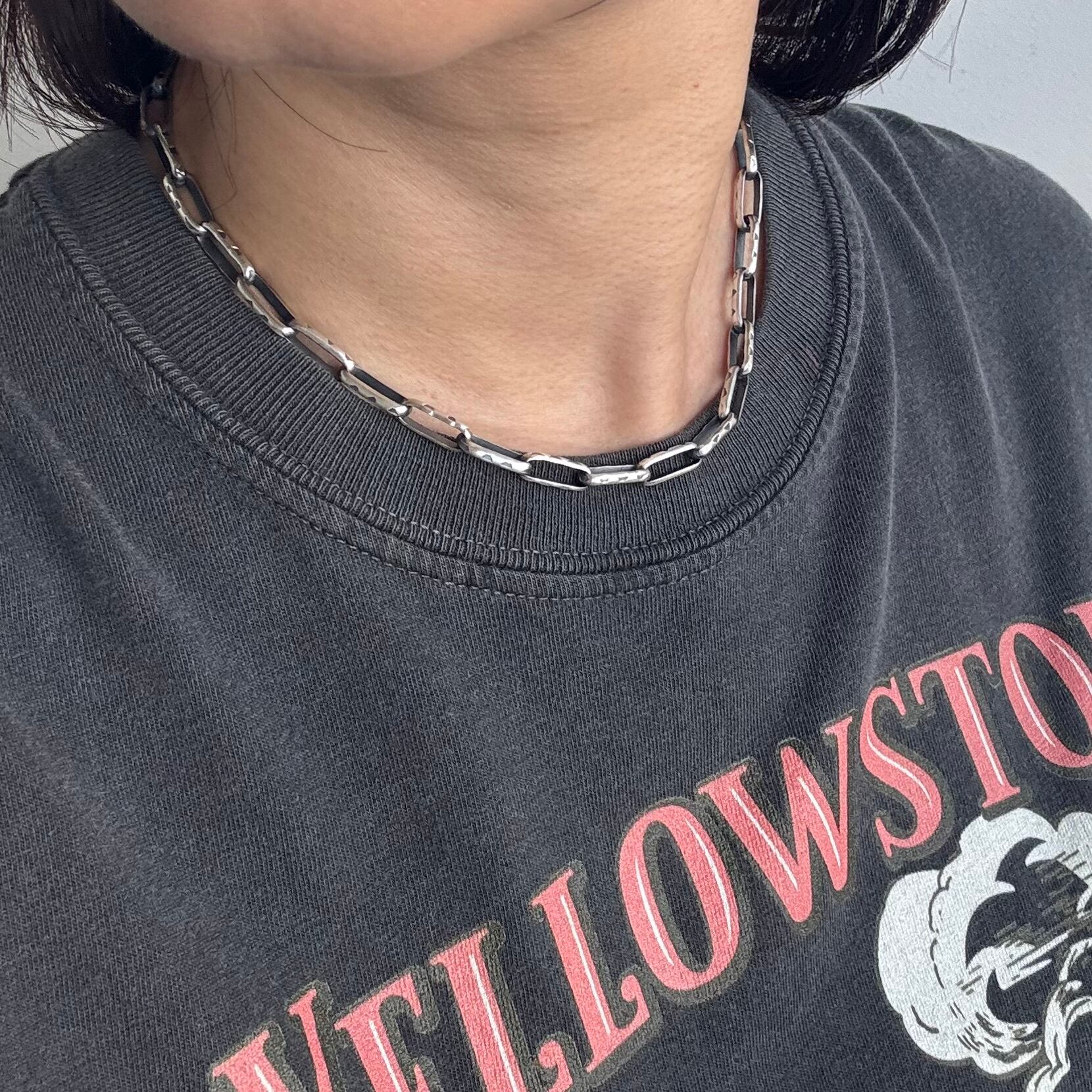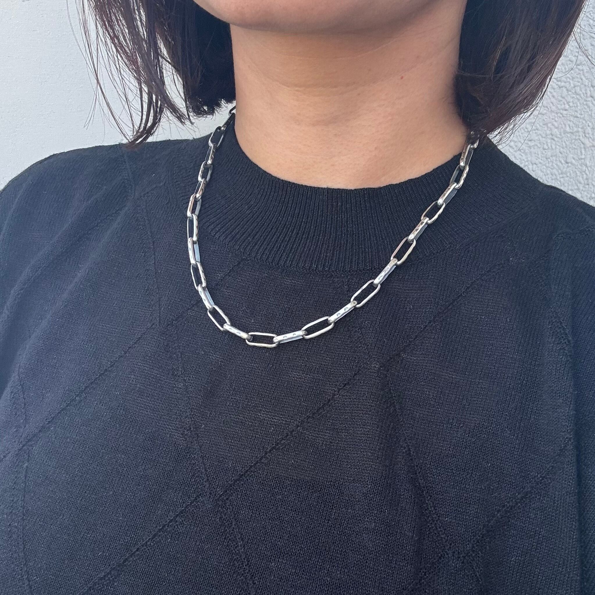 いぶし銀&厚めのコマで存在感のあるシルバーチェーンネックレス。