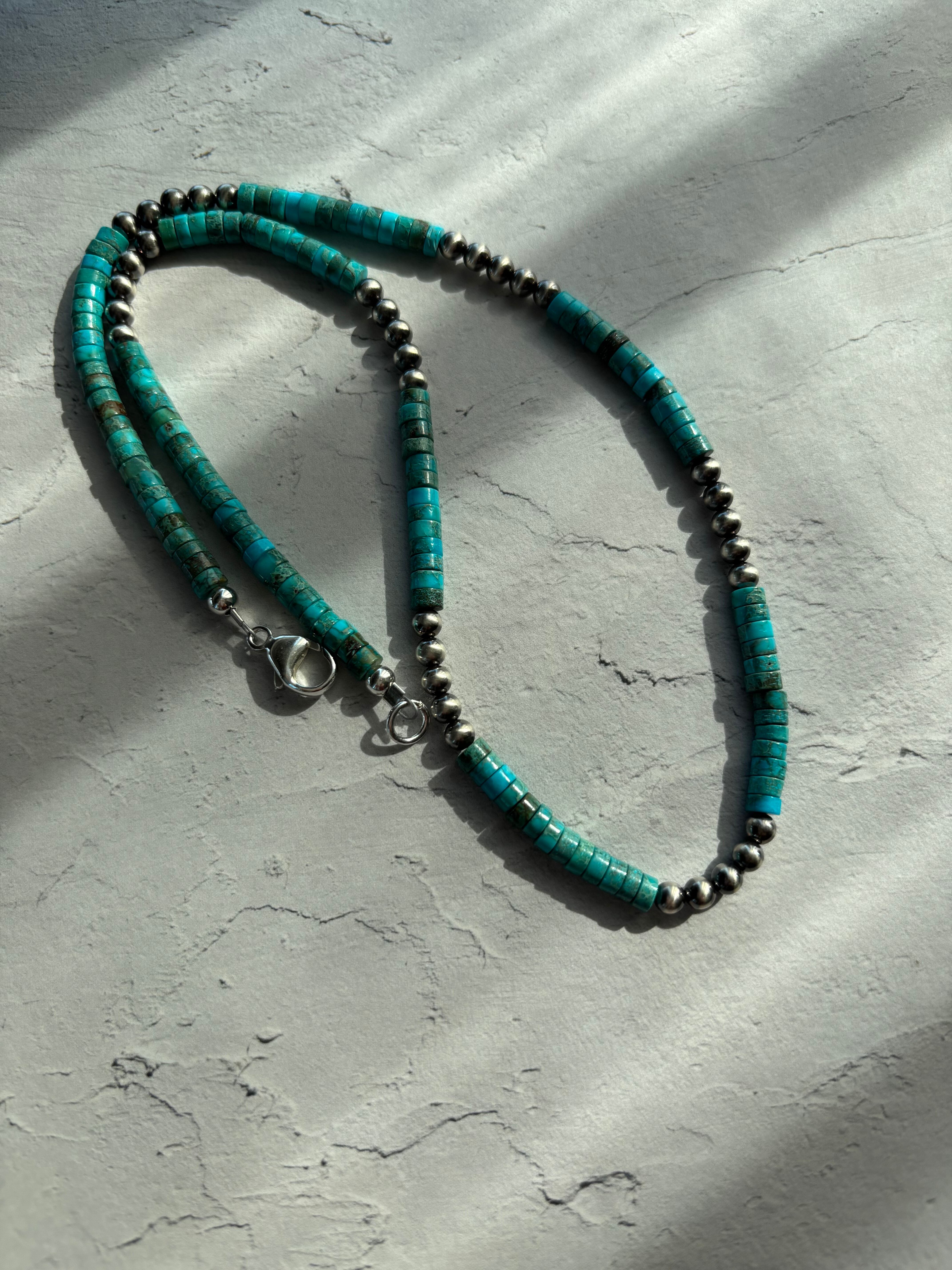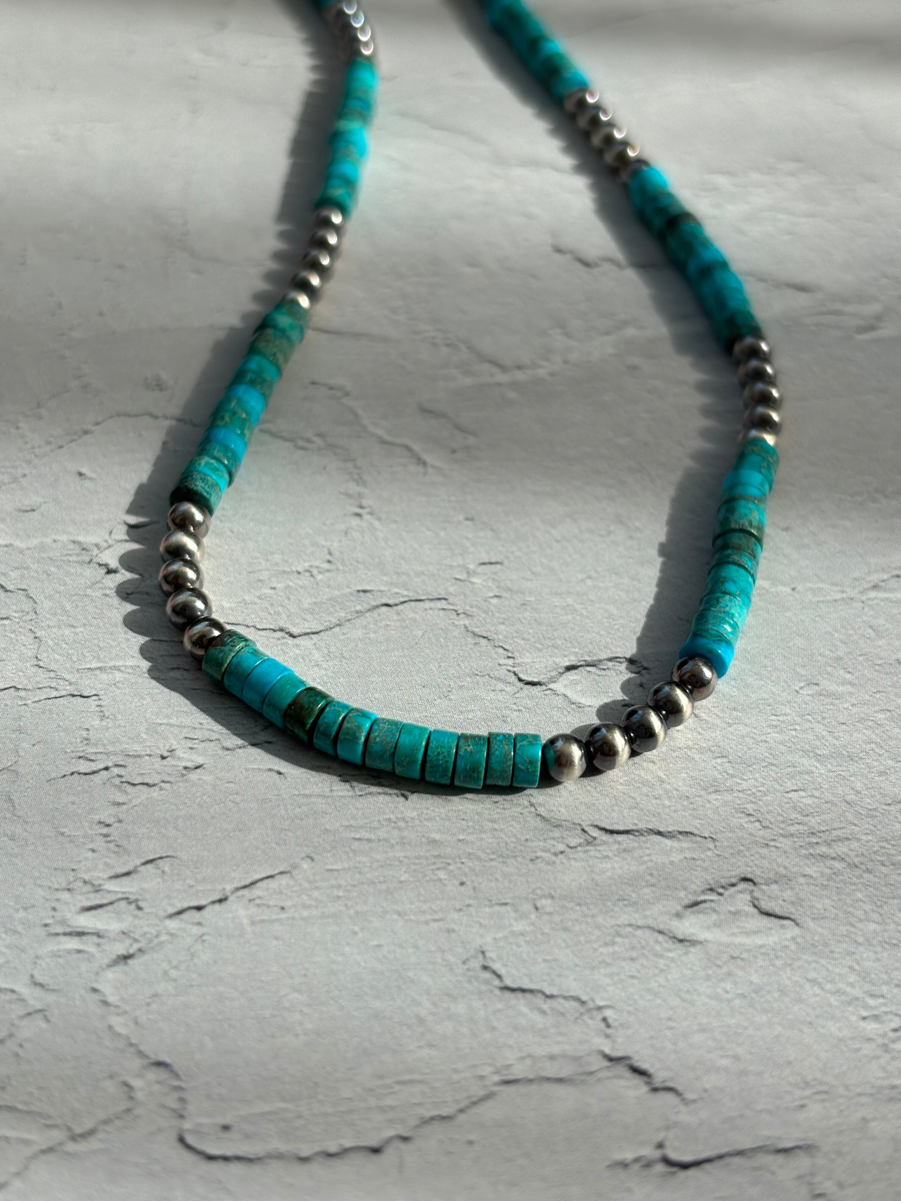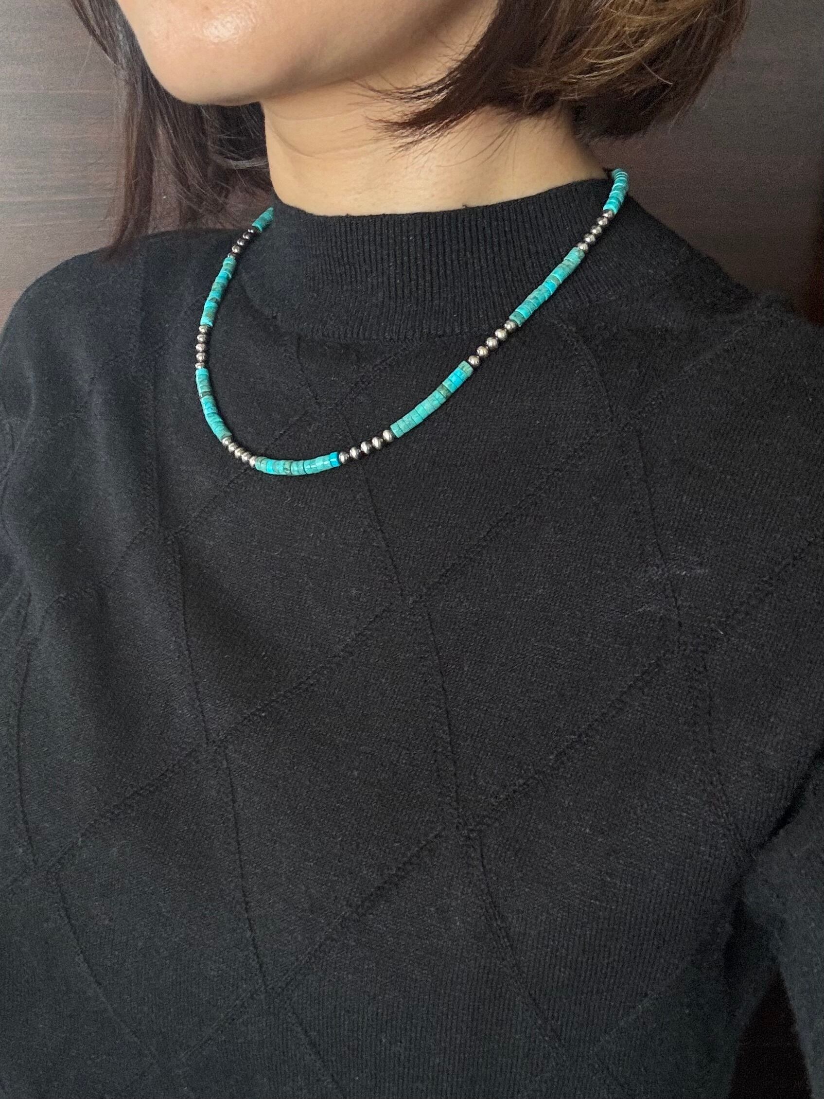ターコイズヒシビーズといぶし銀ナバホパールのミックスネックレス 45cm