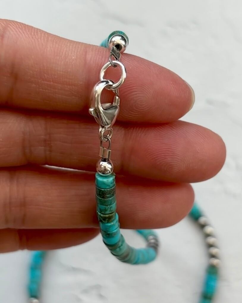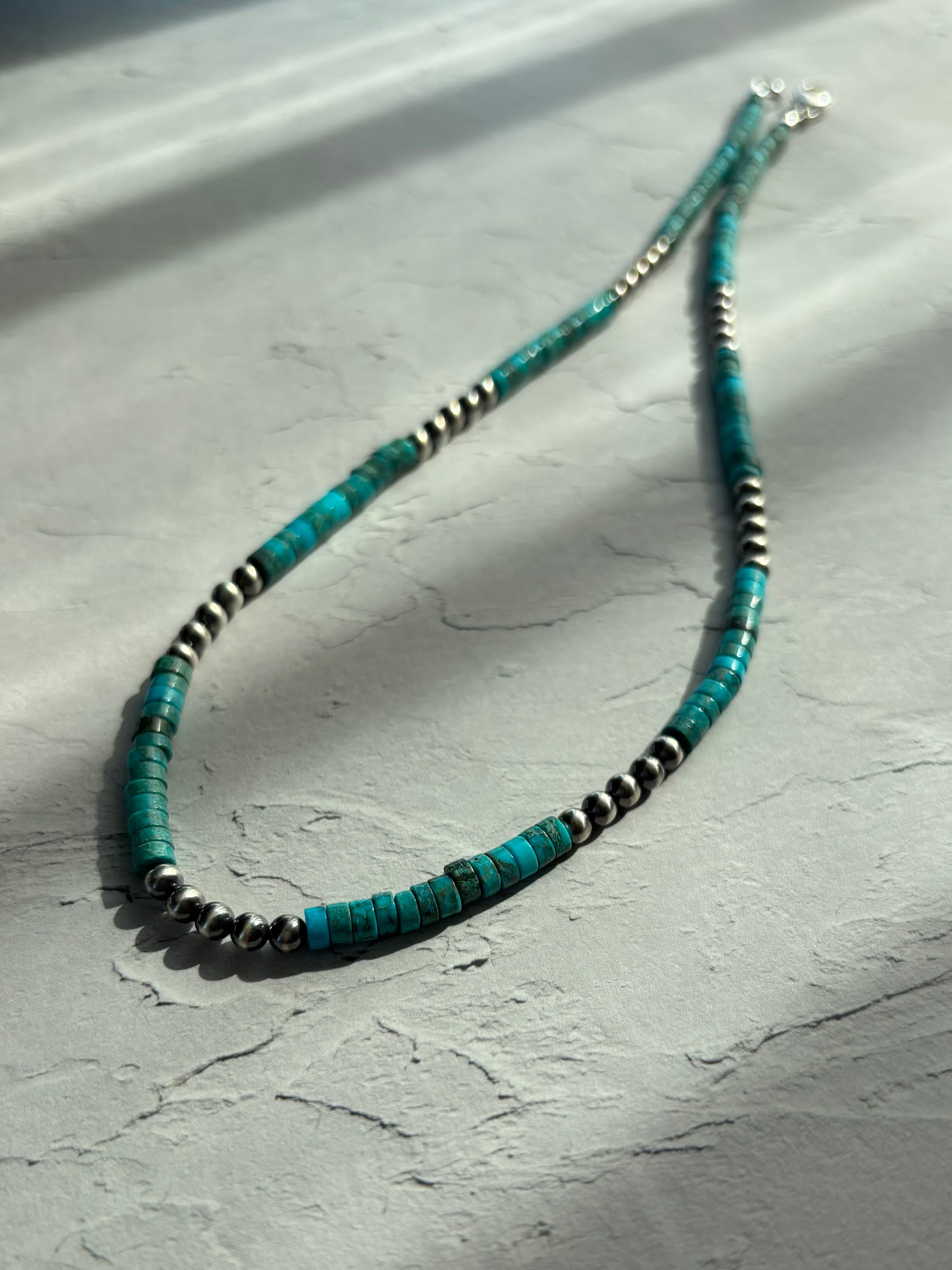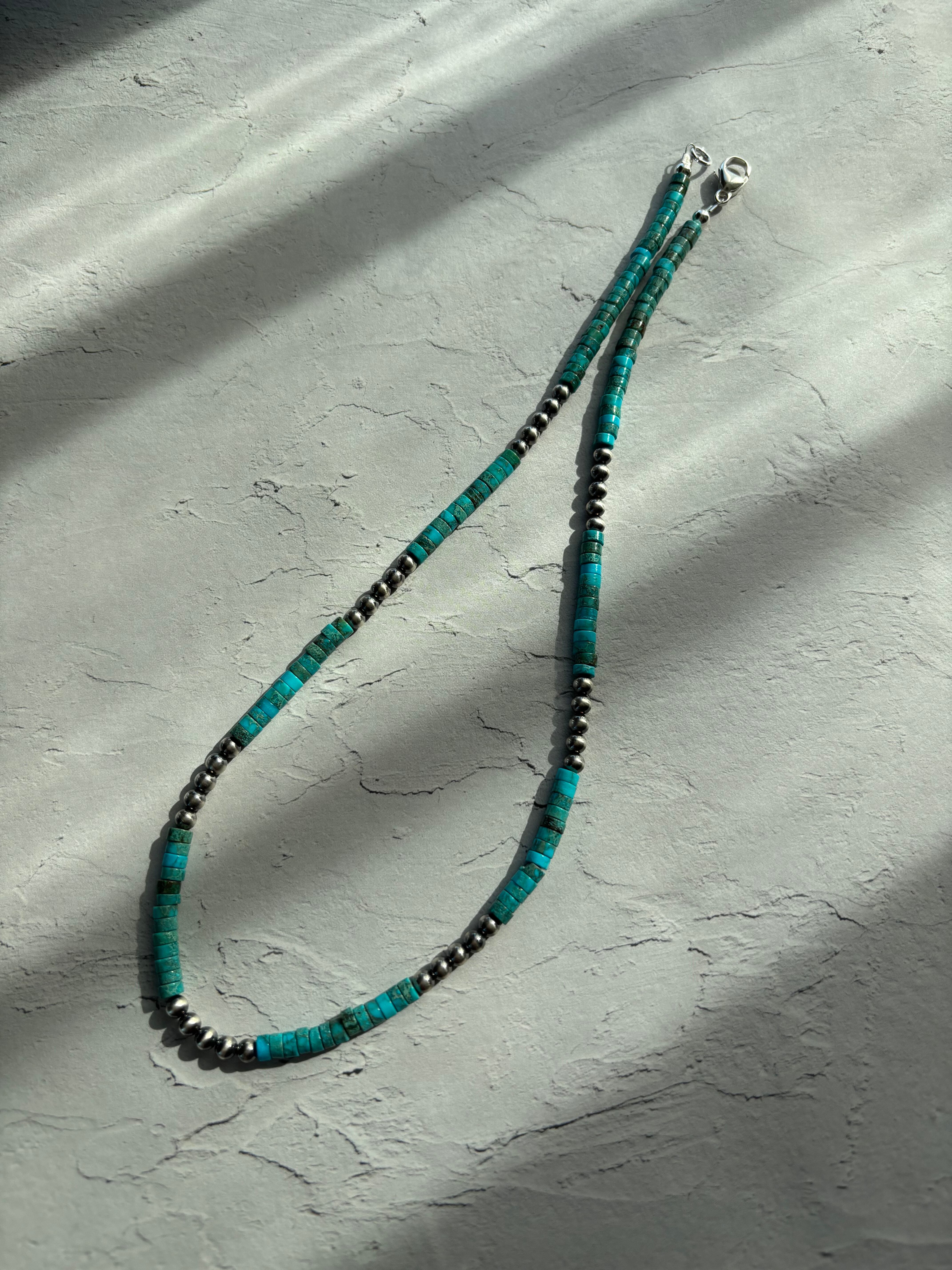 ターコイズヒシビーズといぶし銀ナバホパールのミックスネックレス 45cm
