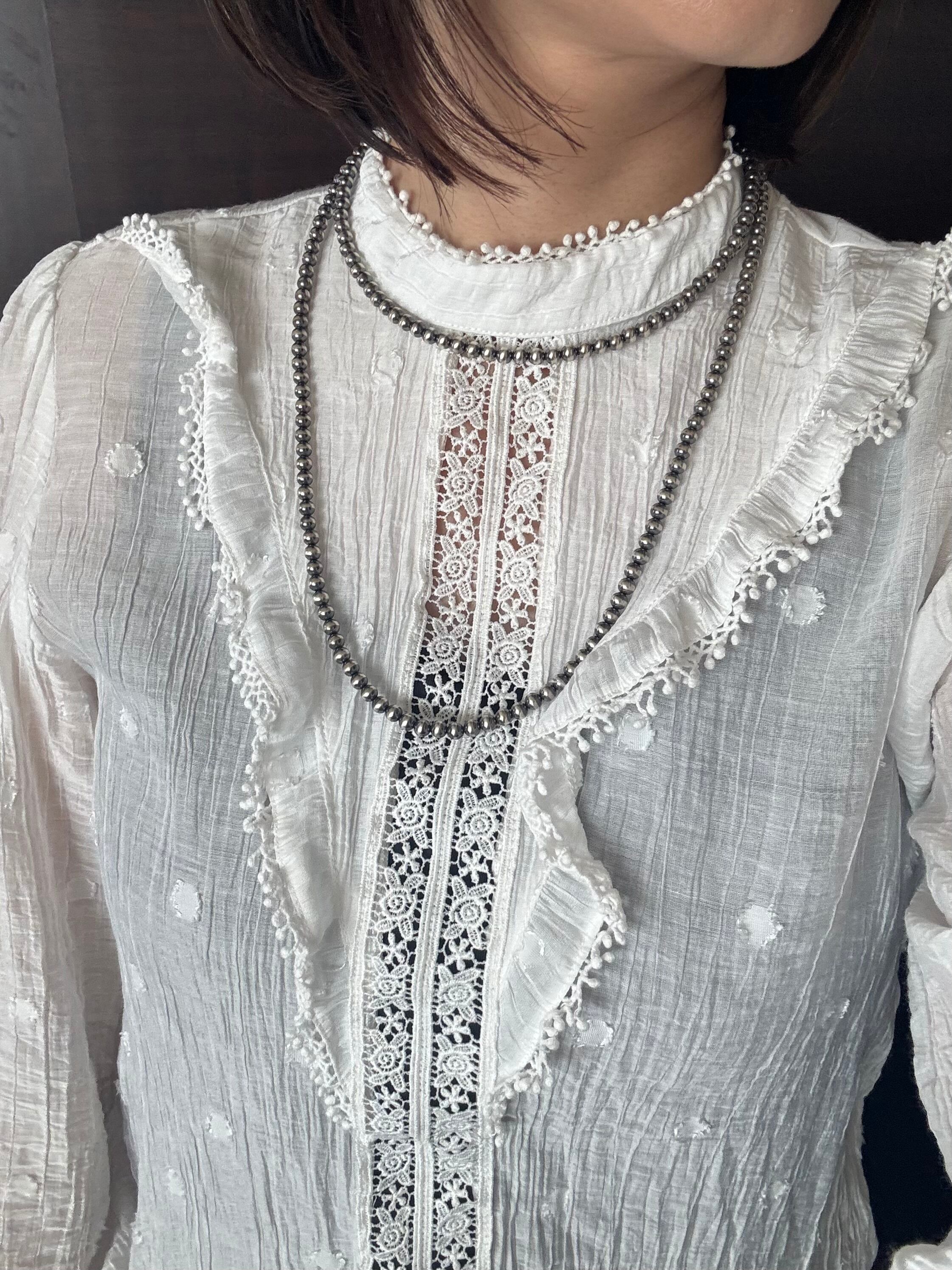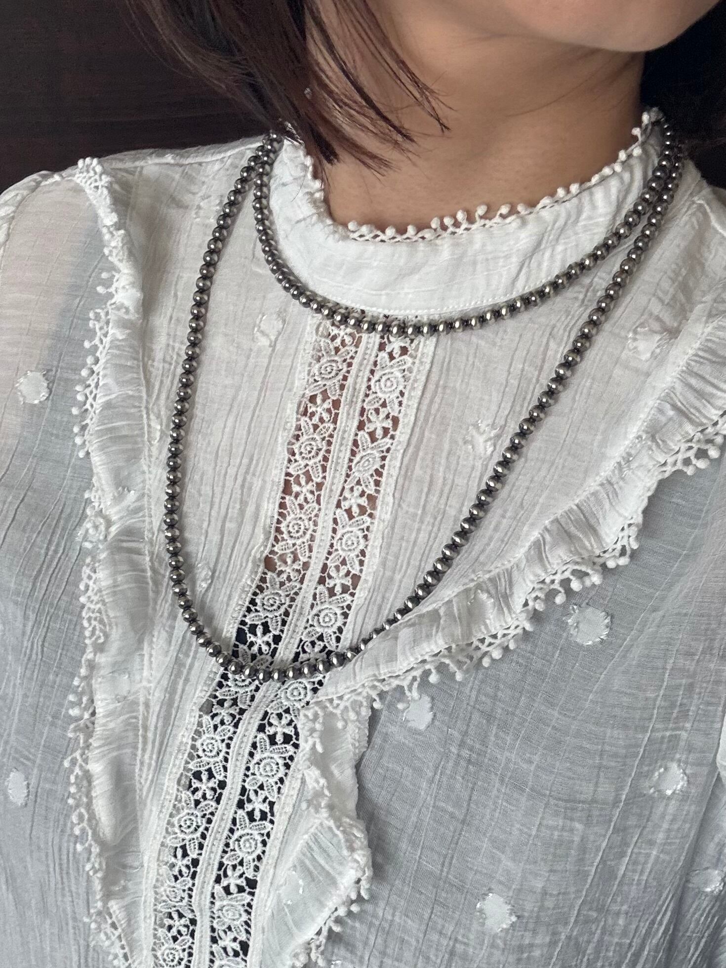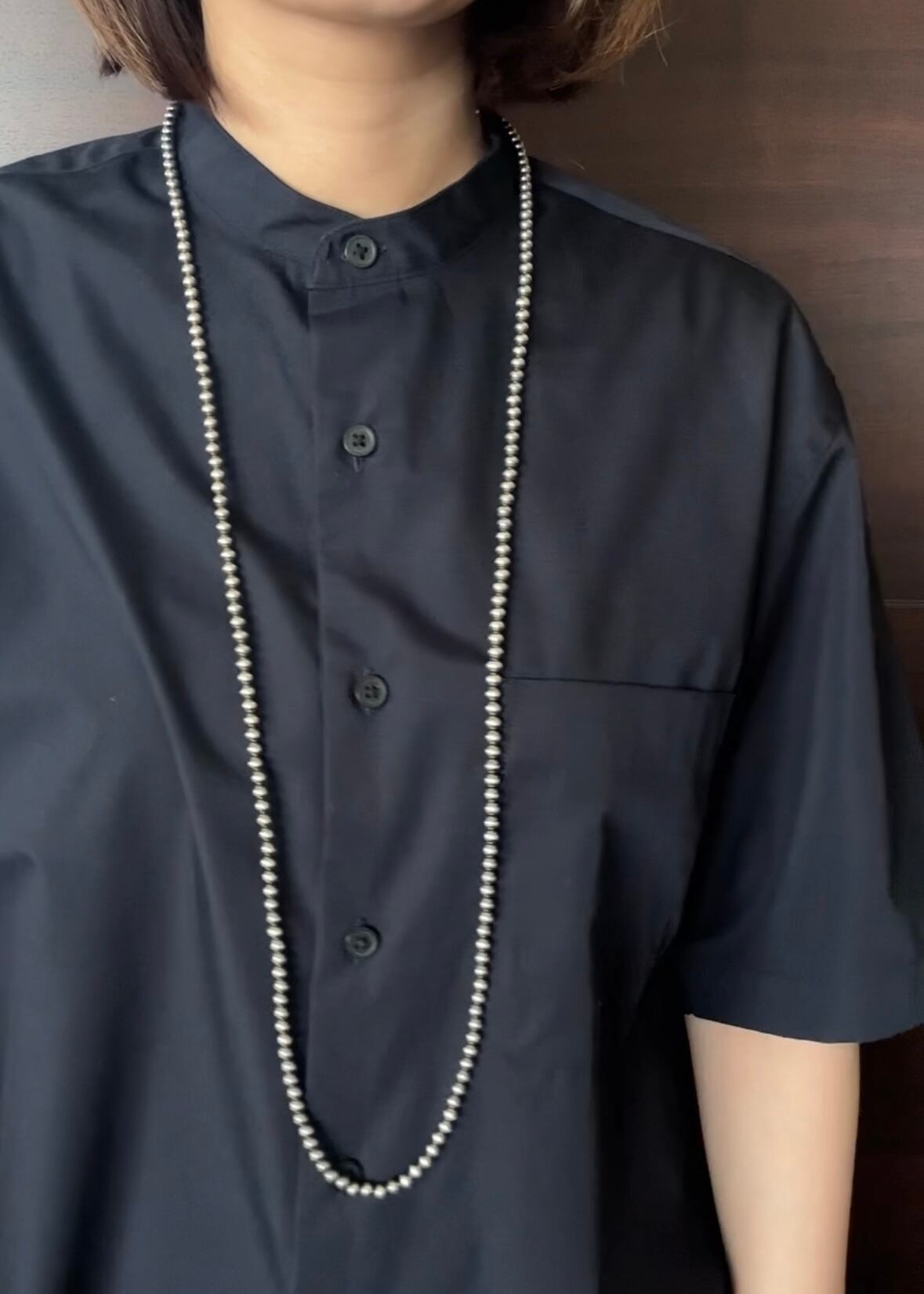 いぶし銀丸珠 5mm x 100cm ネックレス