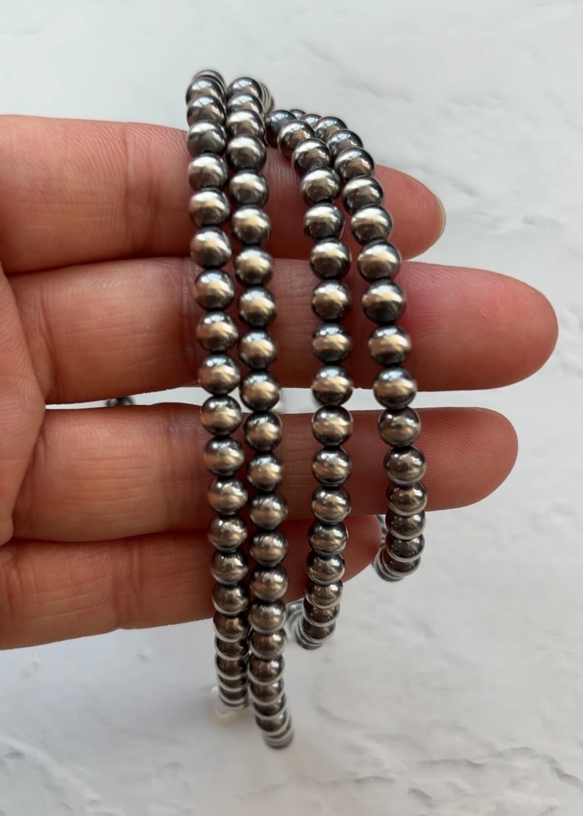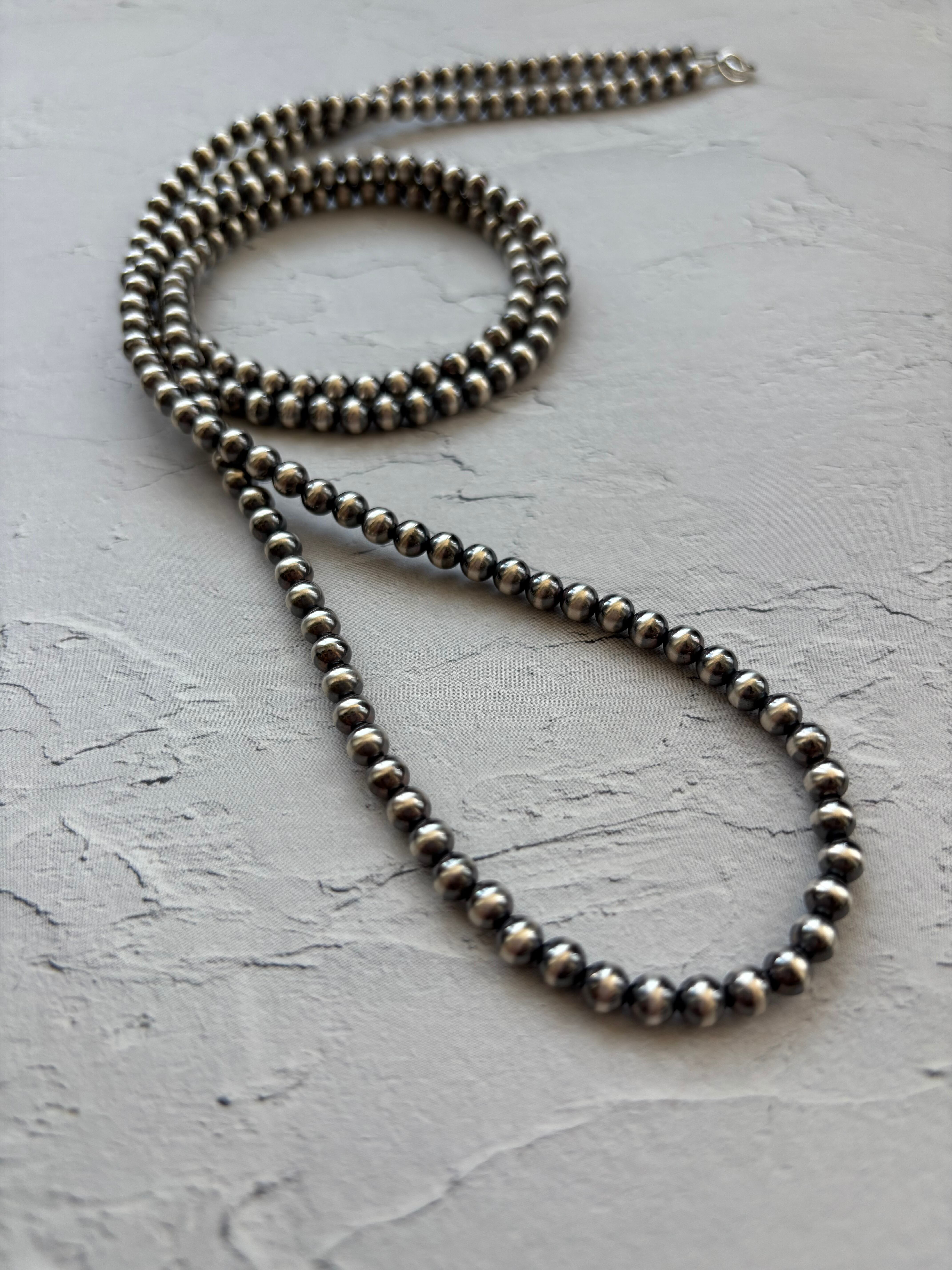 いぶし銀5mm珠 x 100cm ロングネックレス