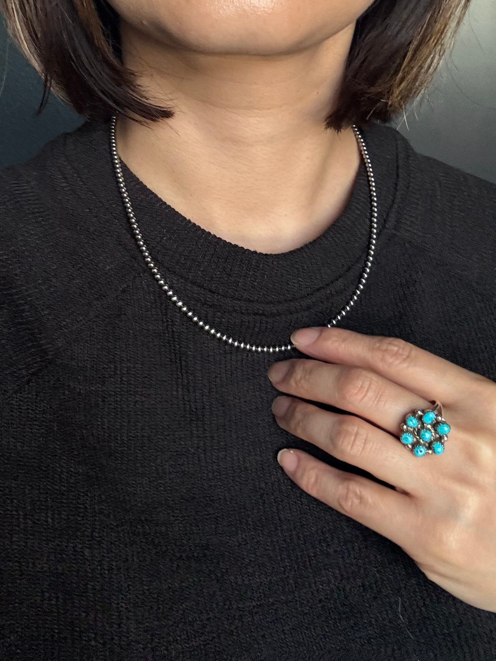 いぶし銀丸珠 3mm x 45cm ネックレス