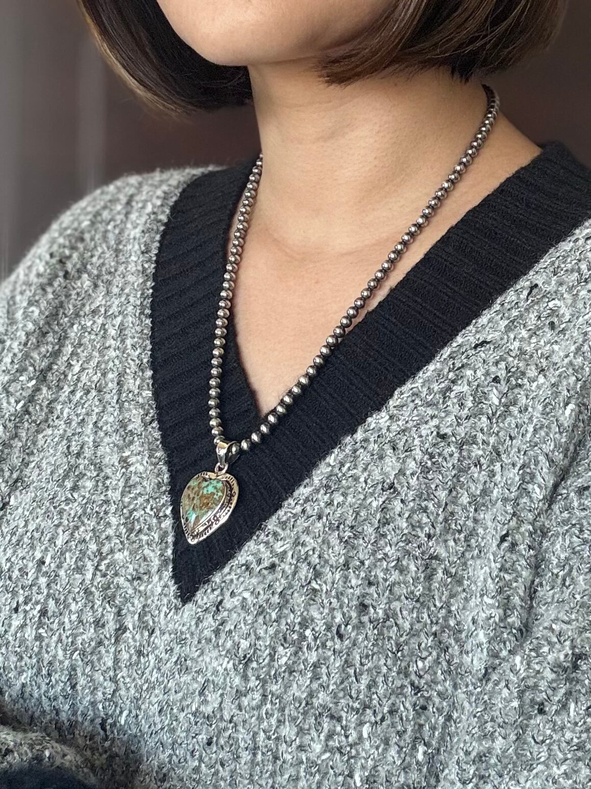 いぶし銀丸珠は、シンプルながらも個性的な輝きを放ち、カジュアルな装いにはもちろん、ブラウスやワンピースなどキレイ目な装いにもとても良くマッチしてくれます。