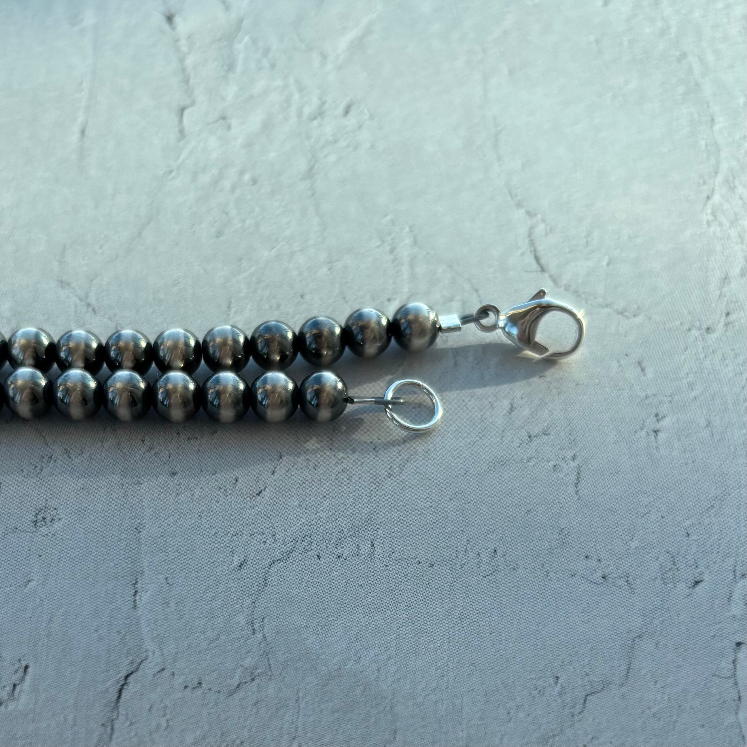 ビーズ、一つひとつは、手作業で仕上げられたいぶし銀珠で、その風合いのある質感により、上品さを引き立てます。