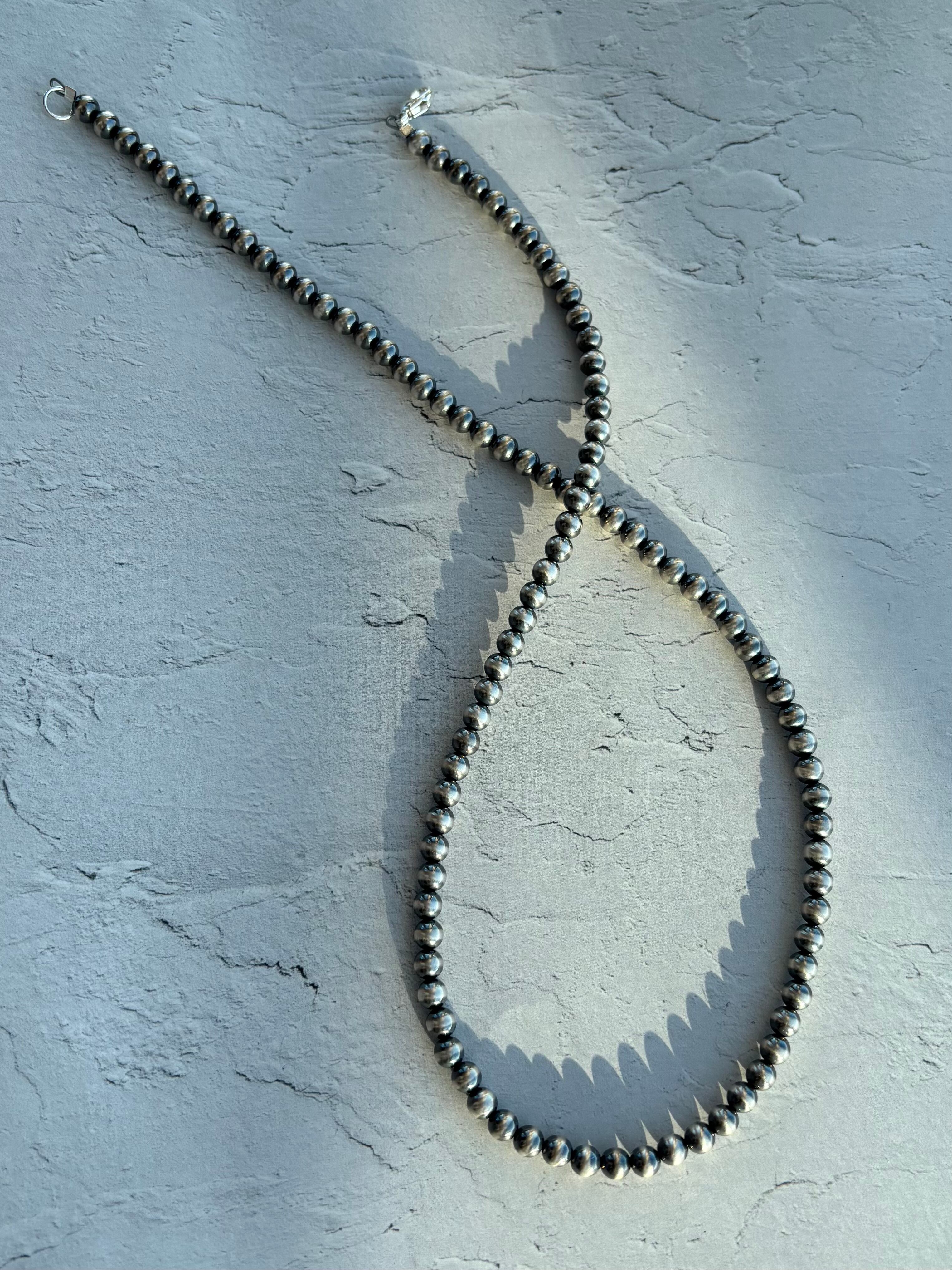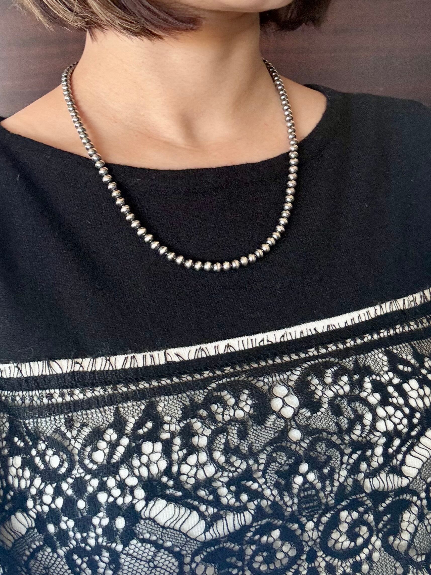いぶし銀丸珠 5mm x 50cm ネックレス