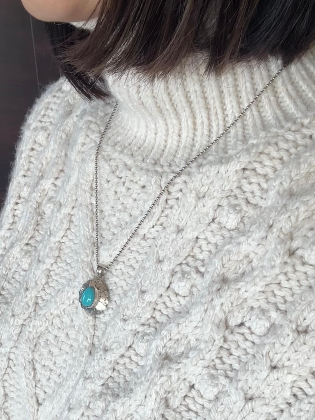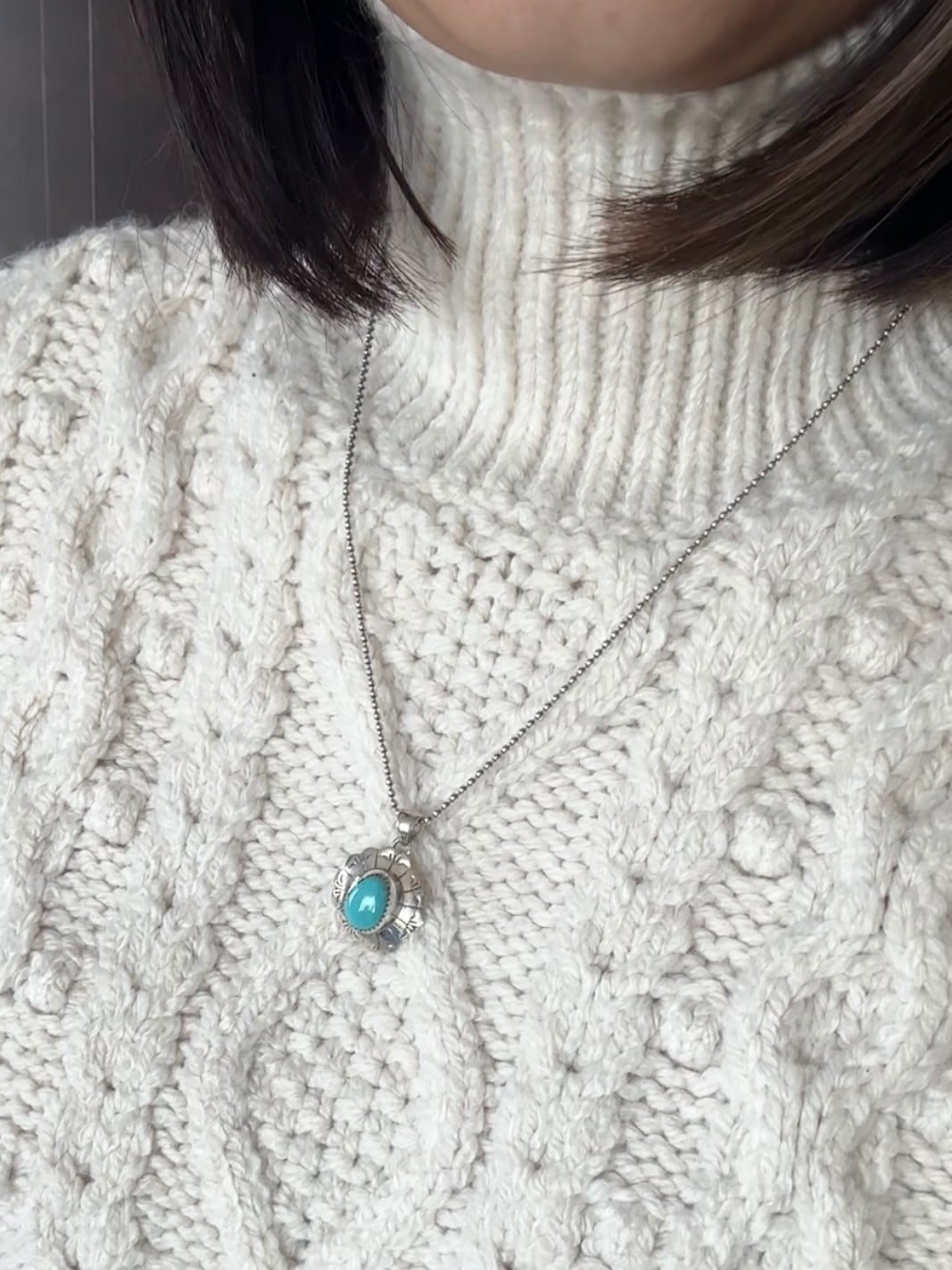 優しいグリーン系のお色のターコイズカラーが肌に馴染み、
