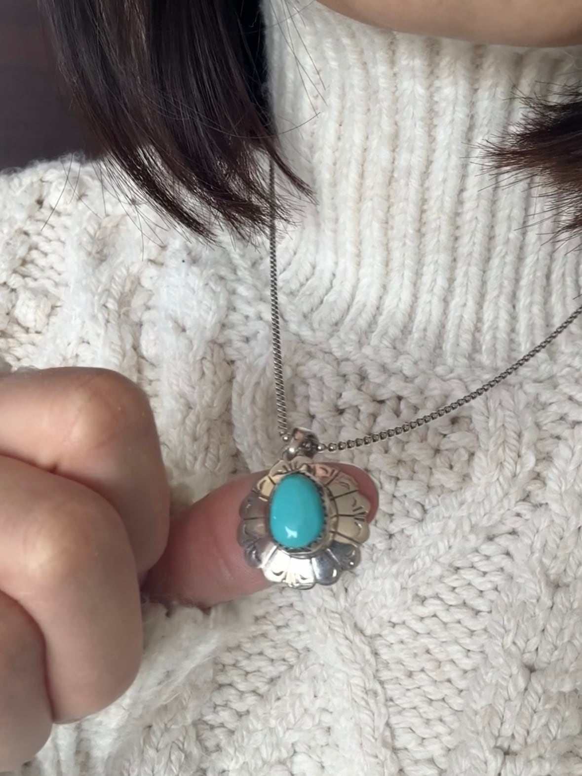ヴィンテージ ターコイズフラワーペンダントトップ