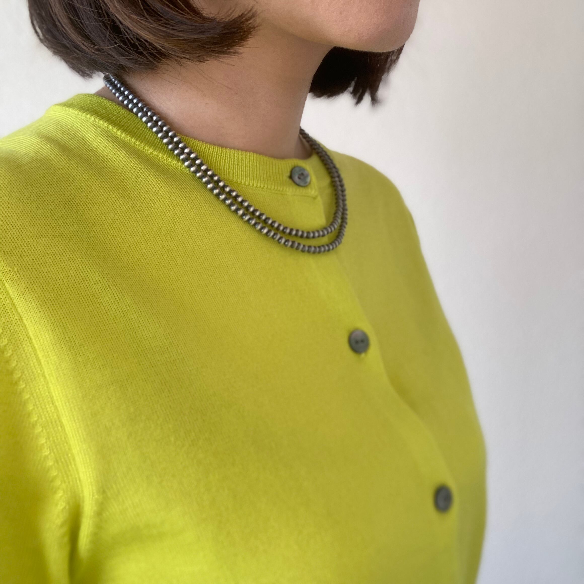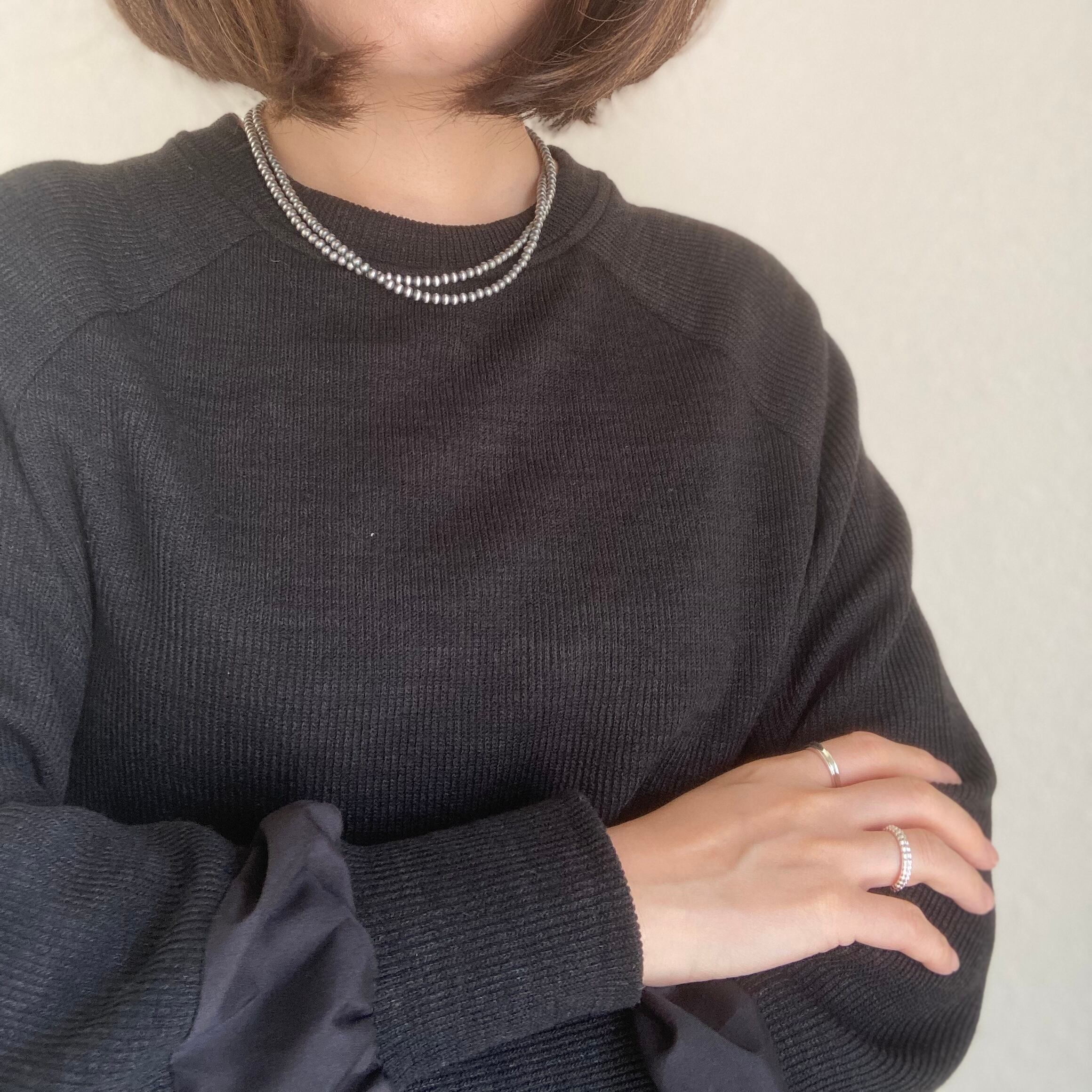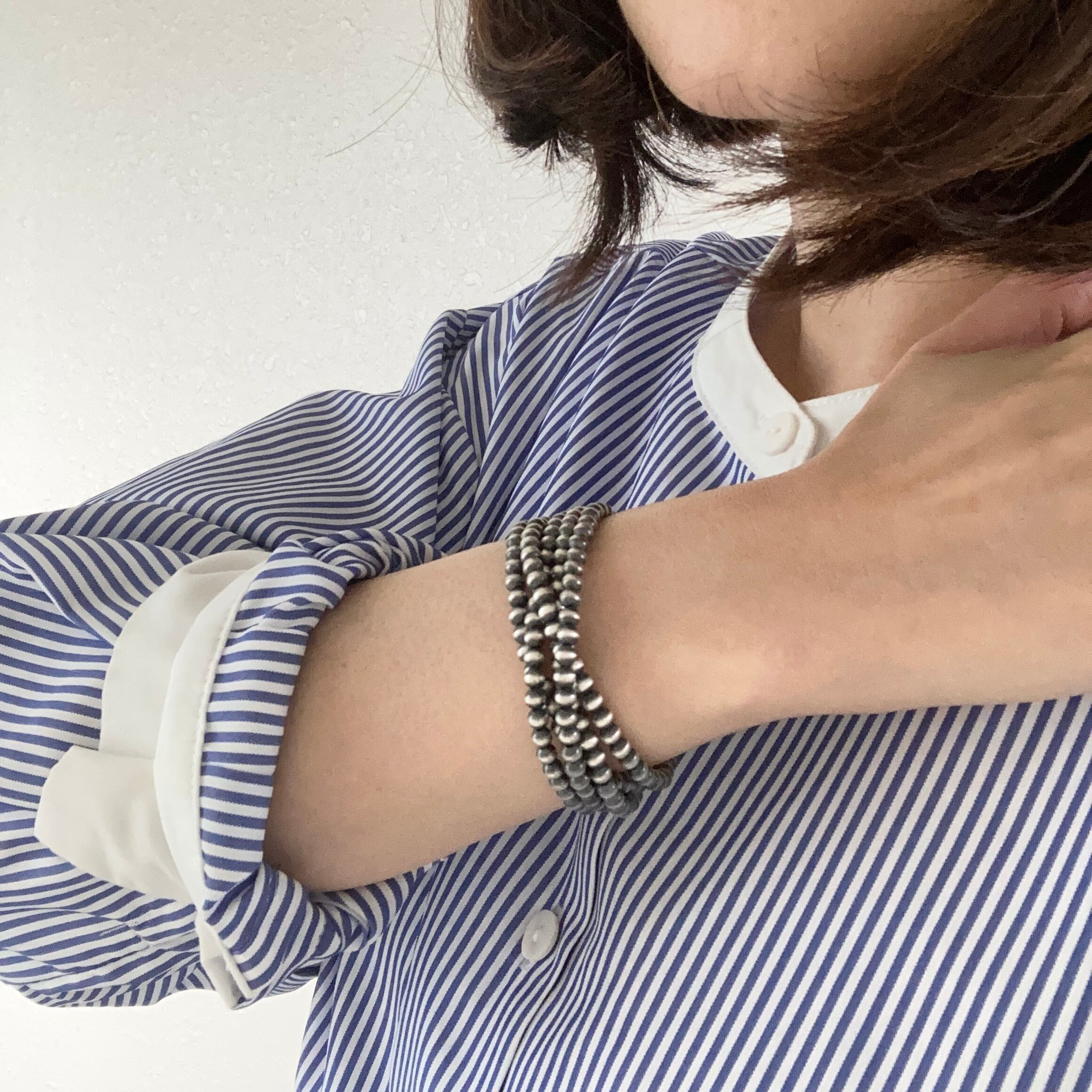 落ち着き感のあるいぶし銀タイプの珠で品もあるため、カジュアルにも綺麗目な格好にもマッチします。