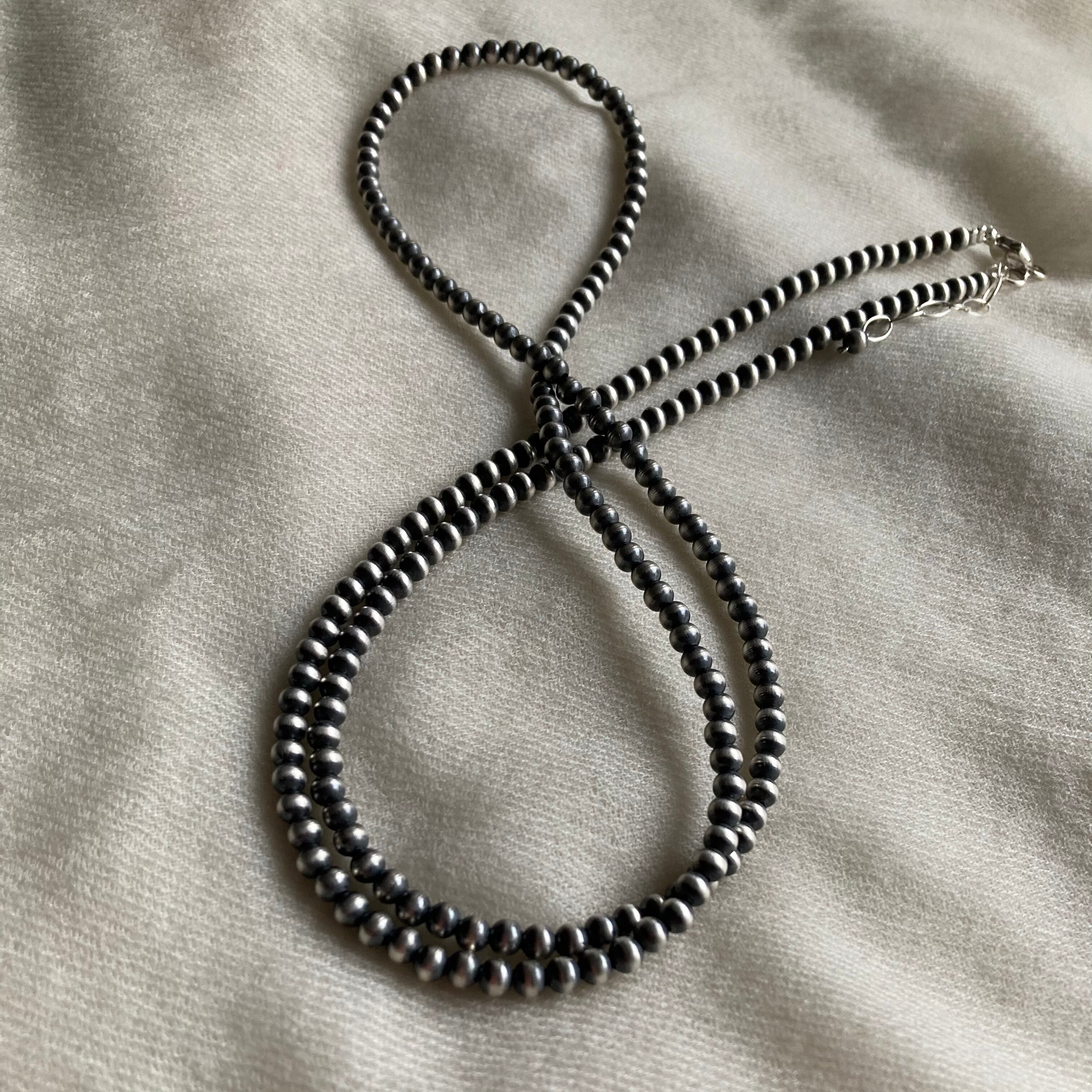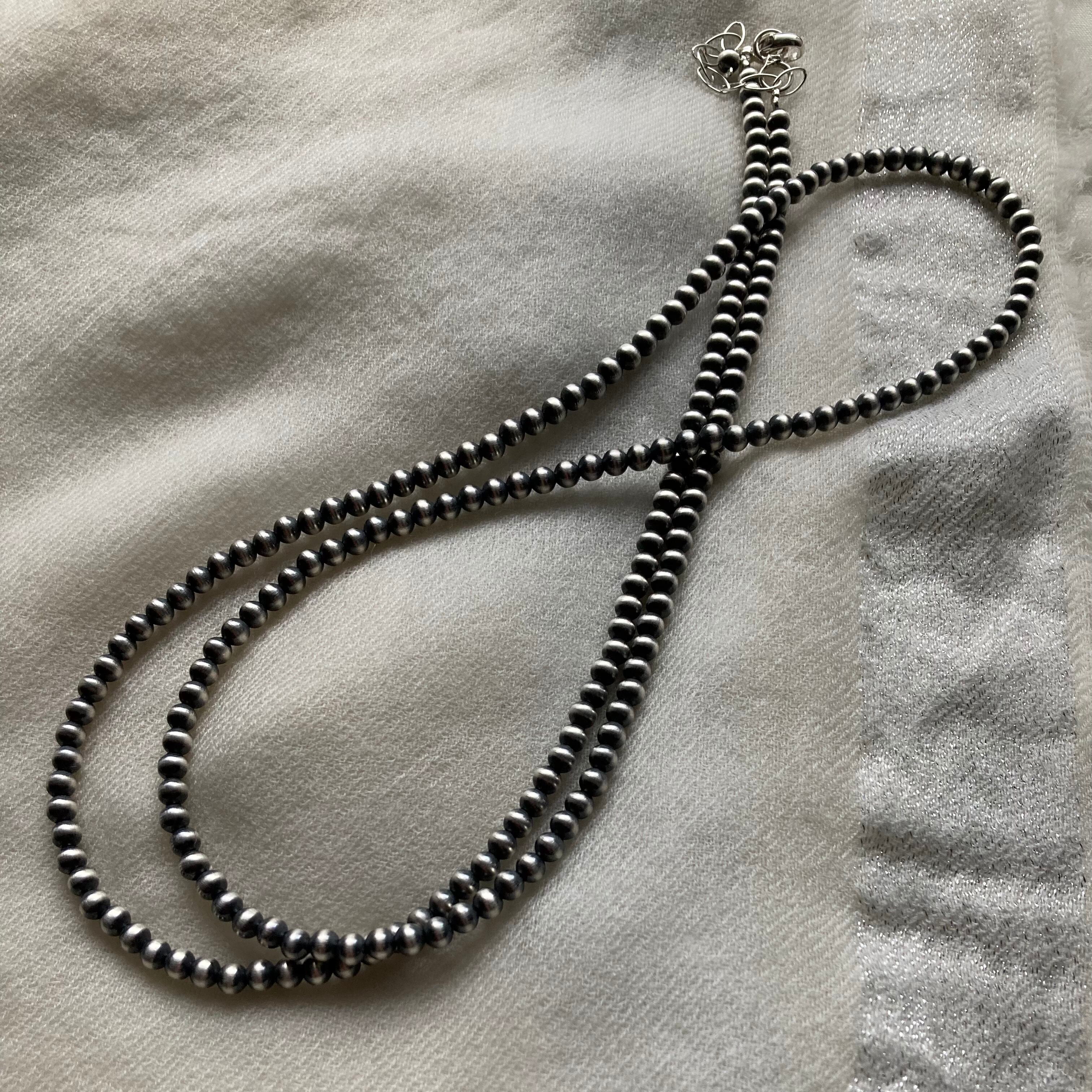 いぶし銀丸珠 4mm x 83cm ネックレス