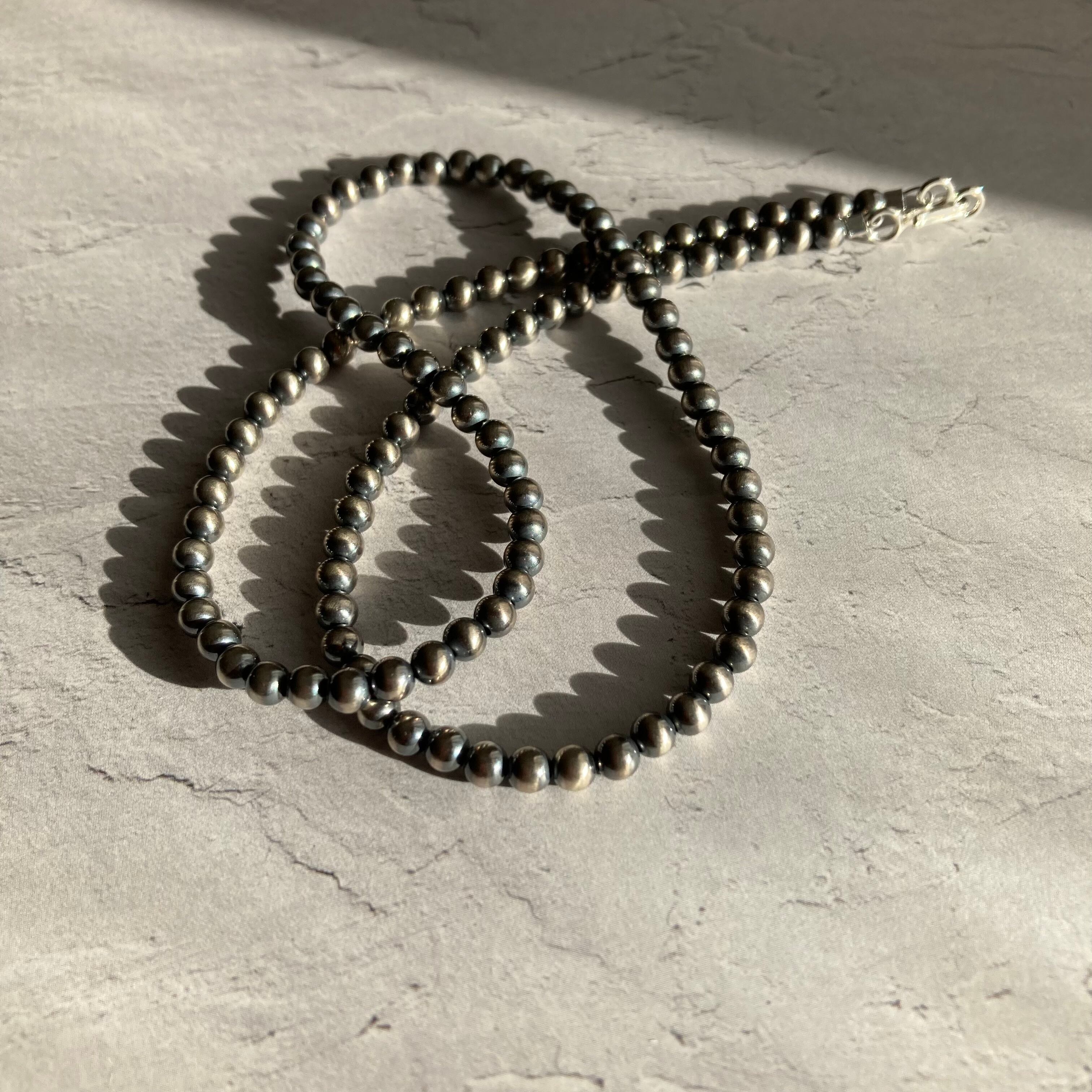 いぶし銀丸珠 4mm x 45cm ネックレス