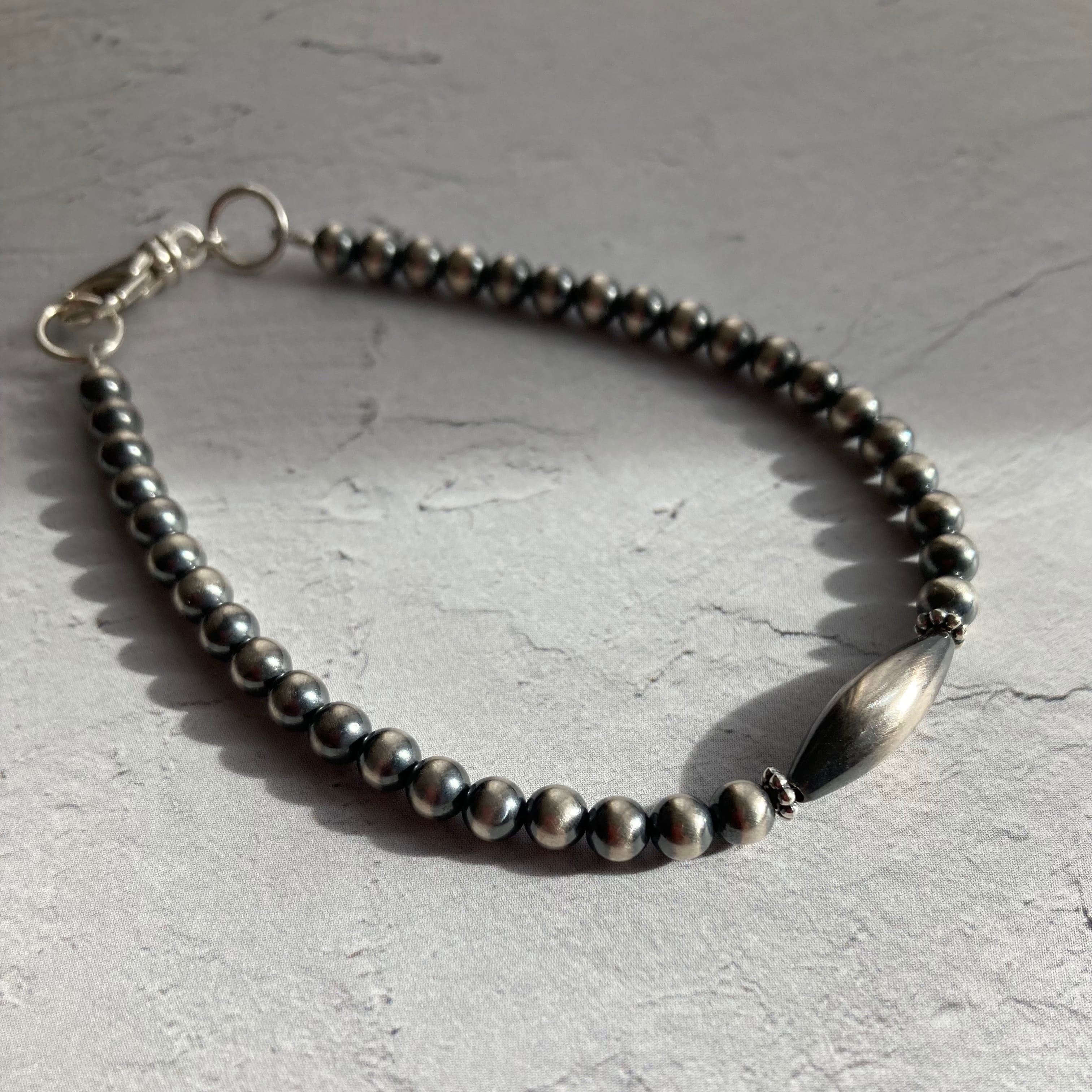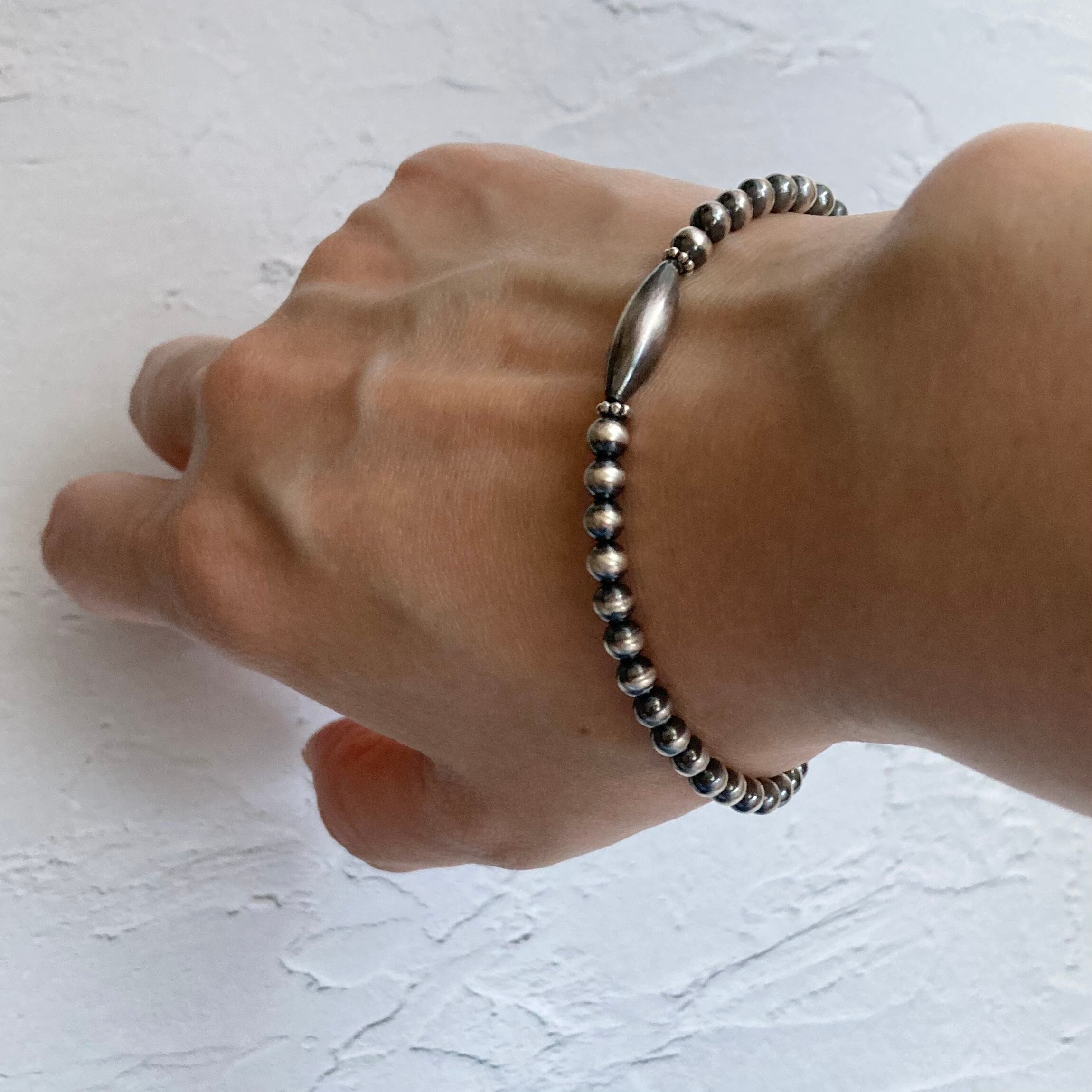 いぶし銀丸珠&俵ビーズ ミックスブレスレット