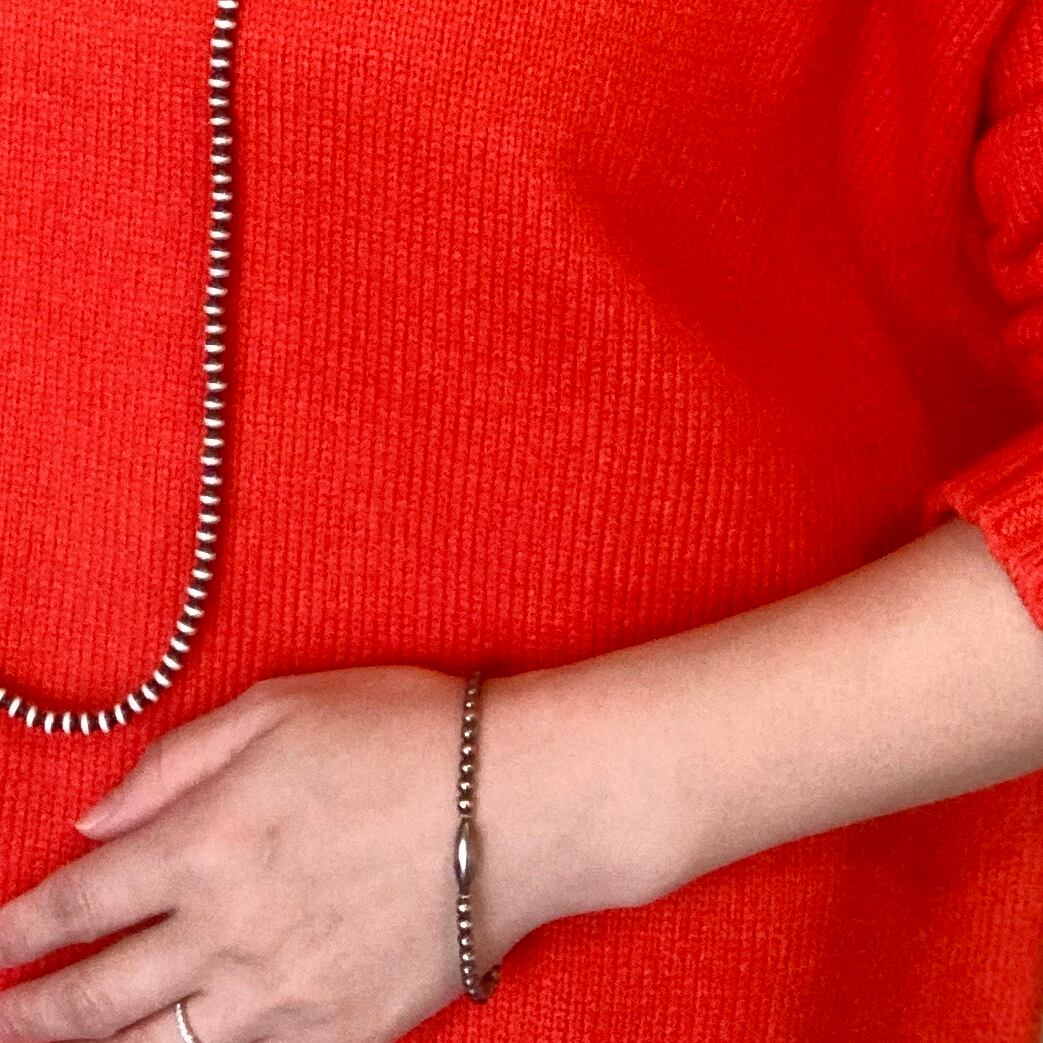 両脇にギザギザのバリスタイルビーズをあしらったミックスブレスレットです。