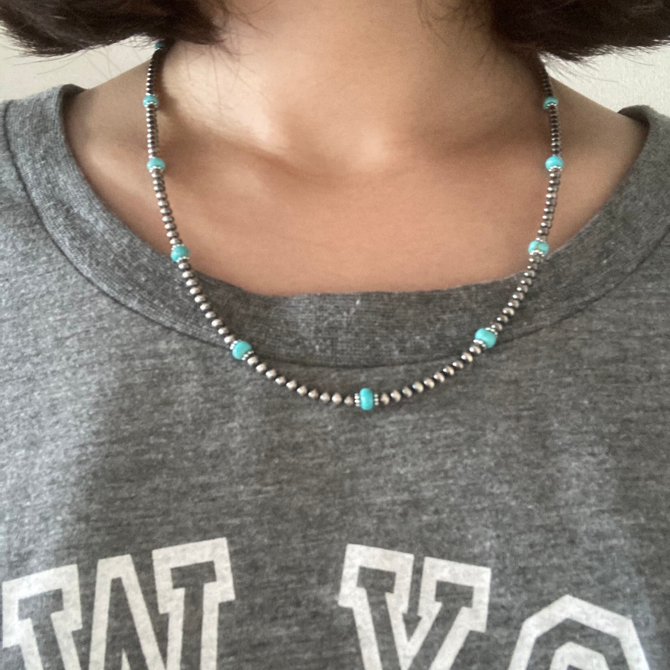 ナバホパールいぶし銀珠&天然ターコイズミックス 50cmネックレス