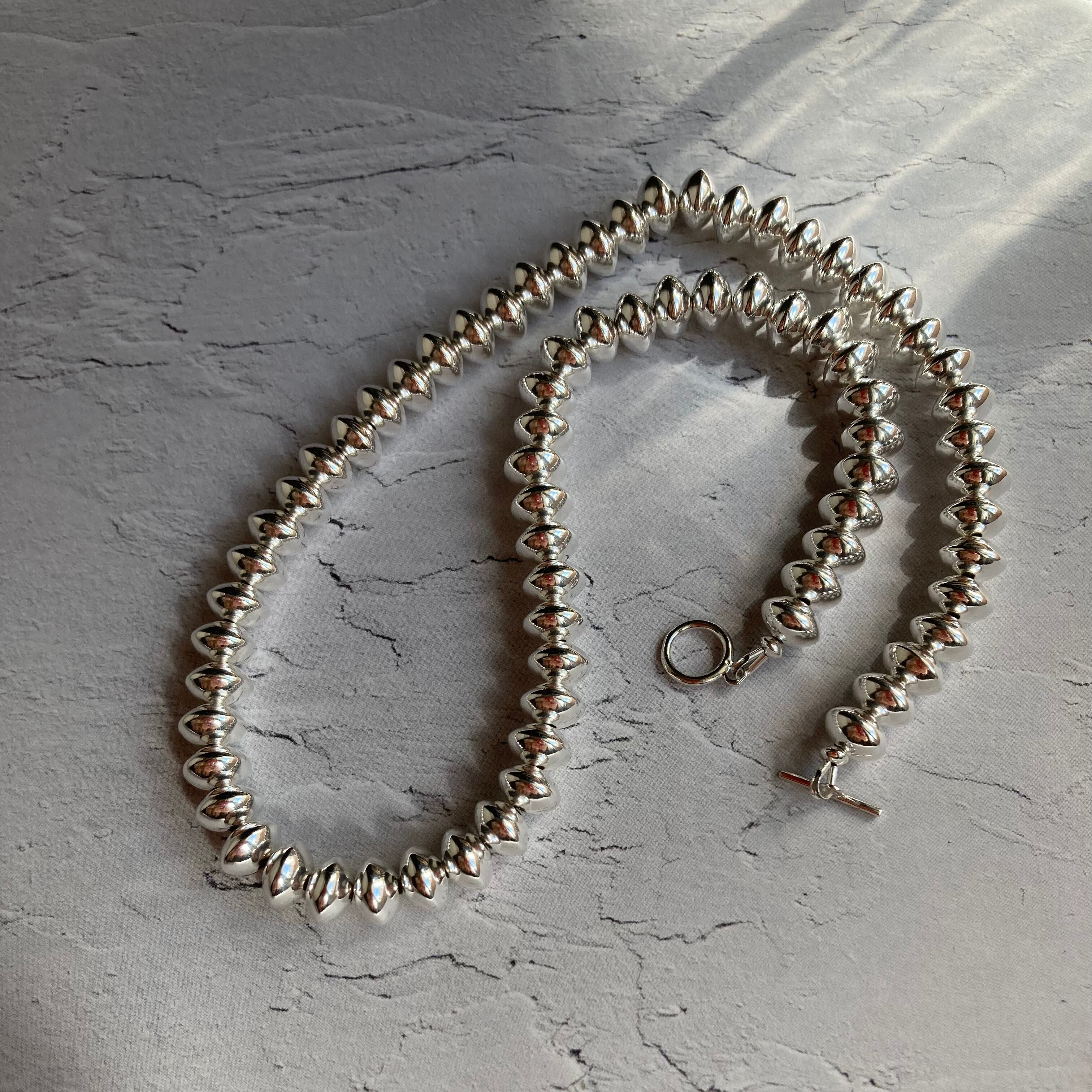 8mmと大きなそろばん型のビーズを40cm並べることで、存在感抜群!