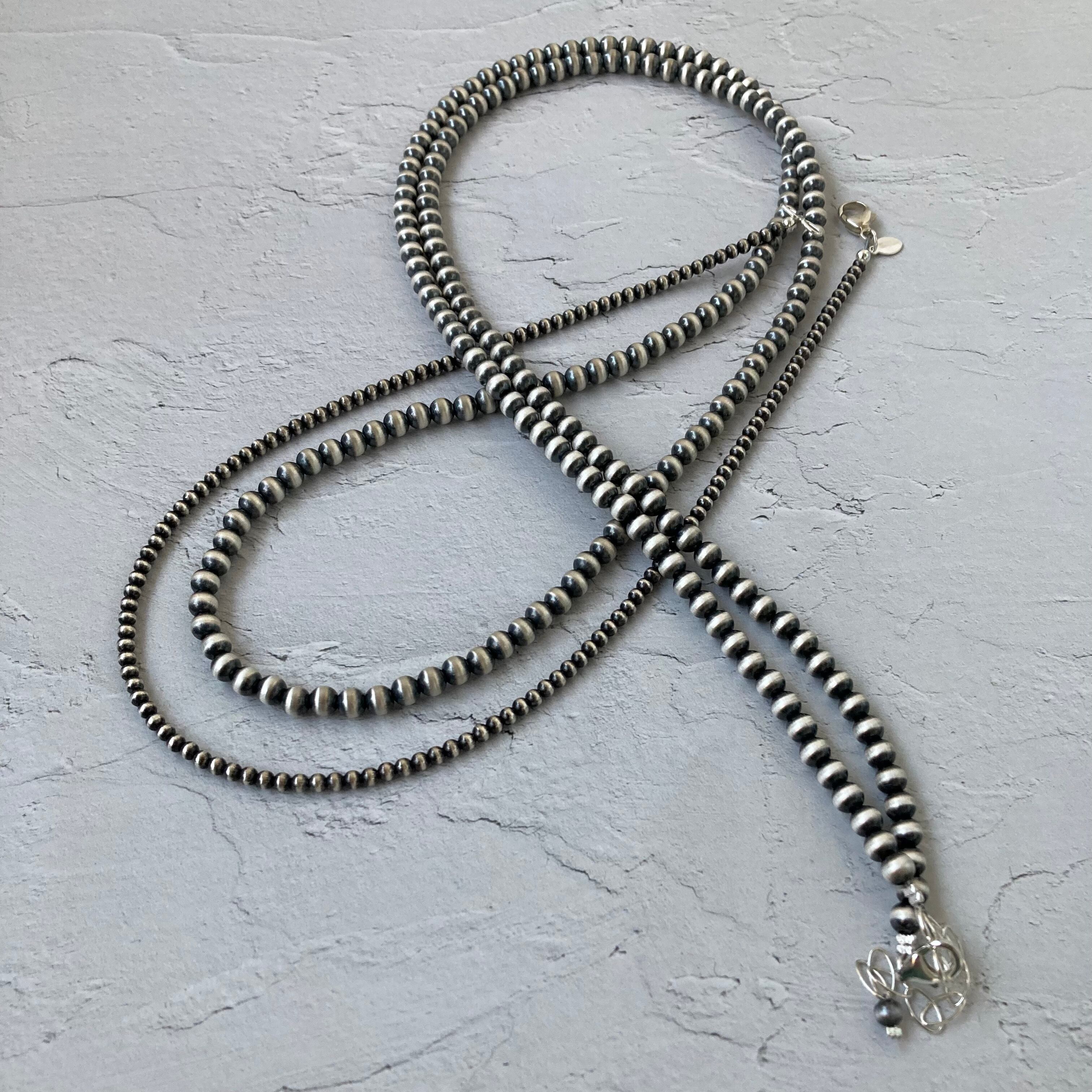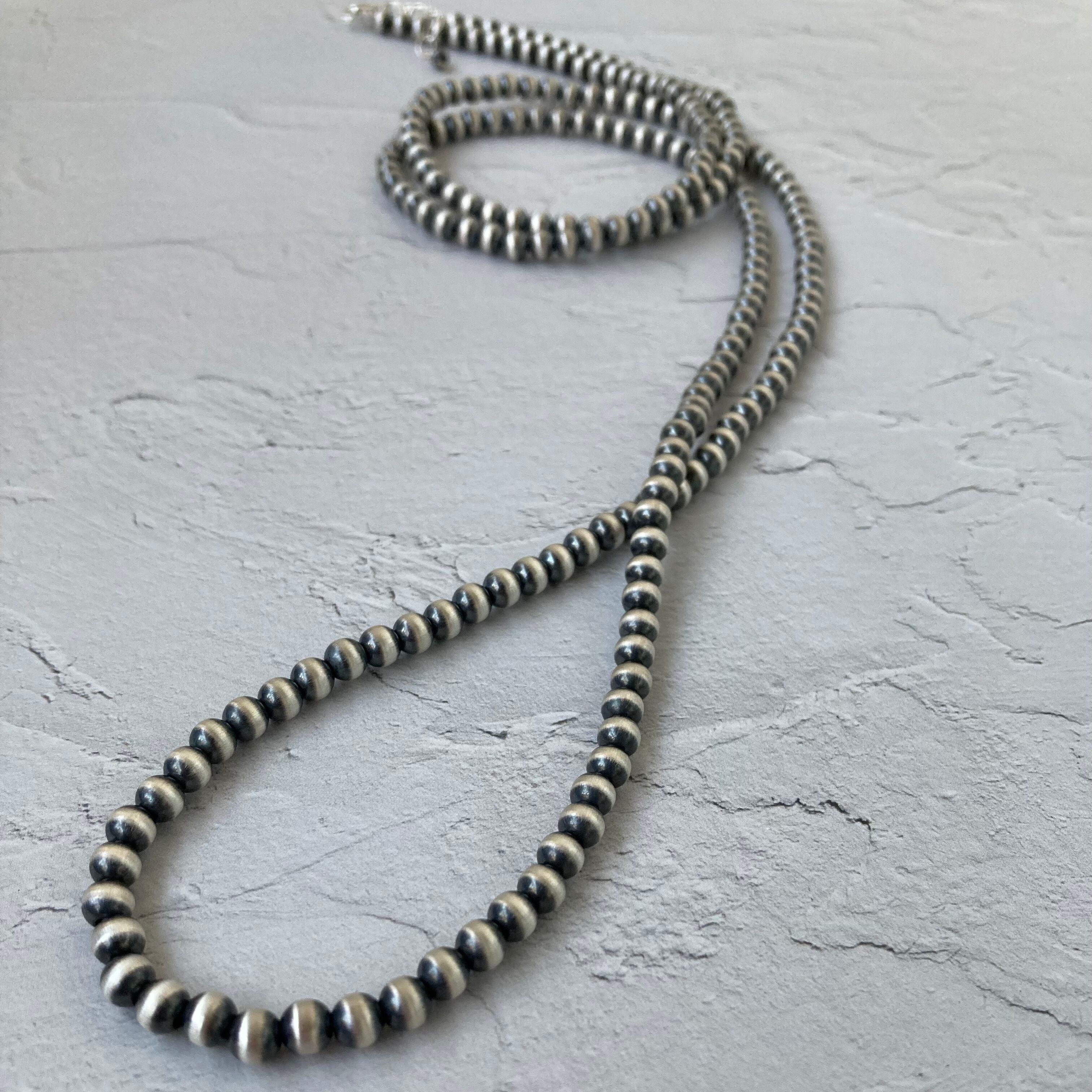 いぶし銀丸珠 5mm x 100cm ネックレス