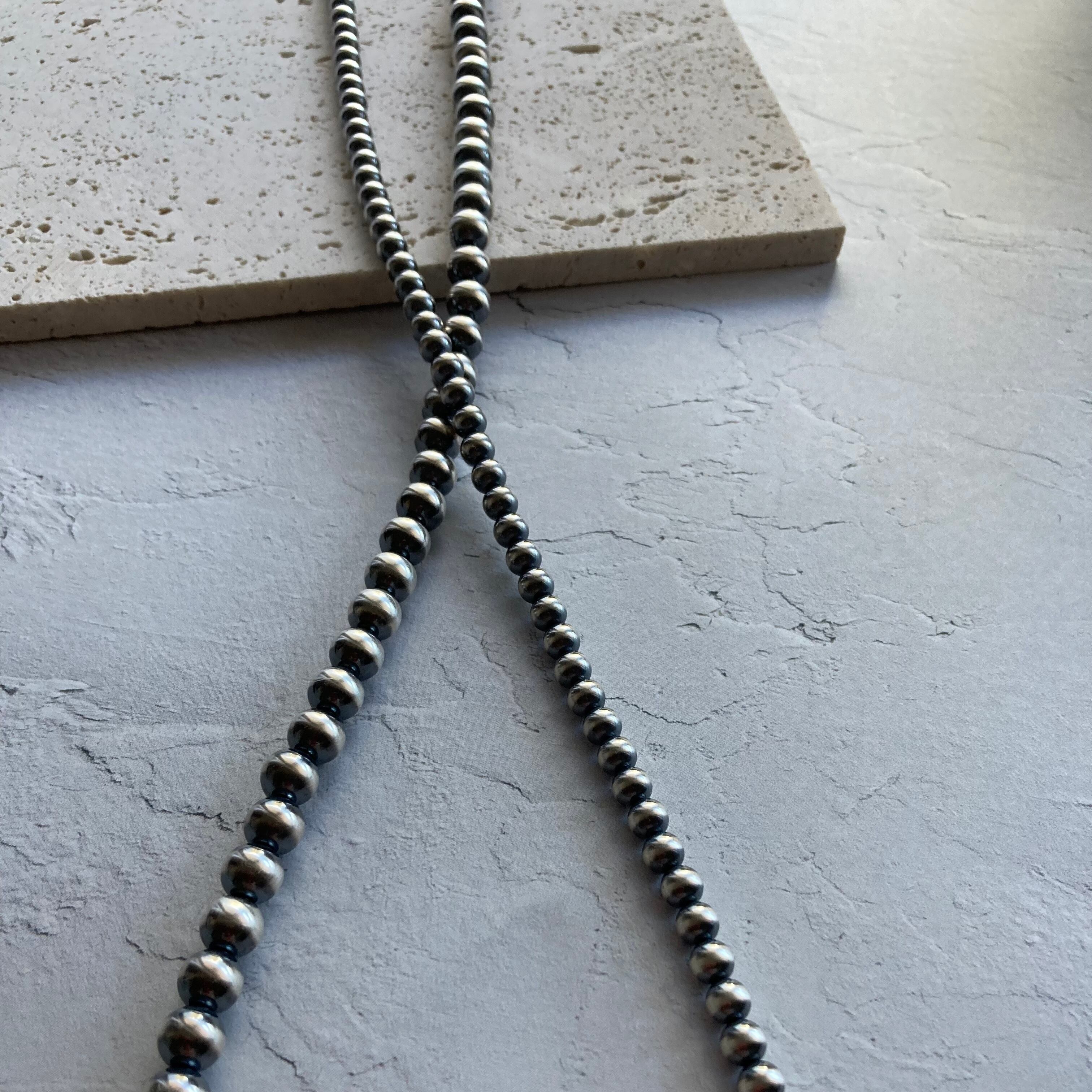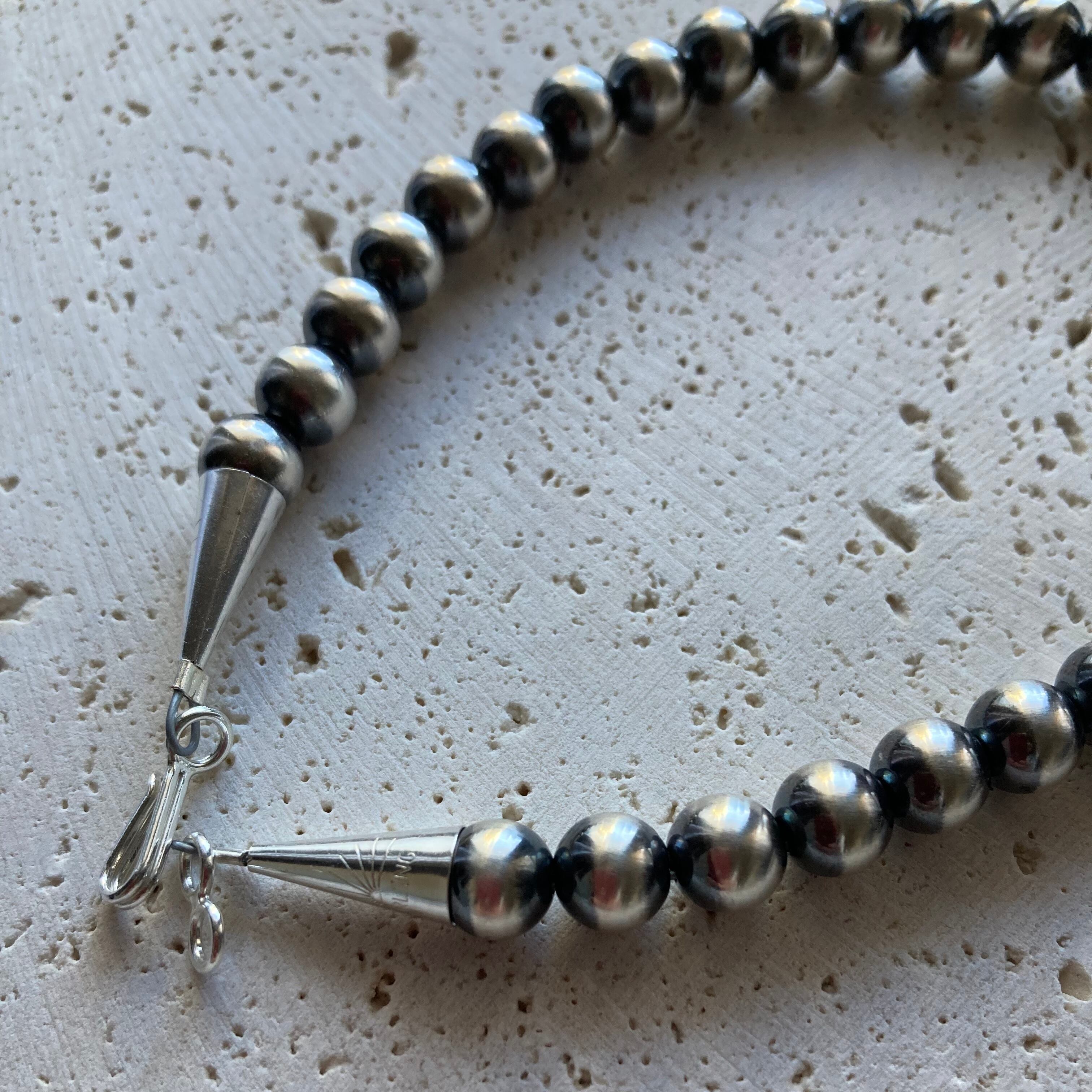いぶし銀丸珠 7mm x 70cm ネックレス