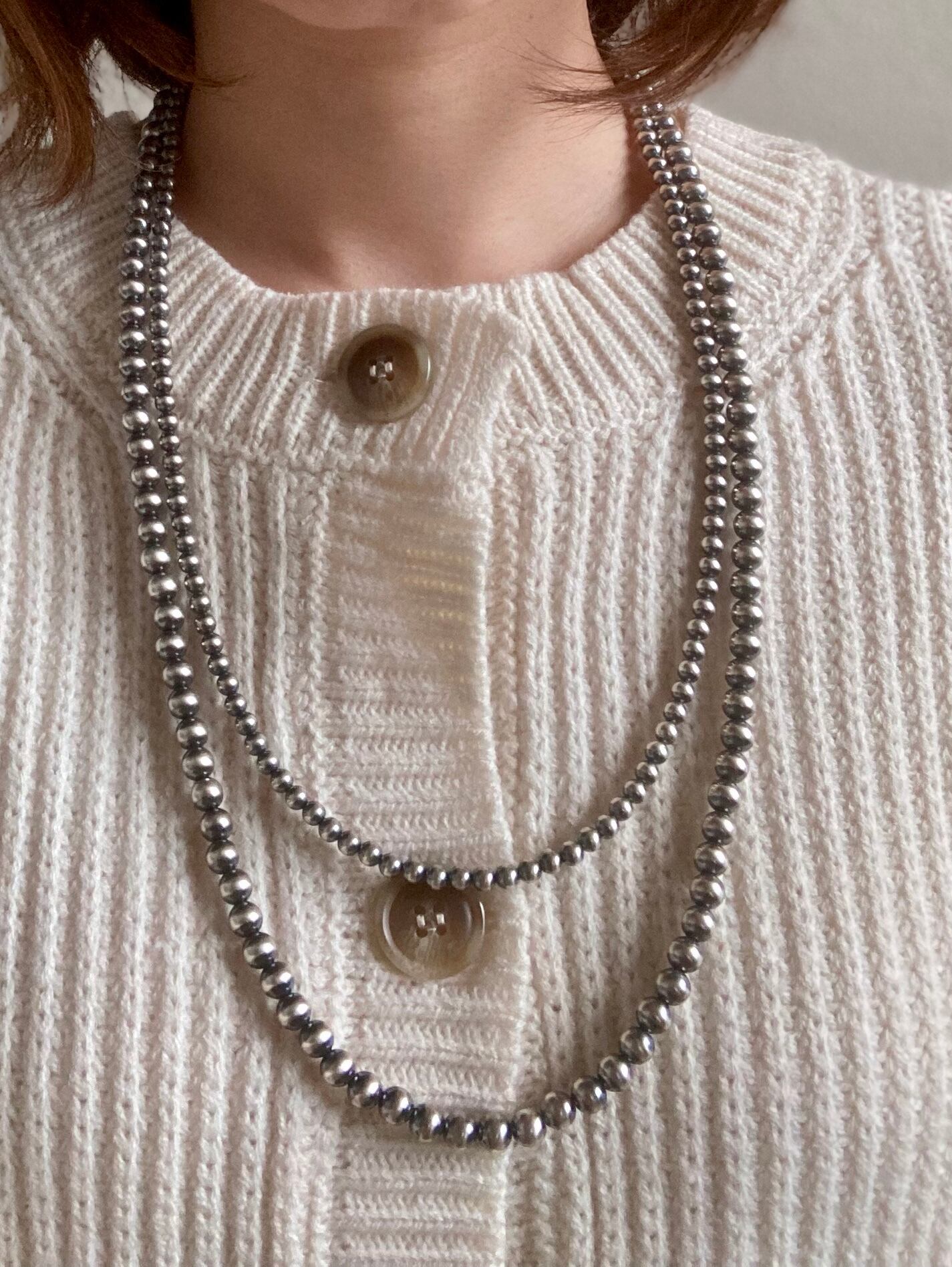 丸珠7mm x 70cm いぶし銀 ネックレス