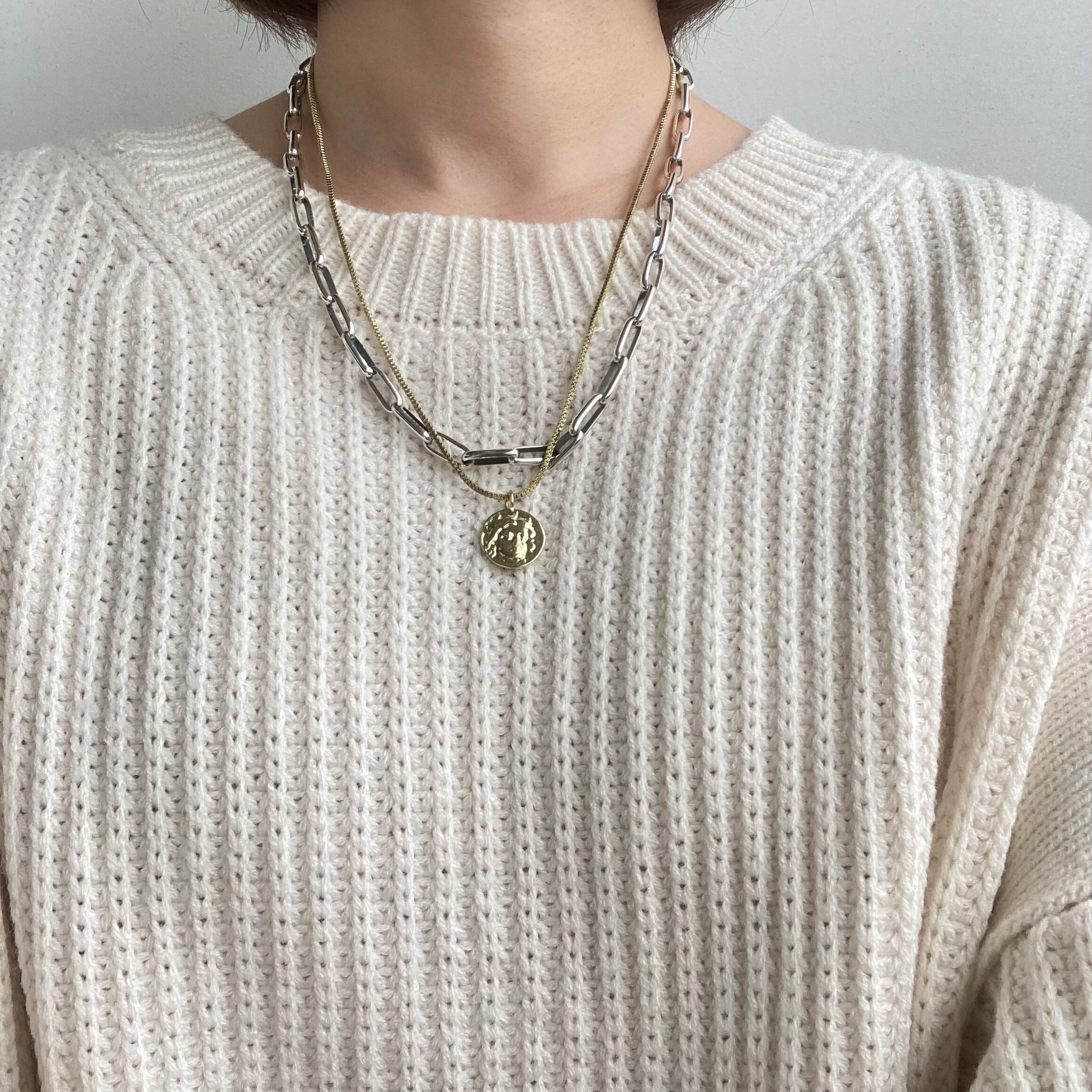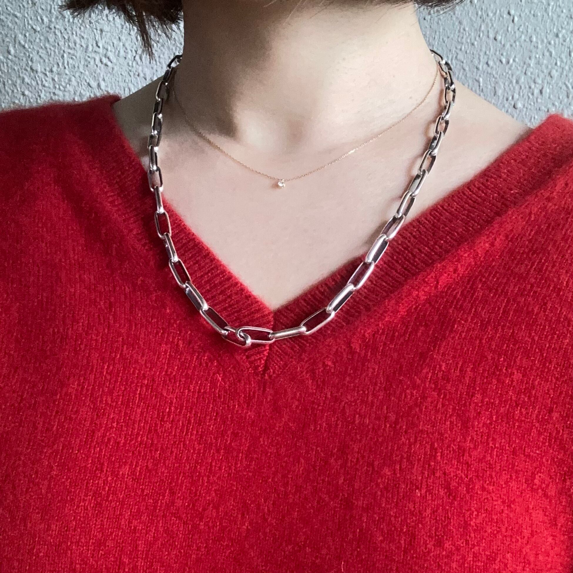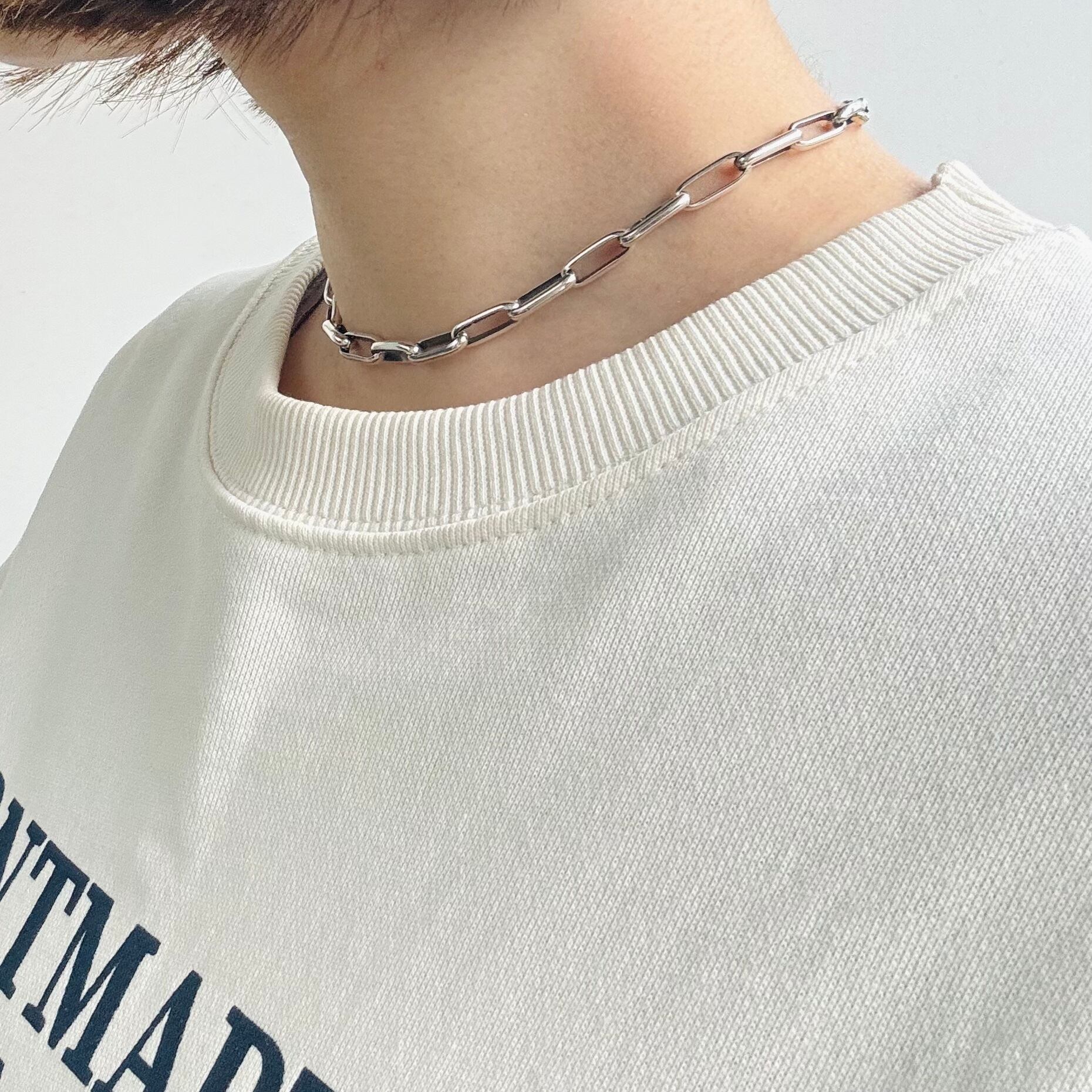 シンプルでありながら存在感のあるシルバーチェーンネックレス。
