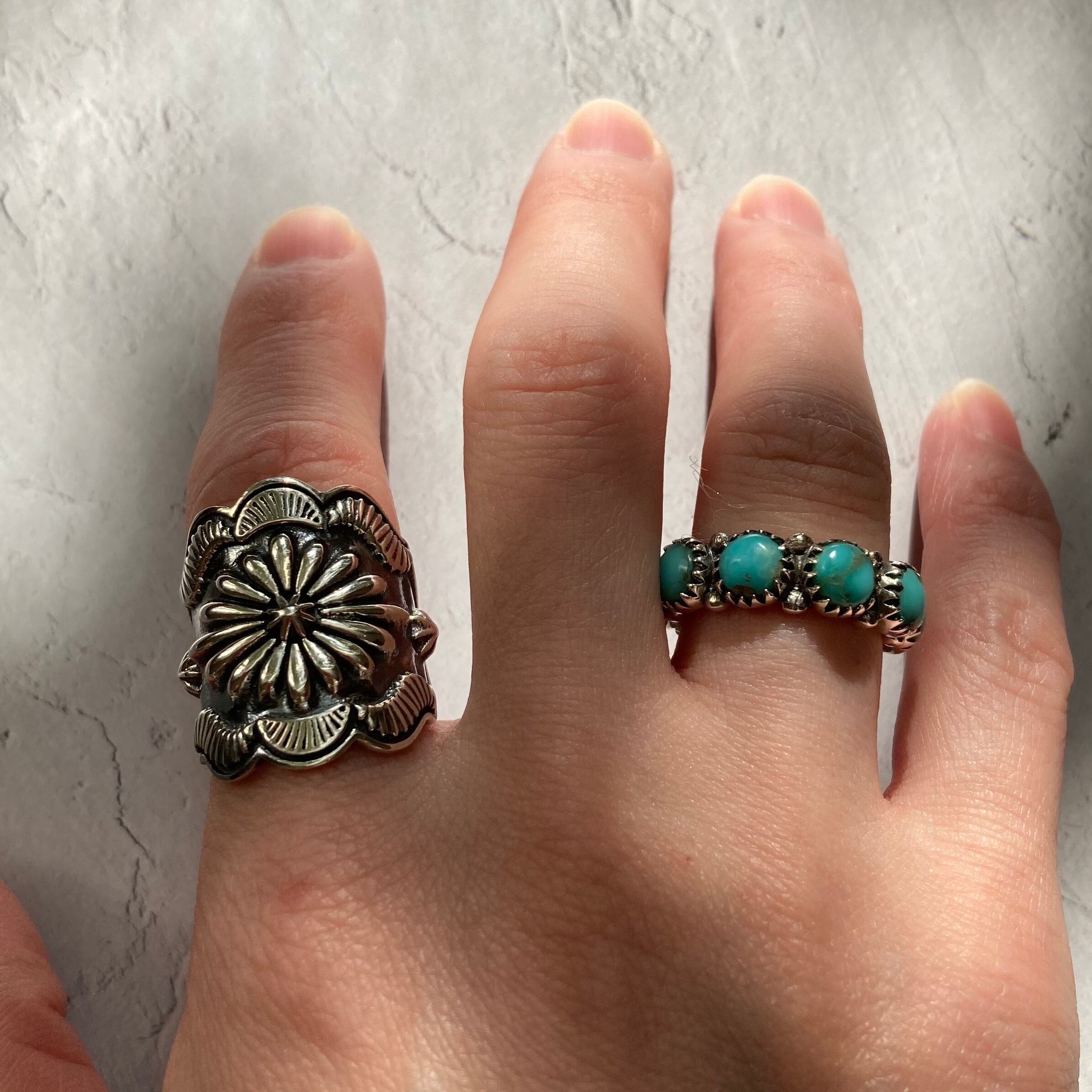 ターコイズリングとしては珍しいデザインの一点ものです。