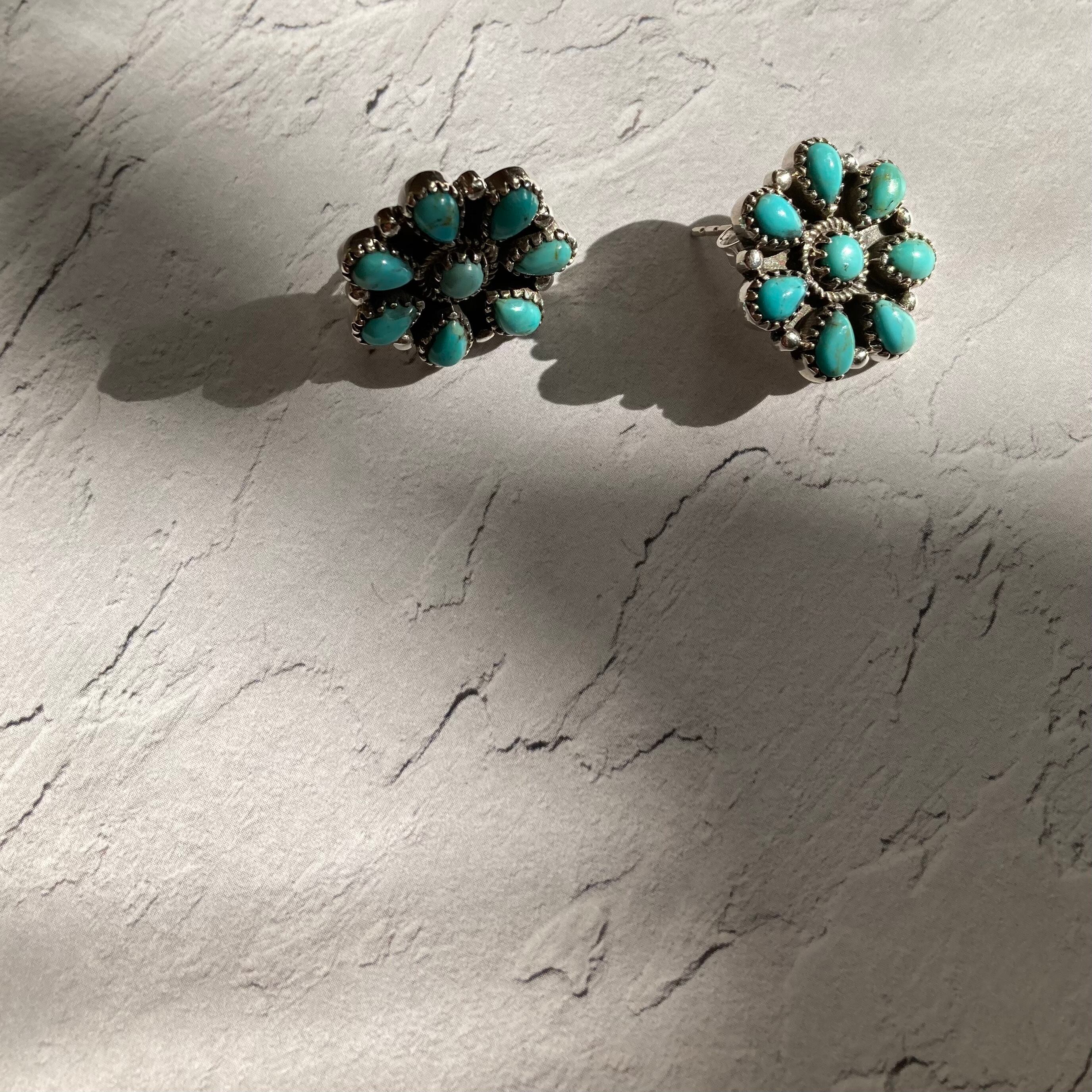 ターコイズのお花が美しく、お顔周りを華やかに彩ってくれます。