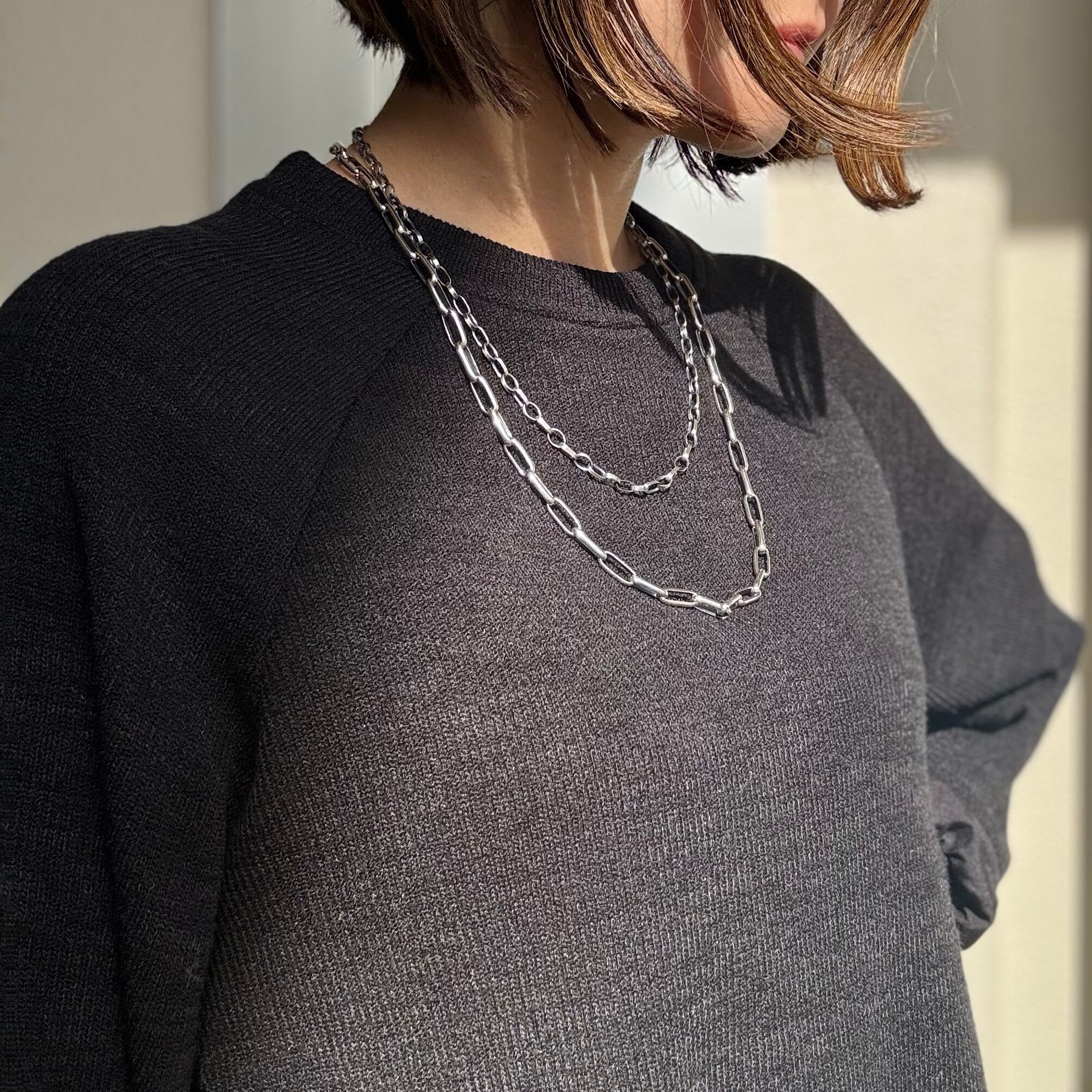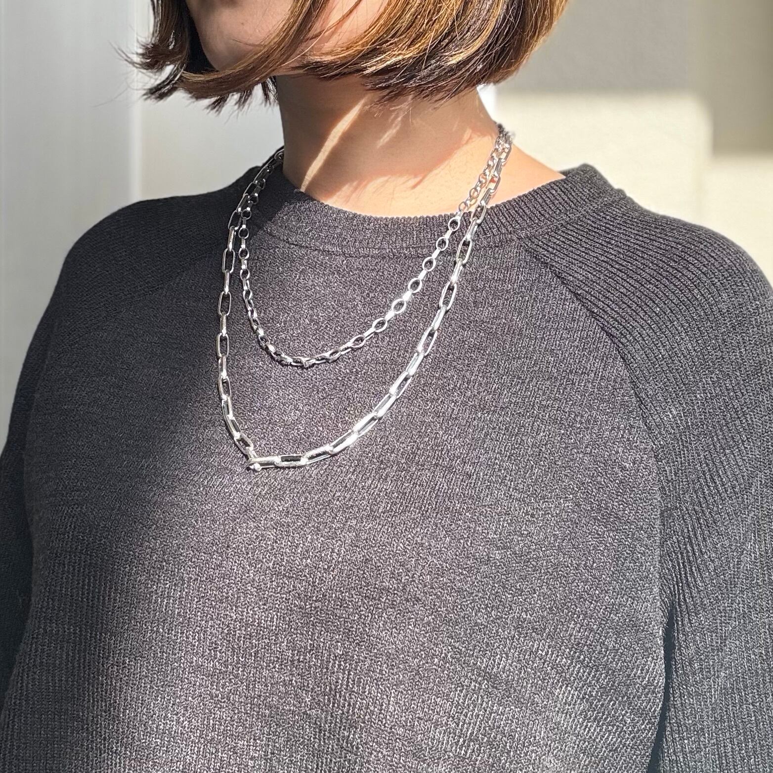 細長い形のチェーンと丸っこい形のチェーンがミックスされた個性的なデザイン!
