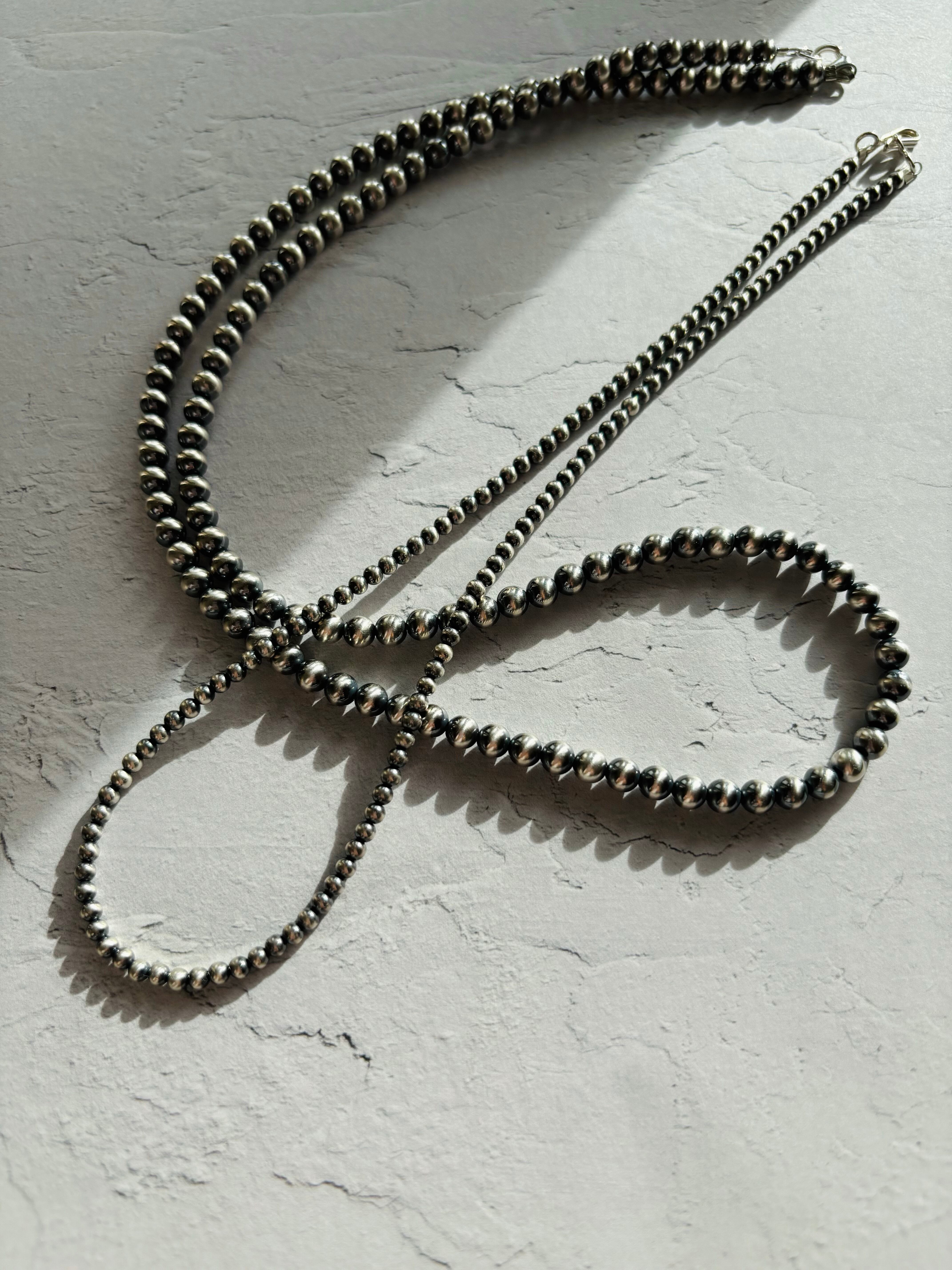 大人気のいぶし銀丸珠 3mm x 40cm ネックレス!
