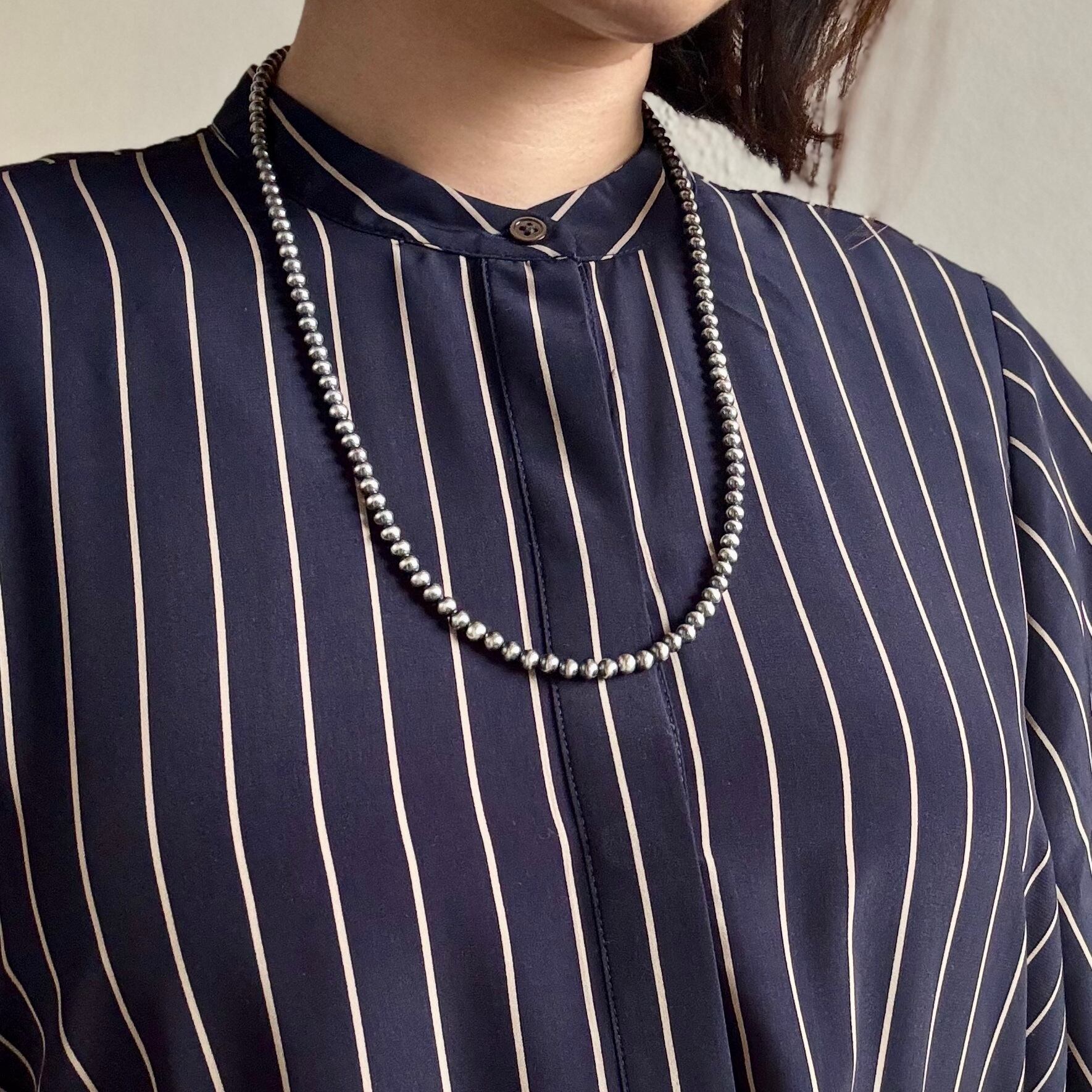 いぶし銀丸珠 5mm x 60cm ネックレス