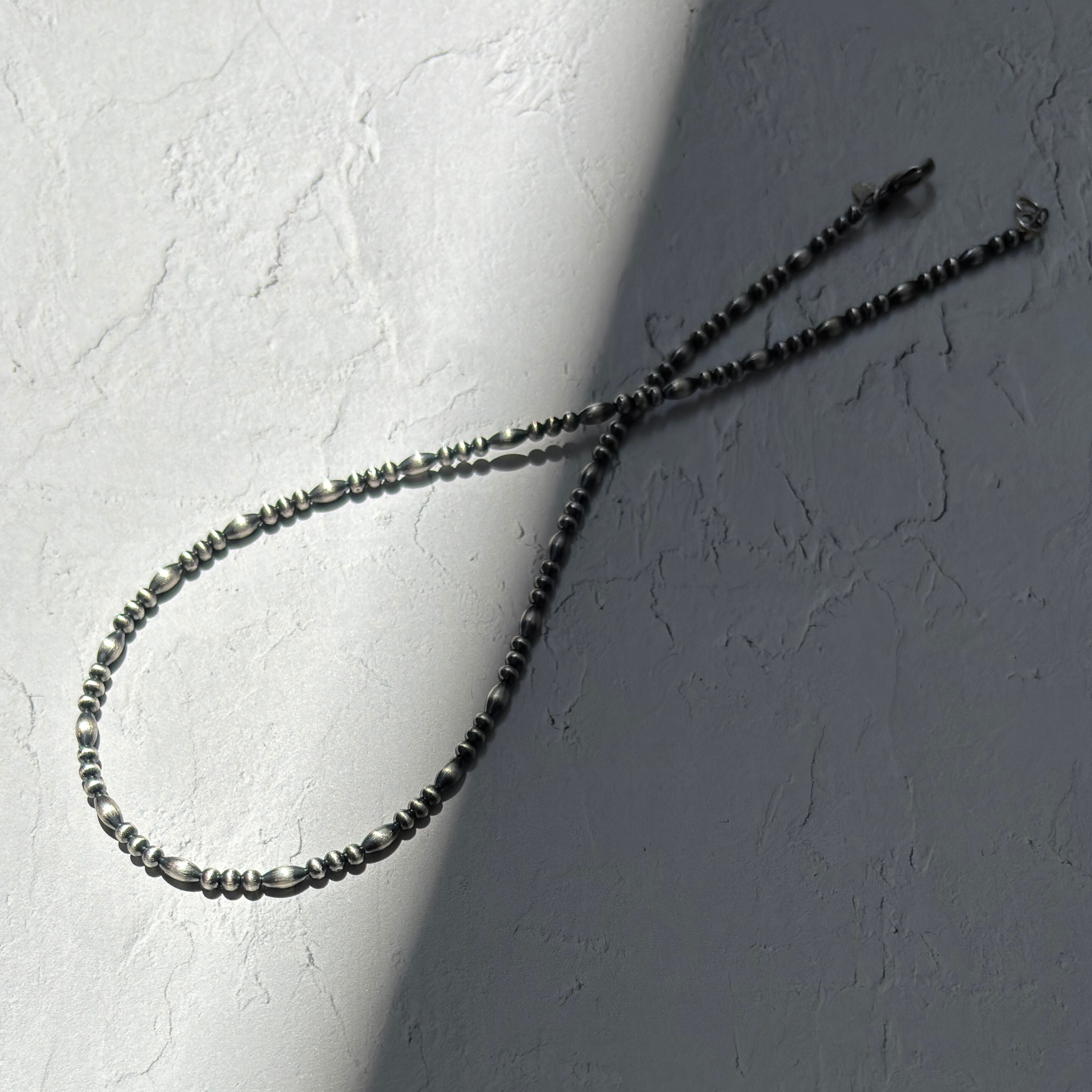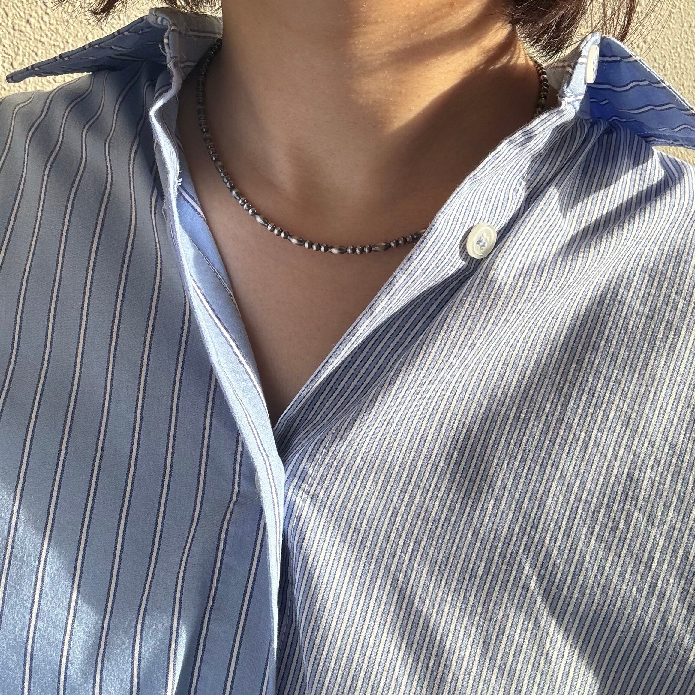 定番丸珠とメロンビーズをミックスした洗練されたデザインが特徴のネックレス。