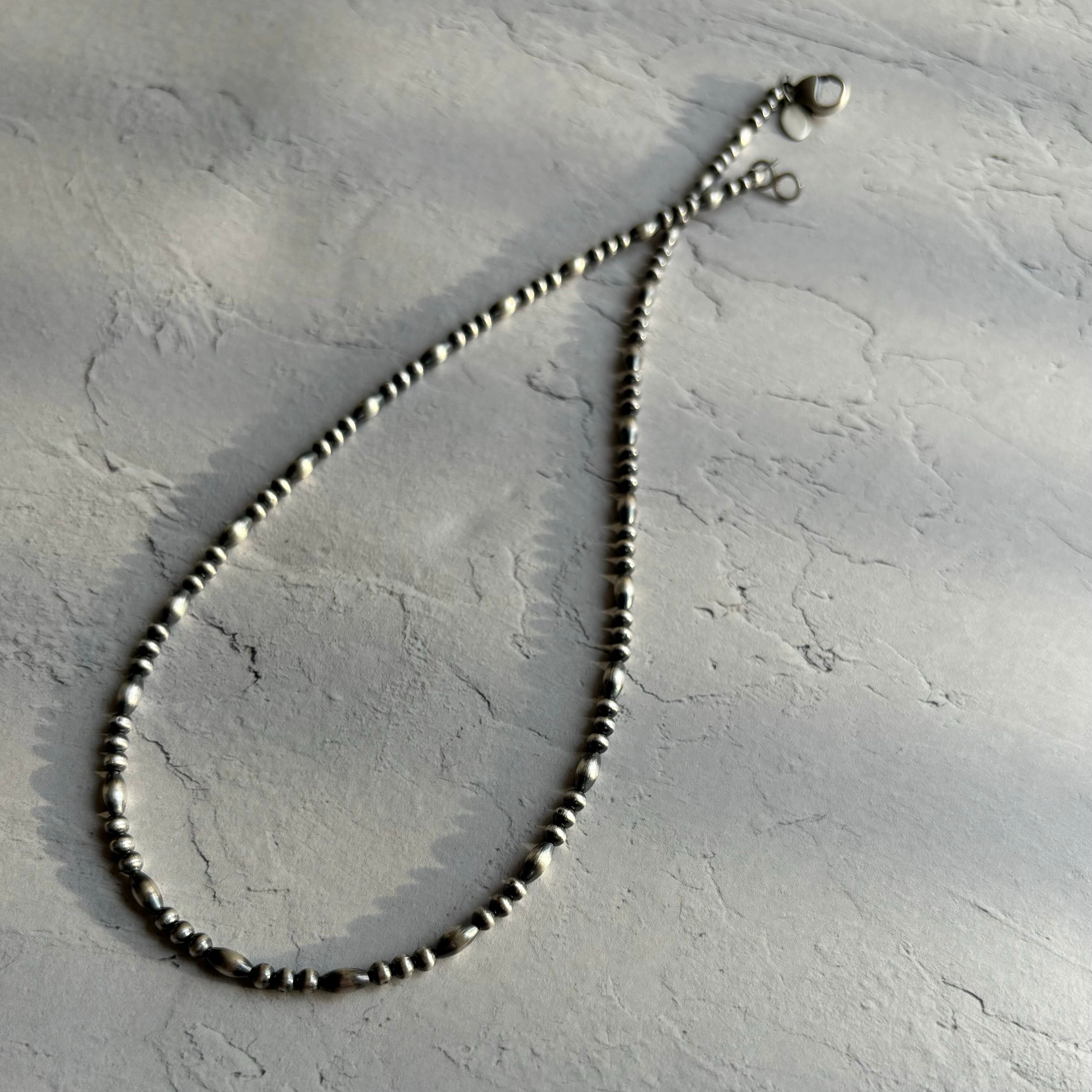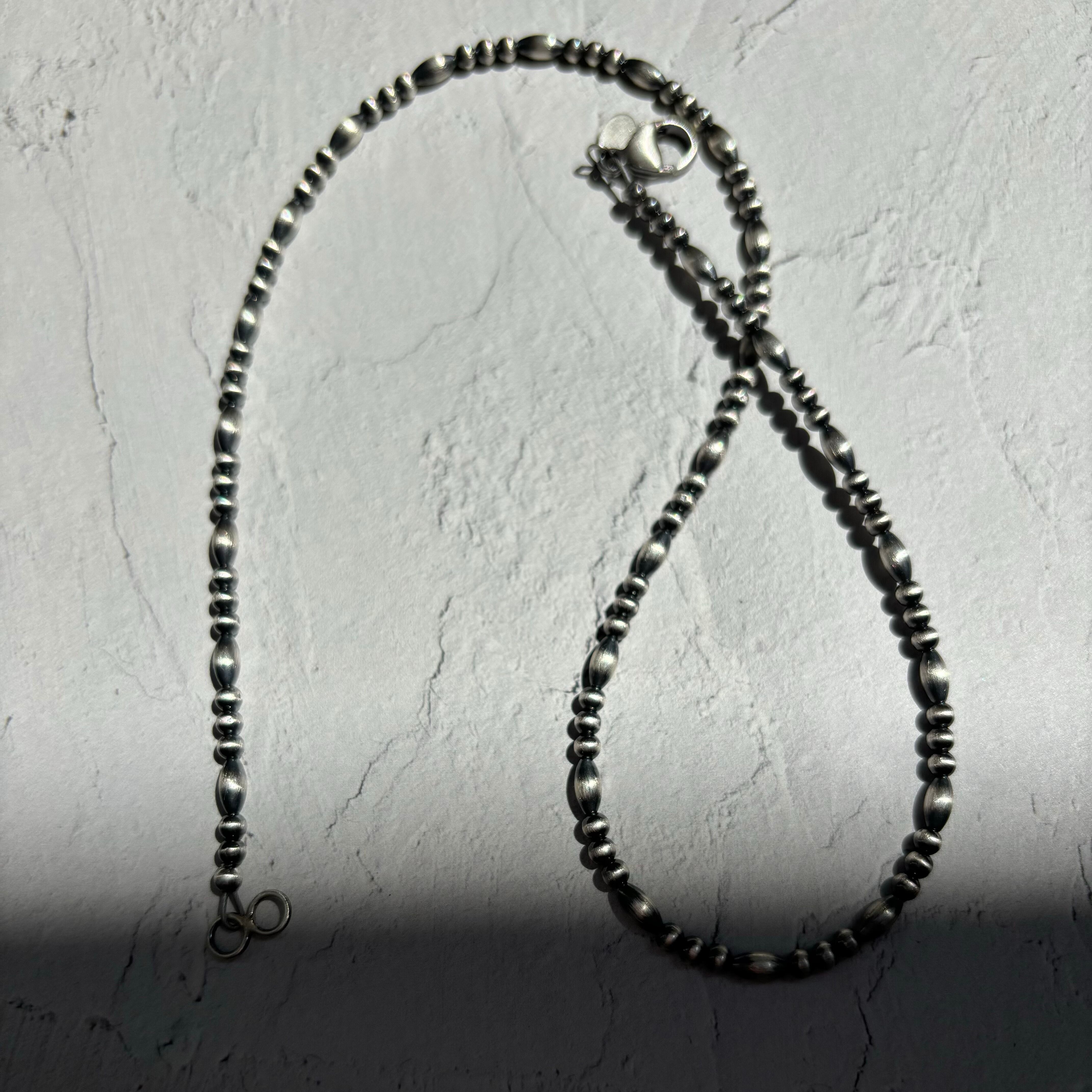 小粒でありながらも存在感のある俵形ビーズがミックスされることで、おしゃれなアクセサリーに仕上げられています。