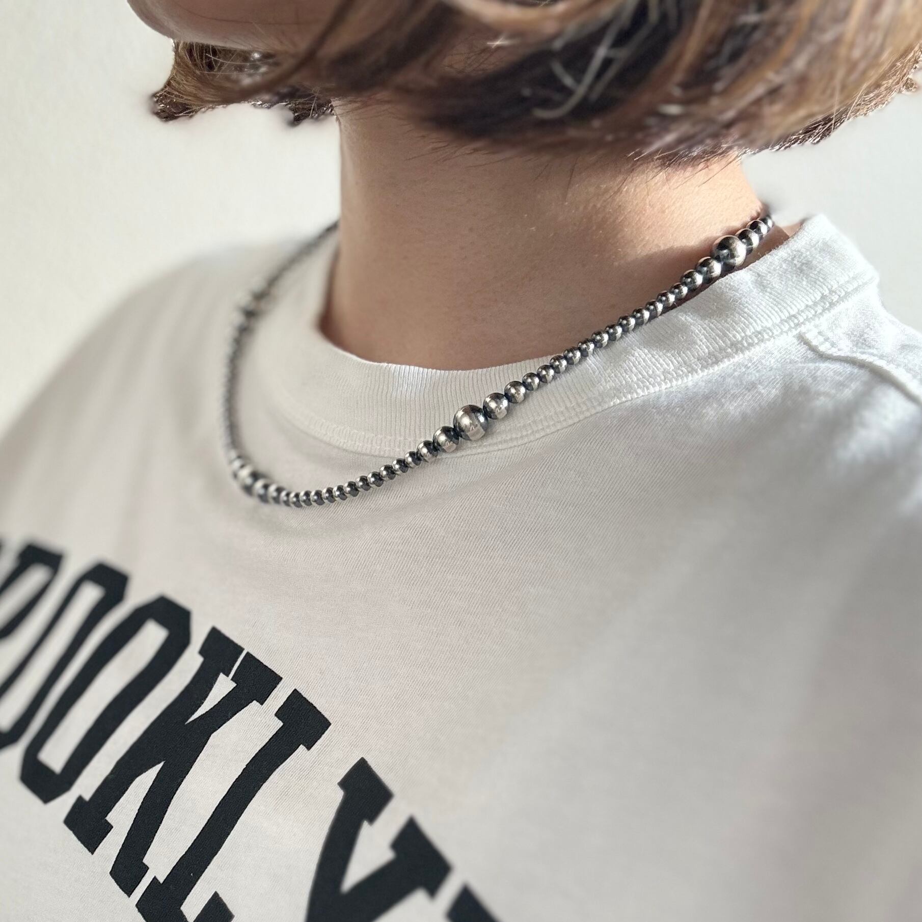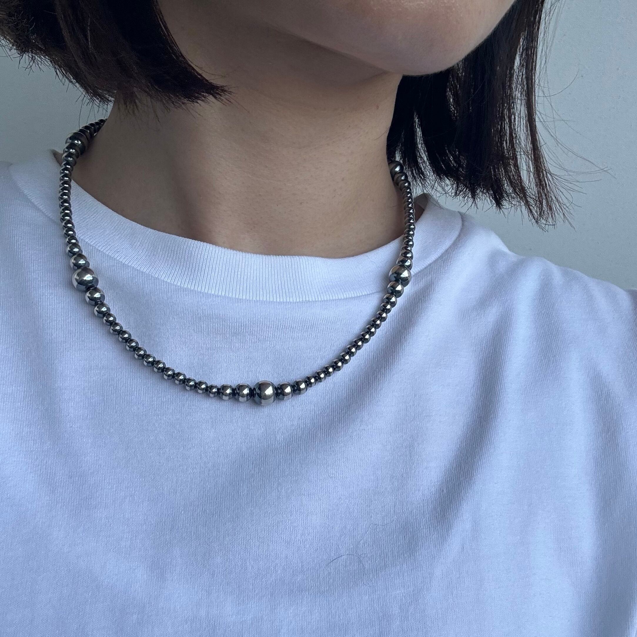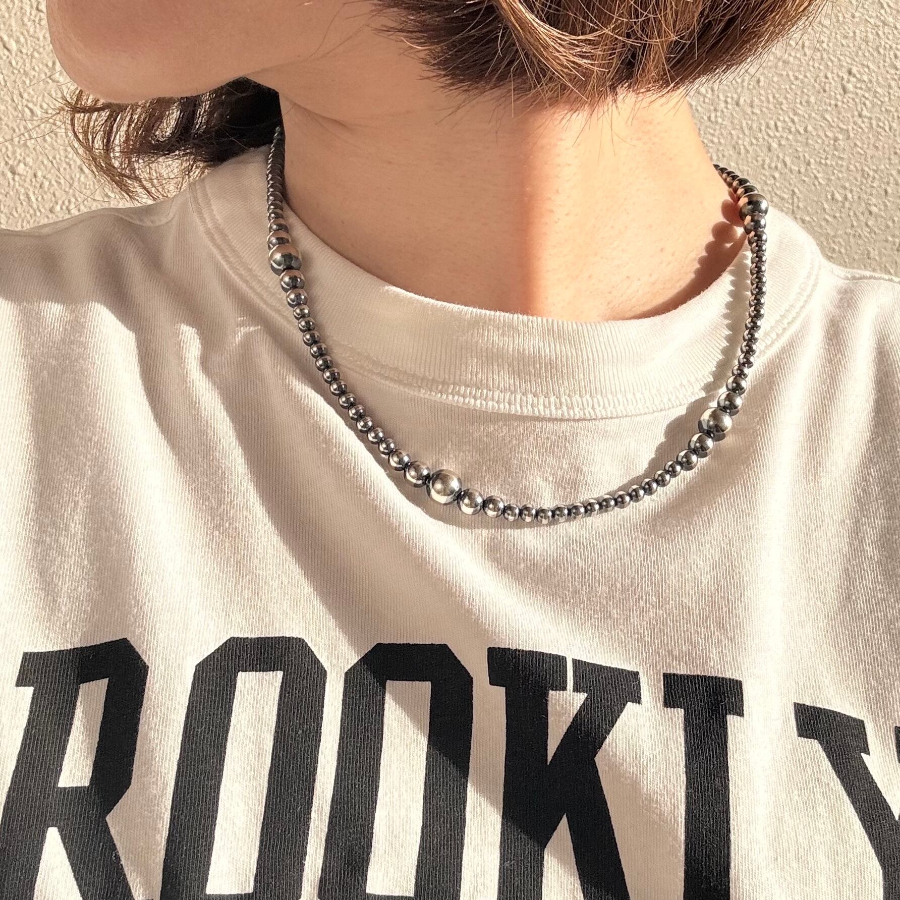 いぶし銀丸珠 サイズグラデーション ネックレス