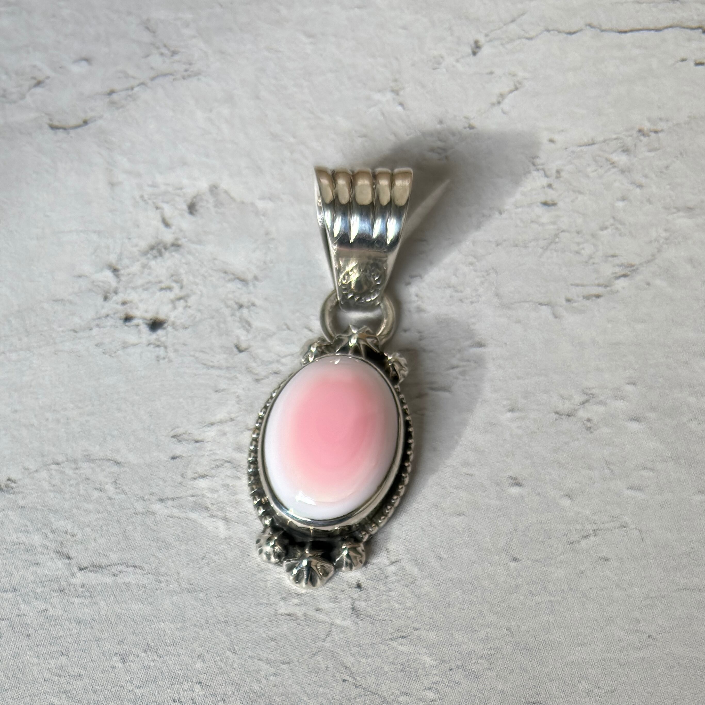このミルキーな淡いピンク色は、貝の内側の色で、石ではありませんが、子宝、子育て、夫婦円満など女性性、母性愛のお守りとしてパワーストーンの一つに数えられています。