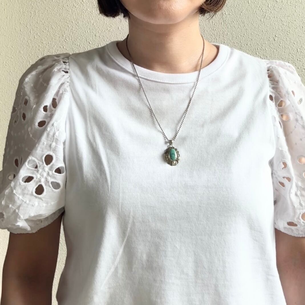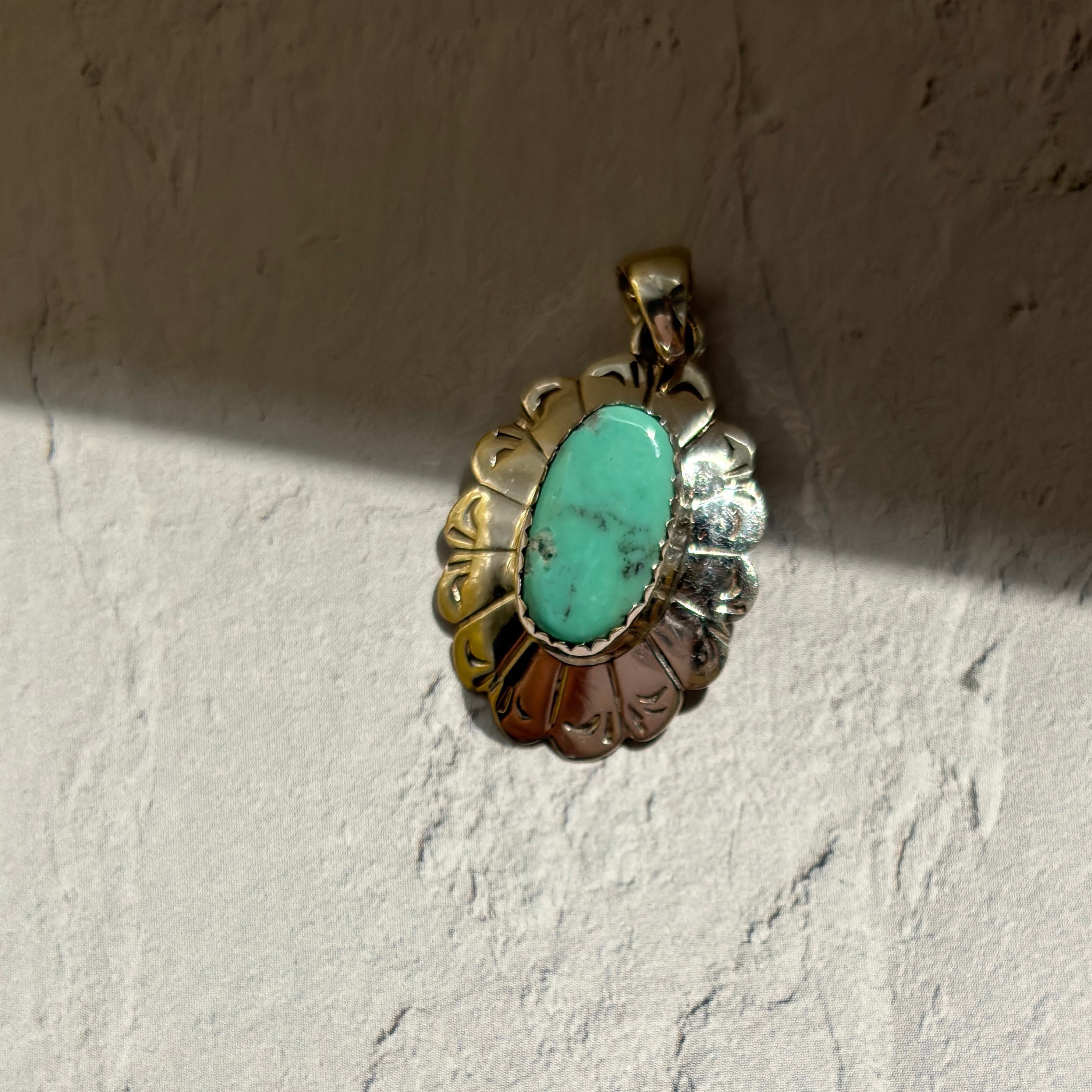 センターの美しいターコイズがポイントのお花型ペンダントヘッド。