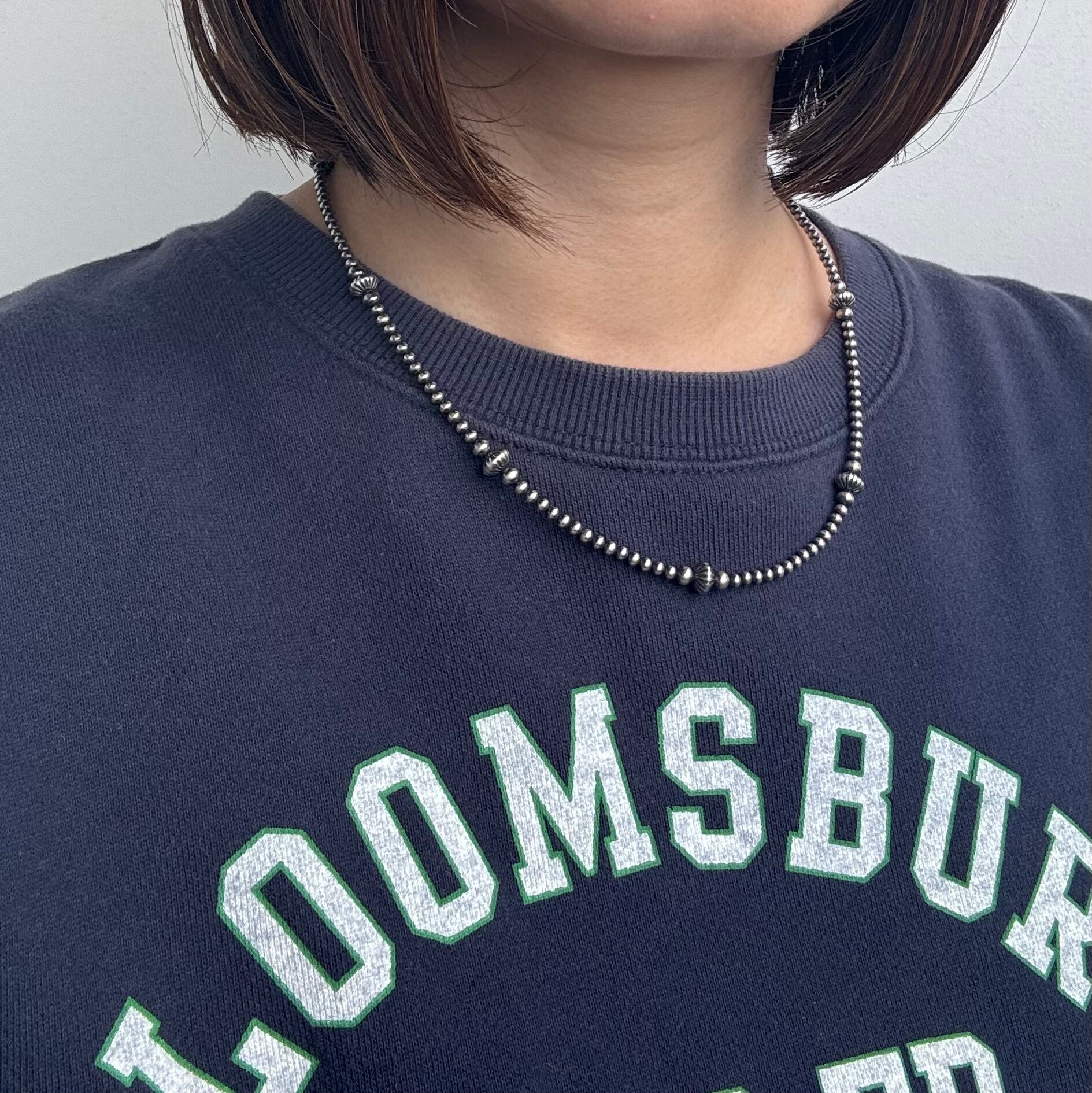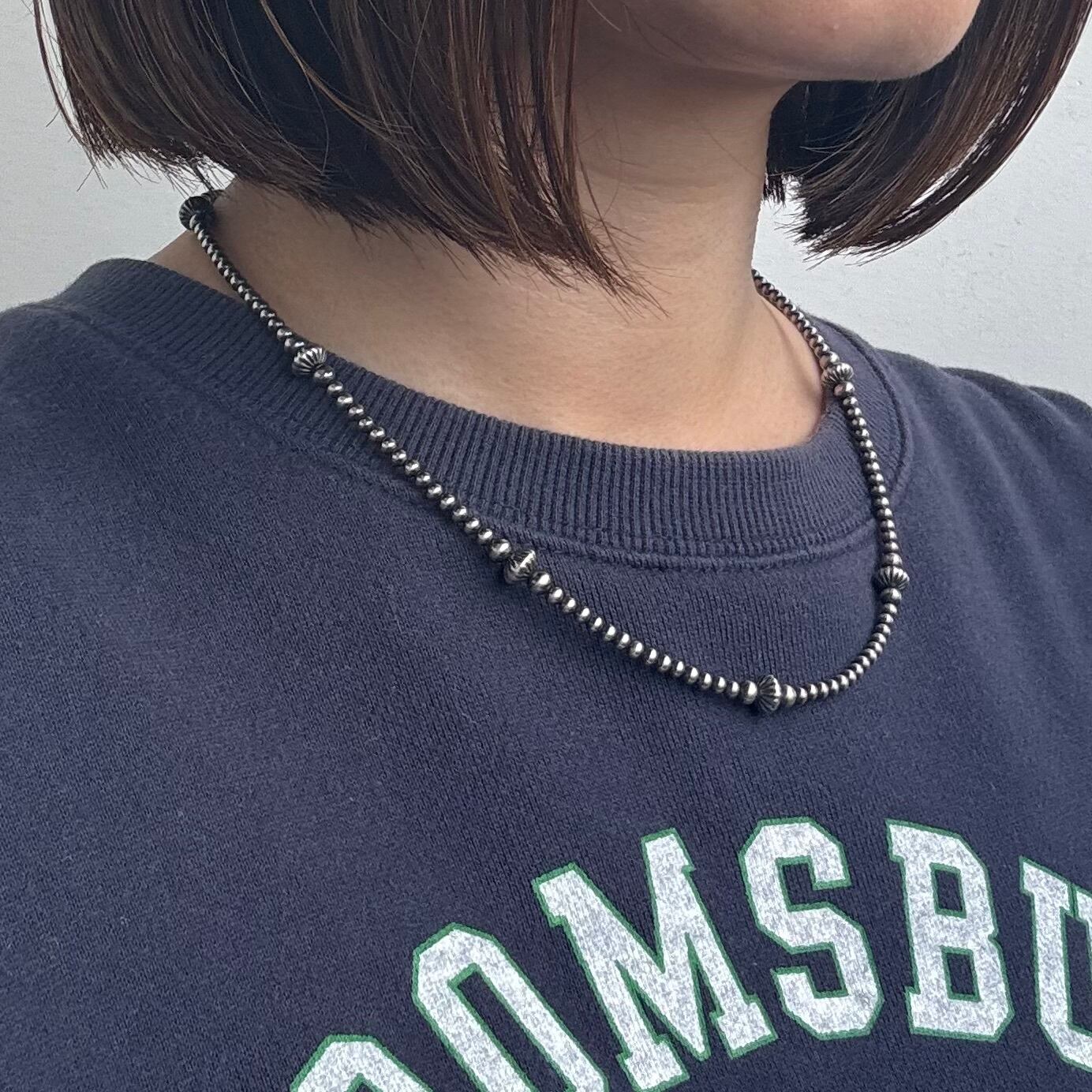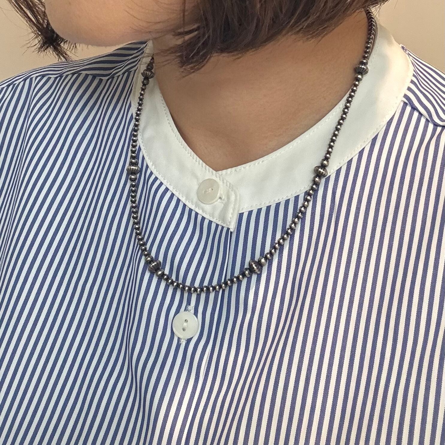 定番丸珠とギザギザホイール珠をミックスした洗練されたデザインが特徴のネックレス。