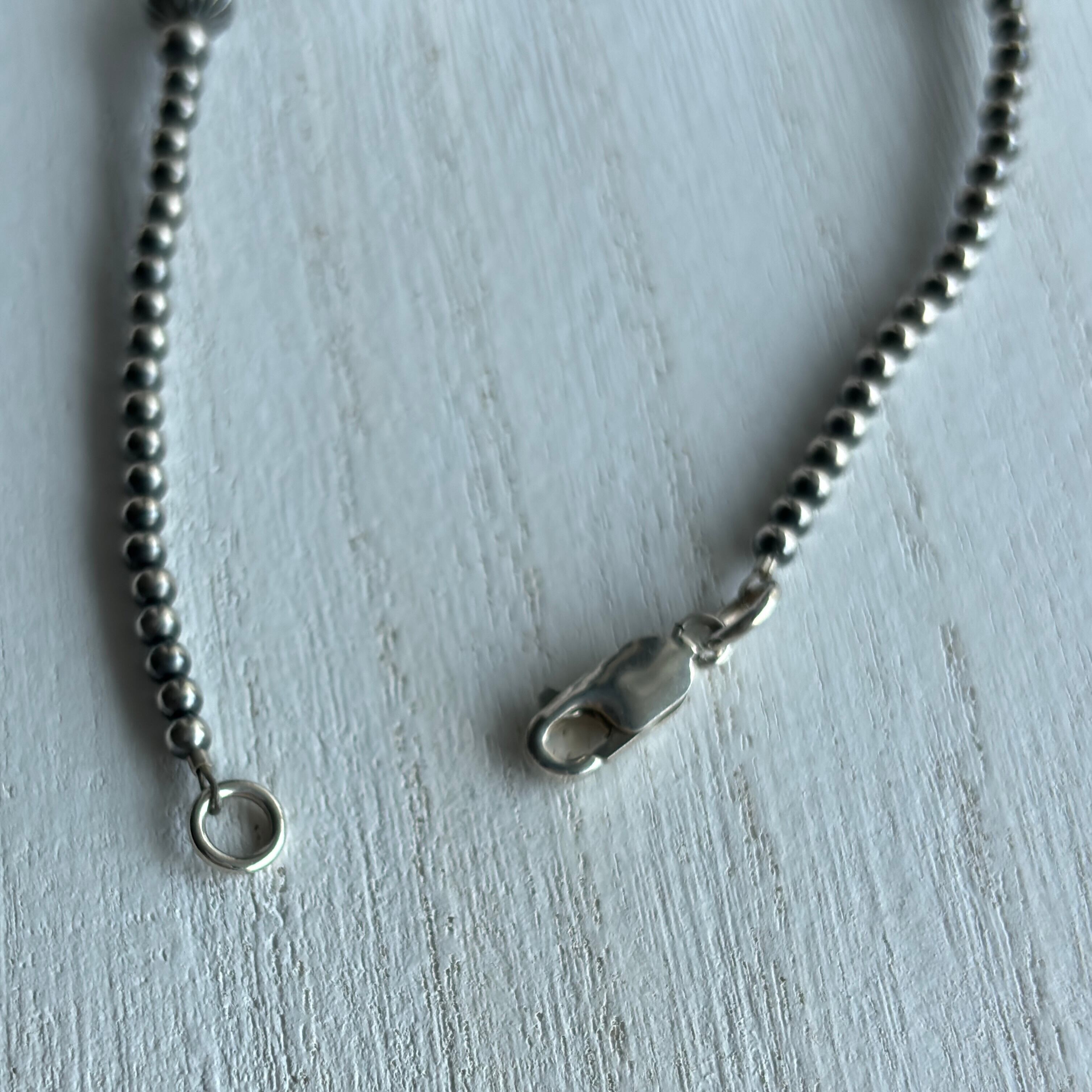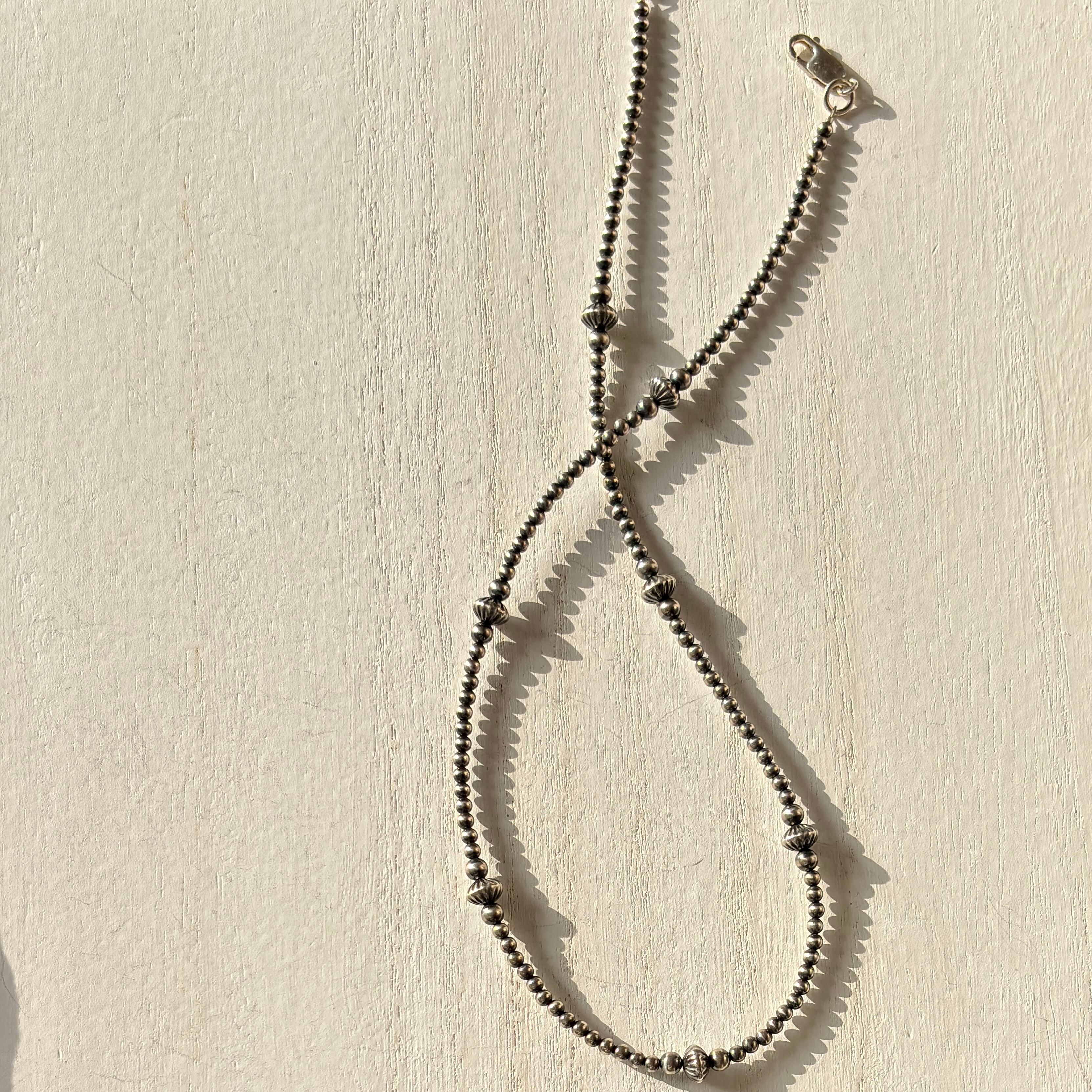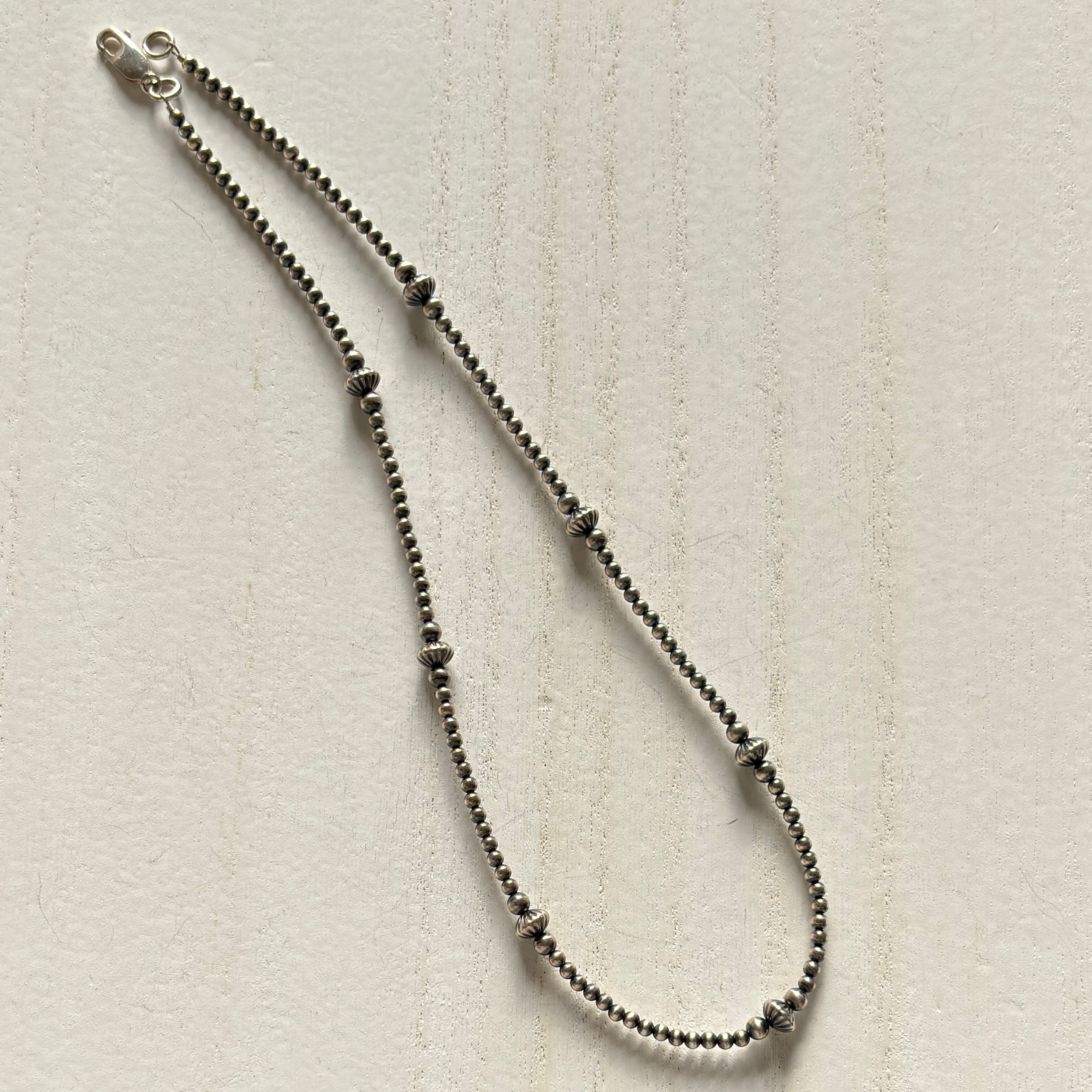 定番丸珠とギザギザホイール珠をミックスした洗練されたデザインが特徴のネックレス。