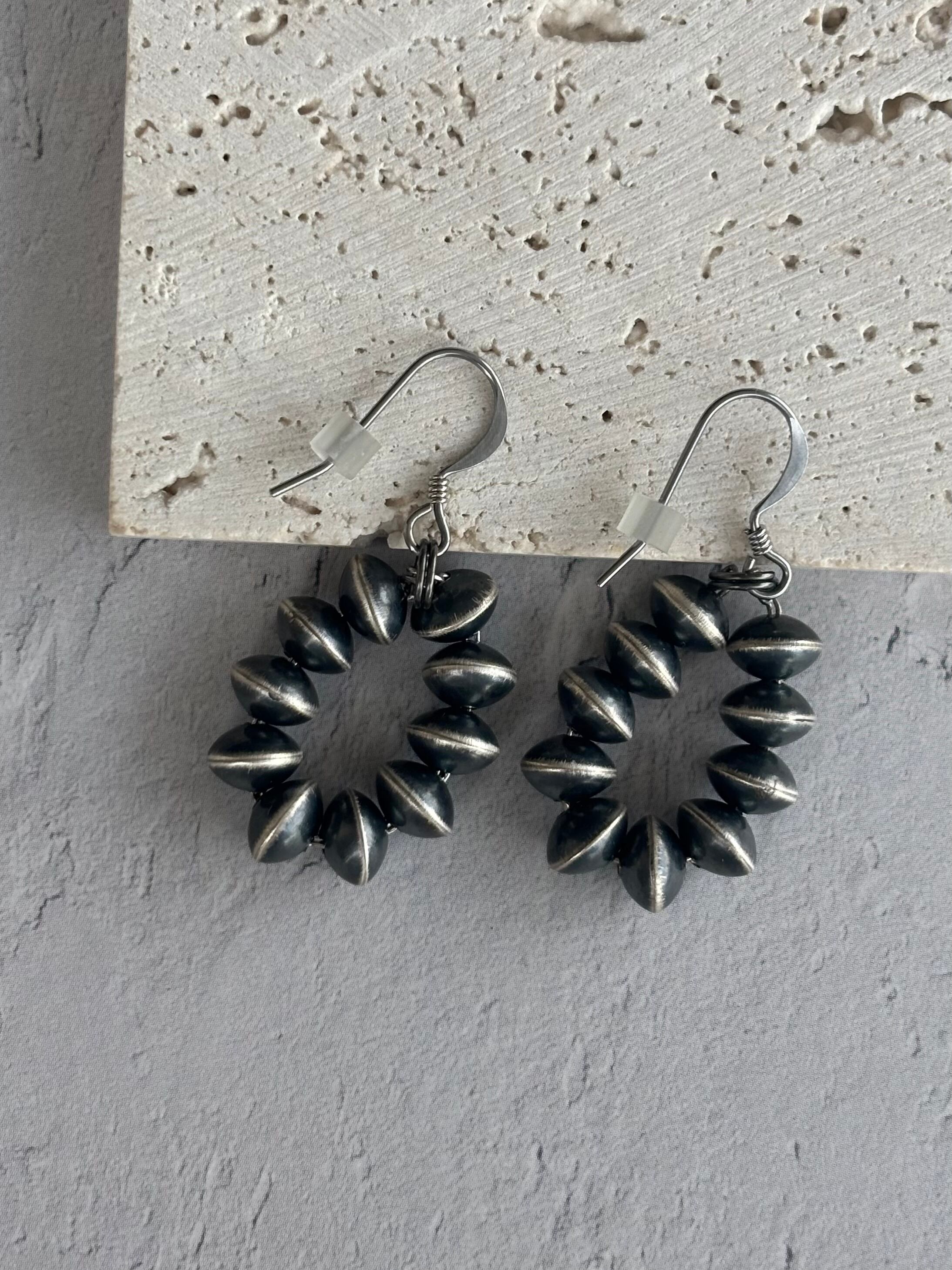 ナバホパールそろばん珠フックピアス