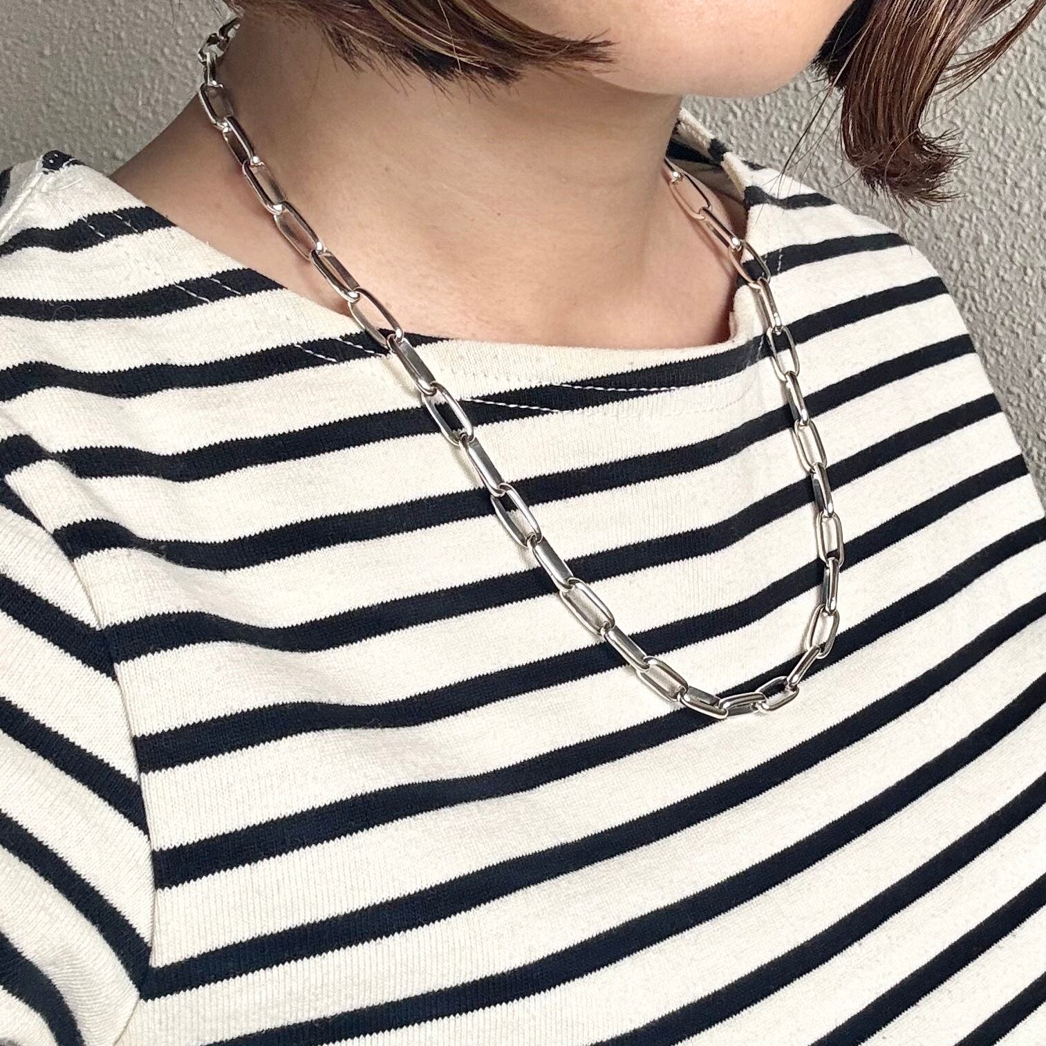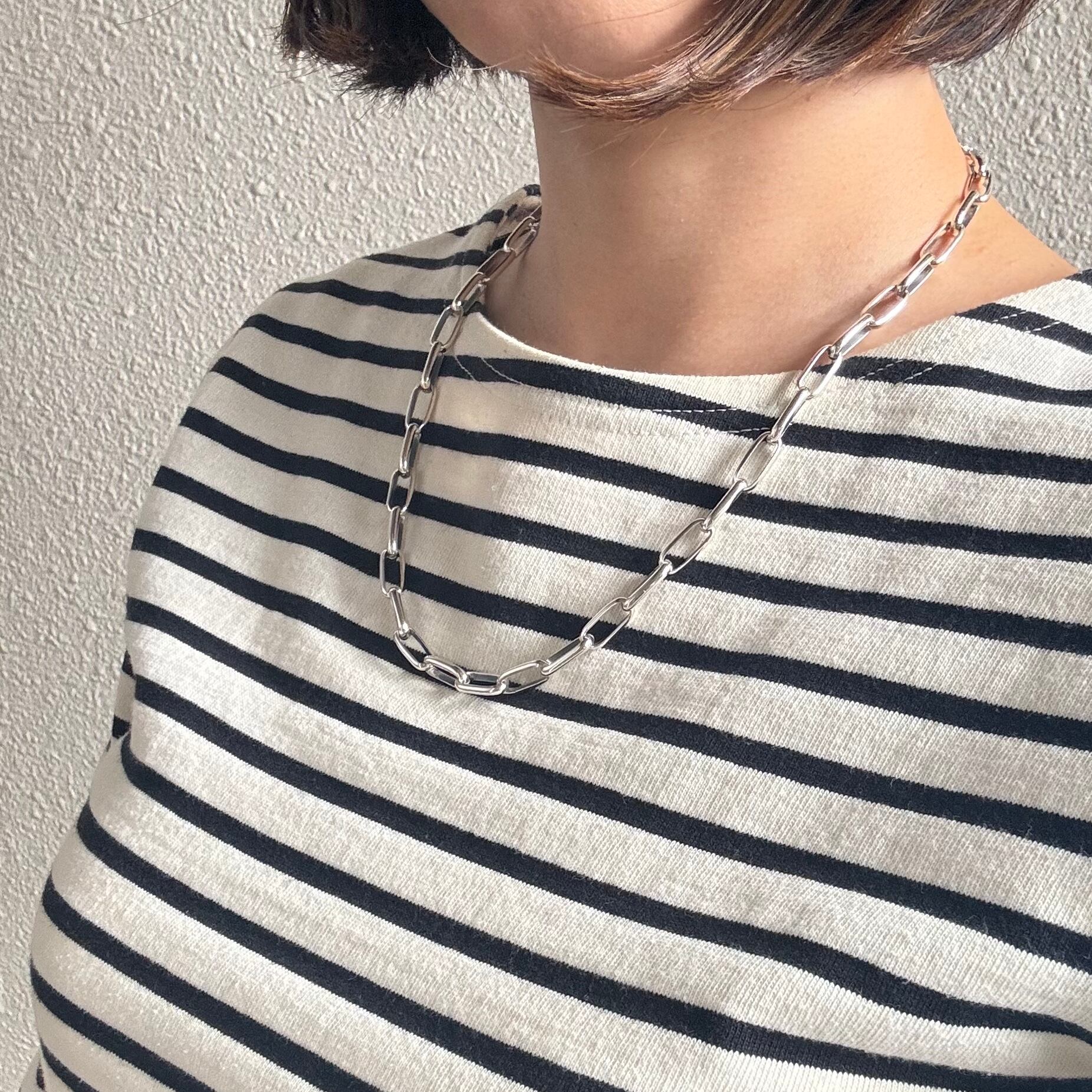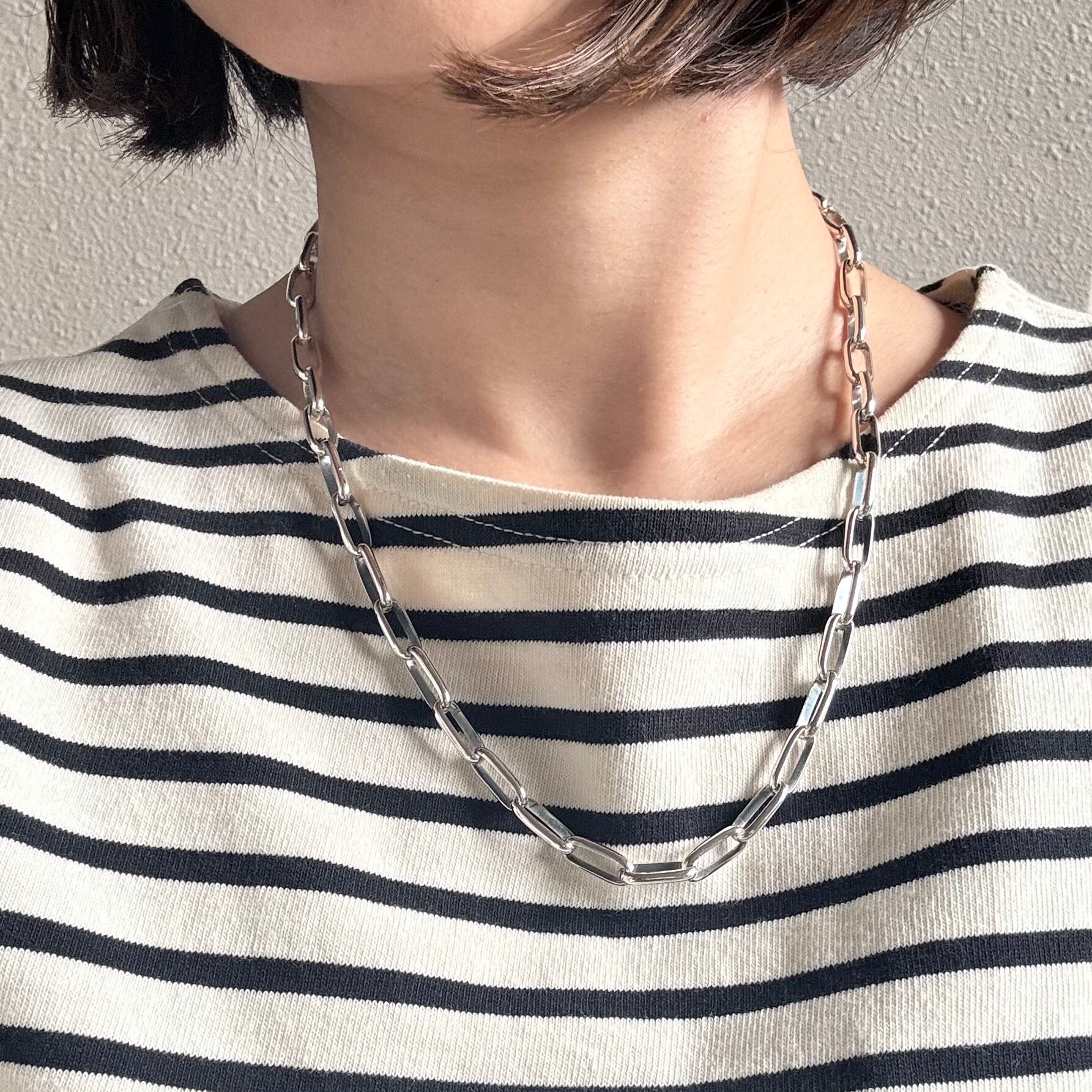 シンプルで洗練されたスタイルを演出する存在感のあるシルバーチェーンネックレス。