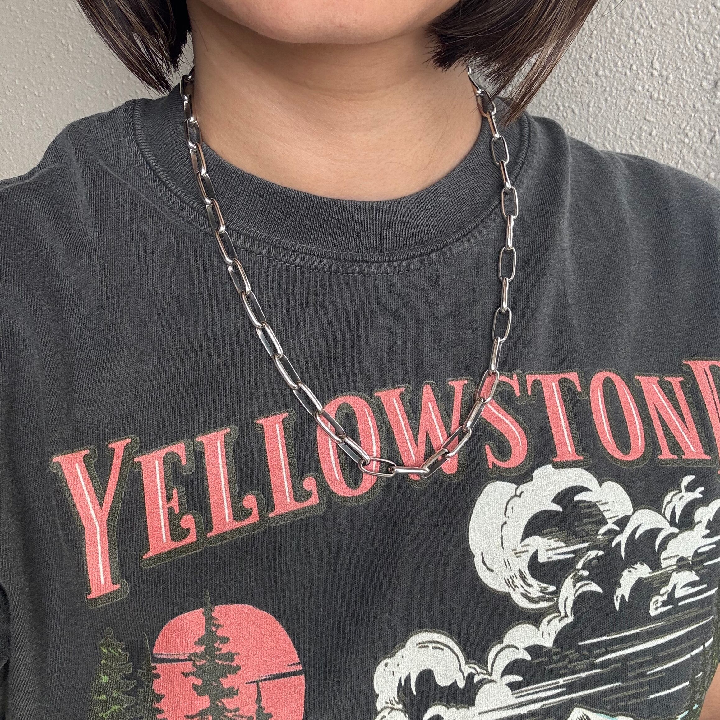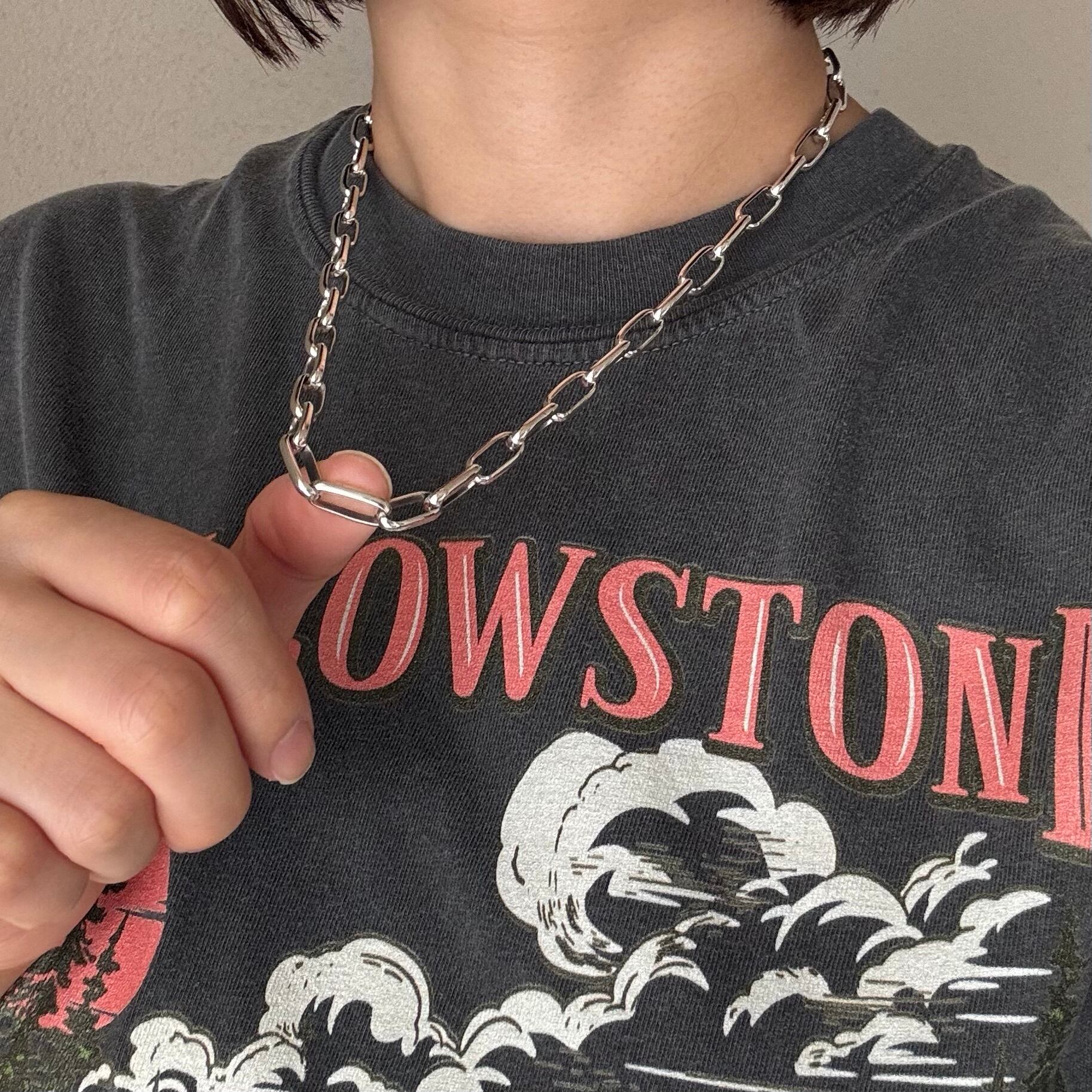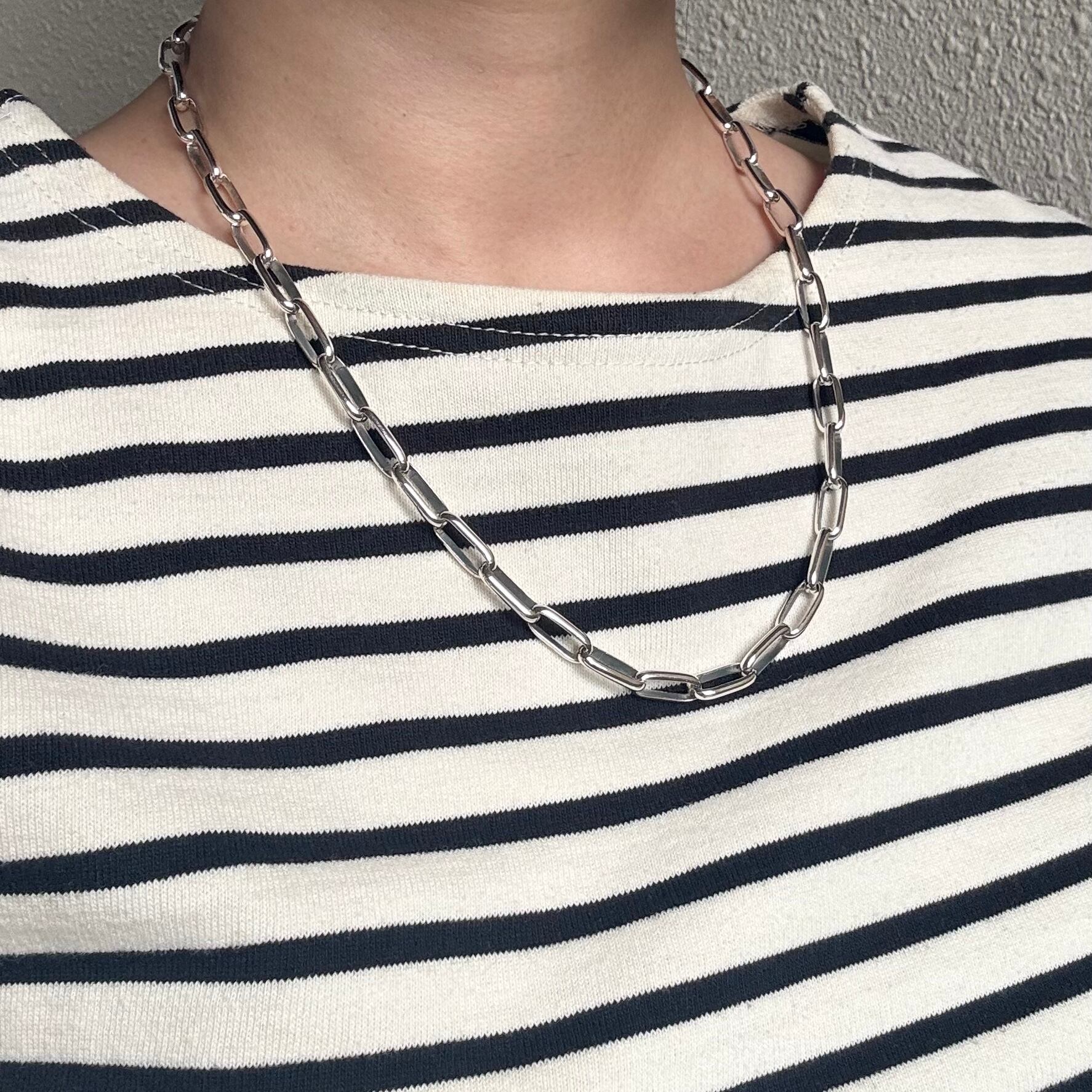 シンプルで洗練されたスタイルを演出する存在感のあるシルバーチェーンネックレス。