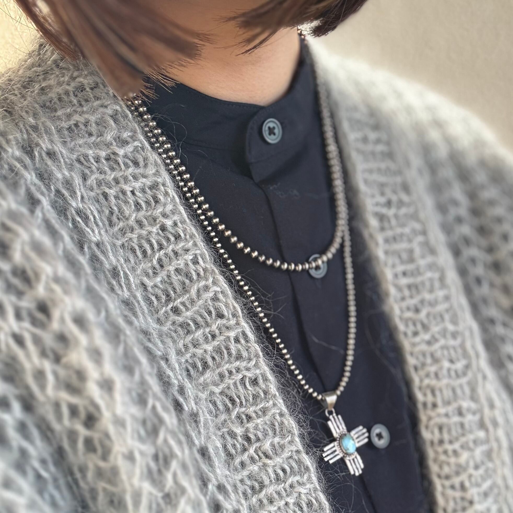 ナバホパールはもちろん、シンプルなチェーンとの組み合わせもおすすめです。