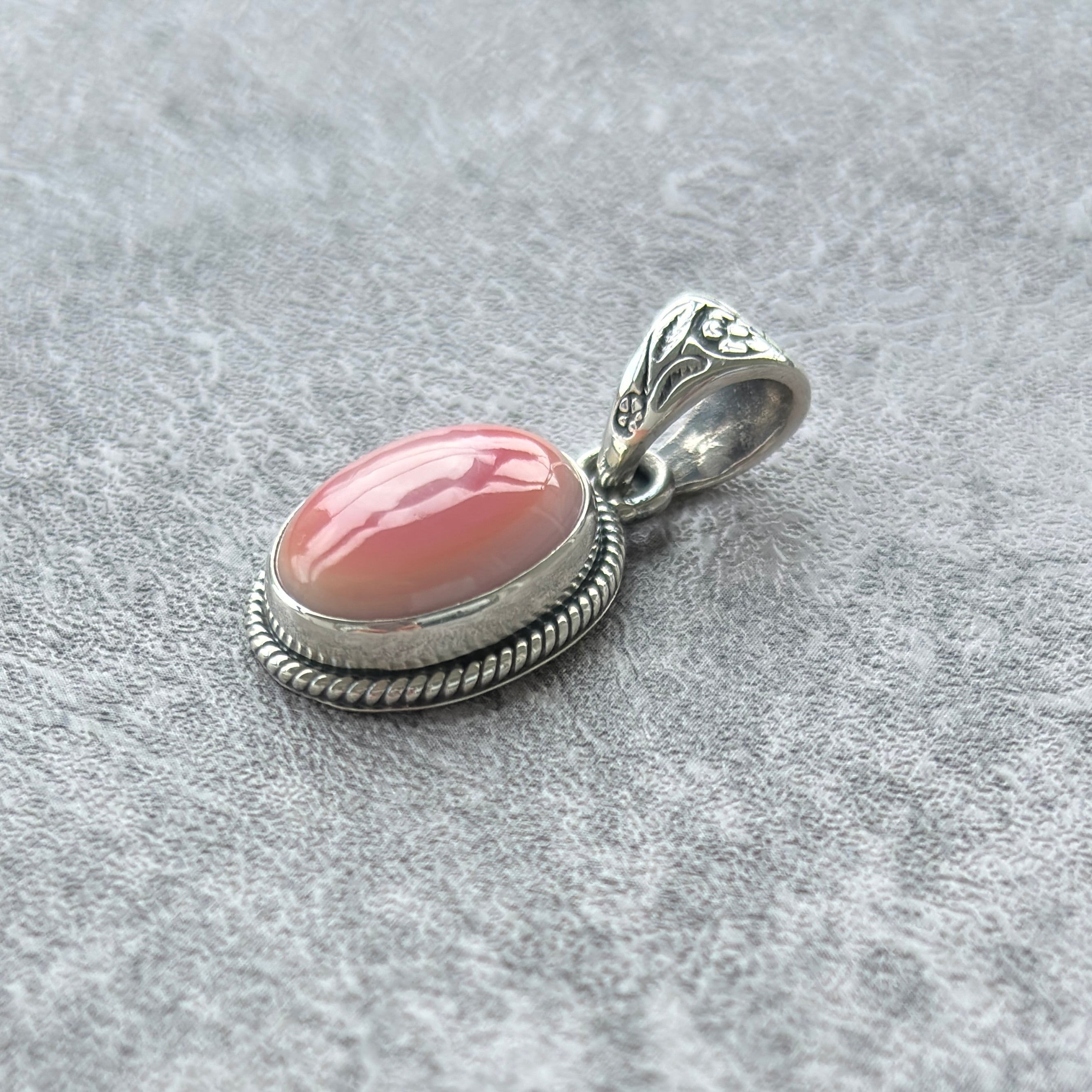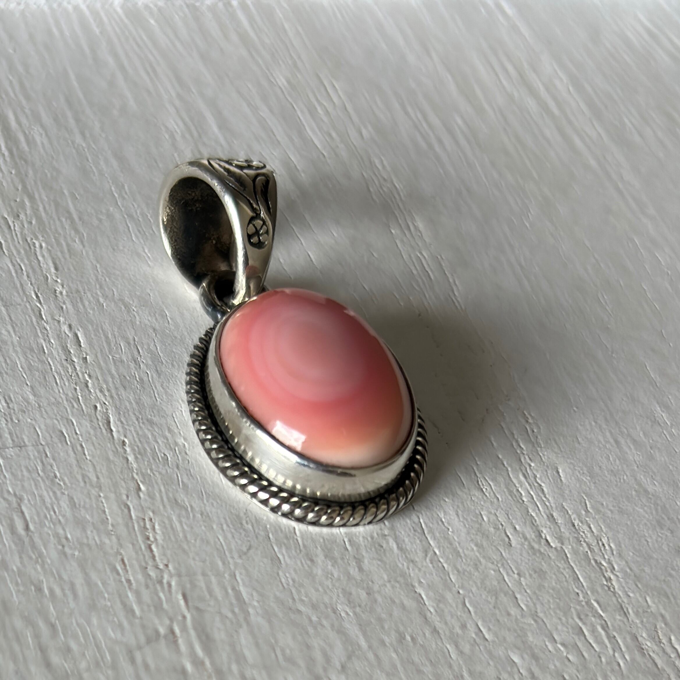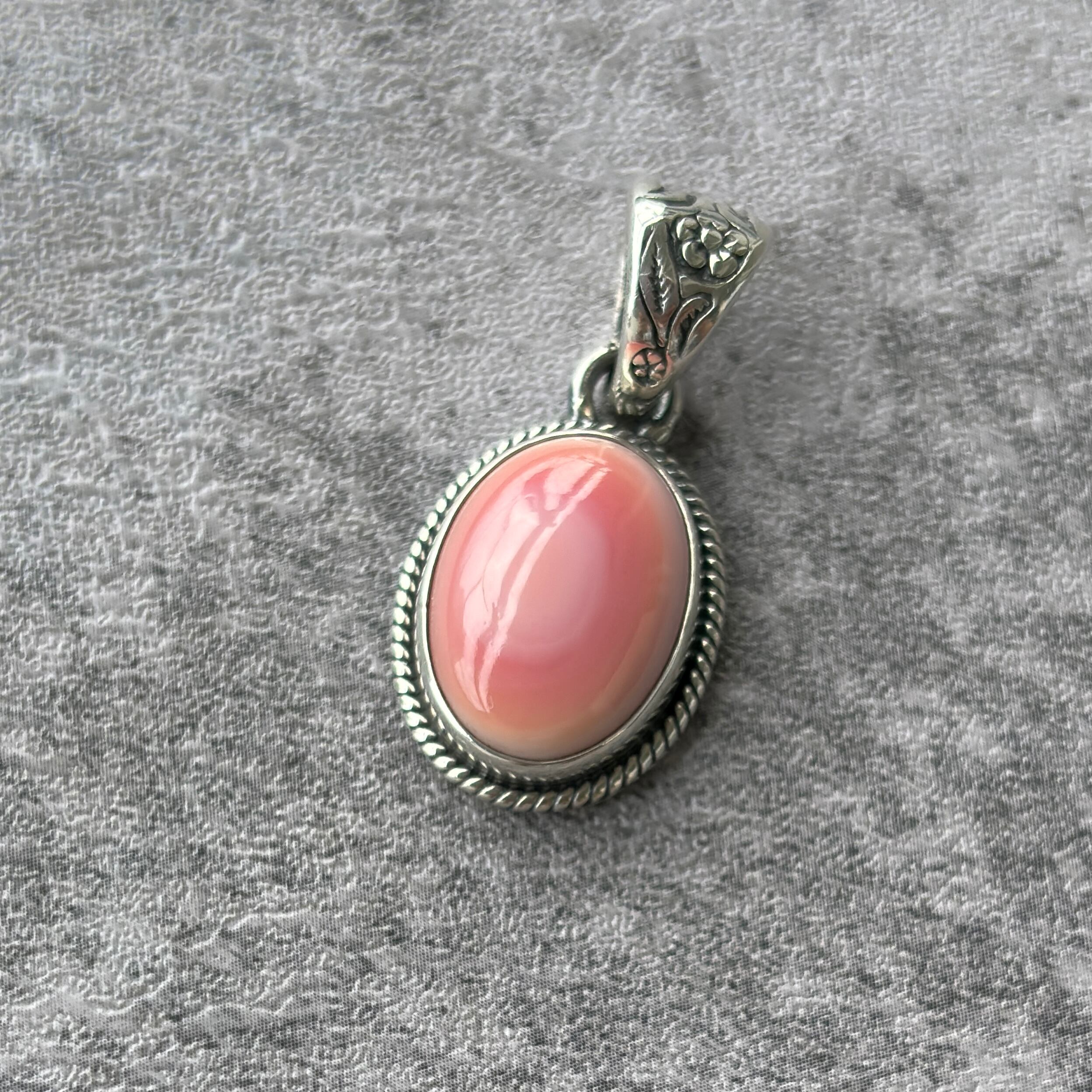 このミルキーな淡いピンク色は、貝の内側の色で、石ではありませんが、子宝、子育て、夫婦円満など女性性、母性愛のお守りとしてパワーストーンの一つに数えられています。