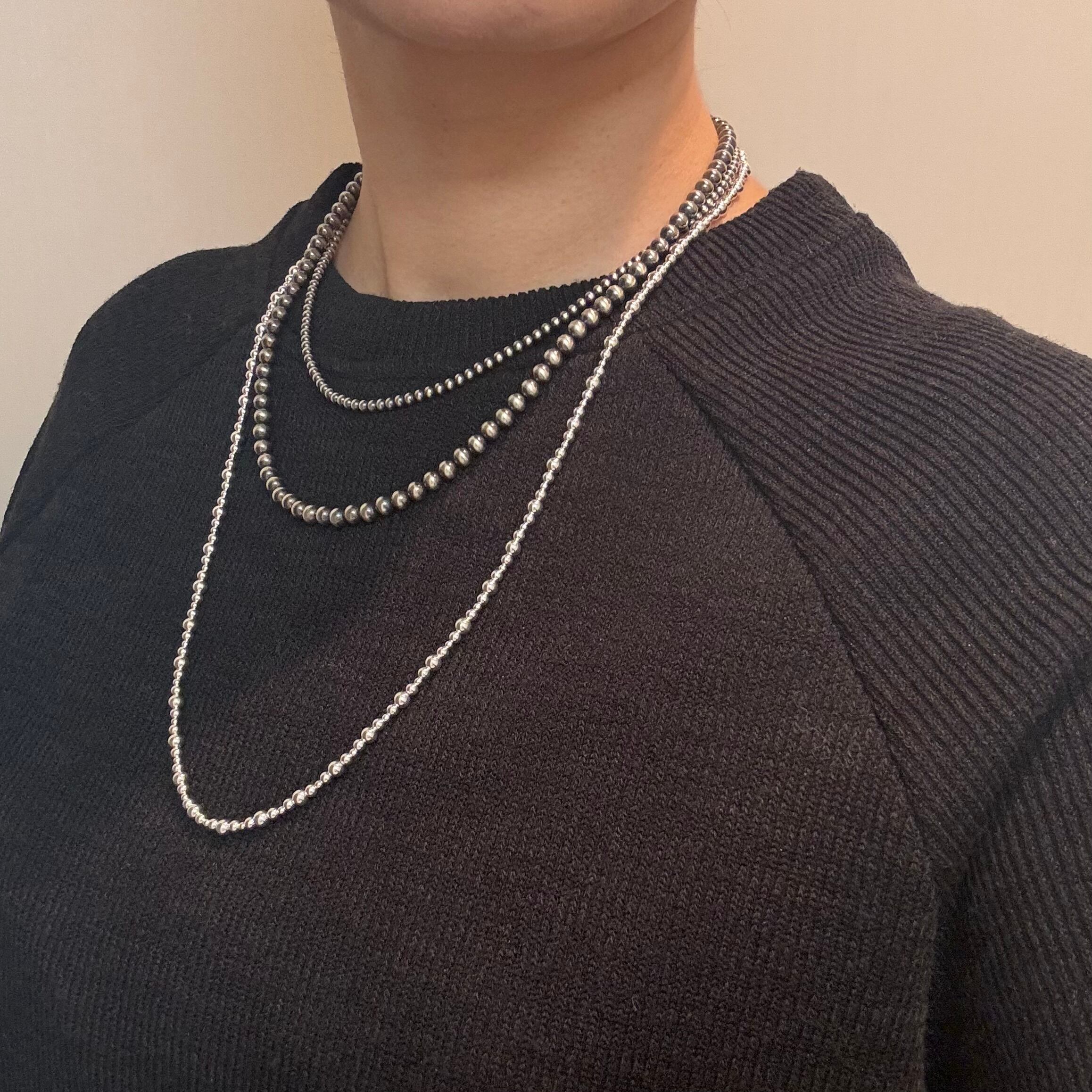 いぶし銀丸珠 5mm x 45cm ネックレス