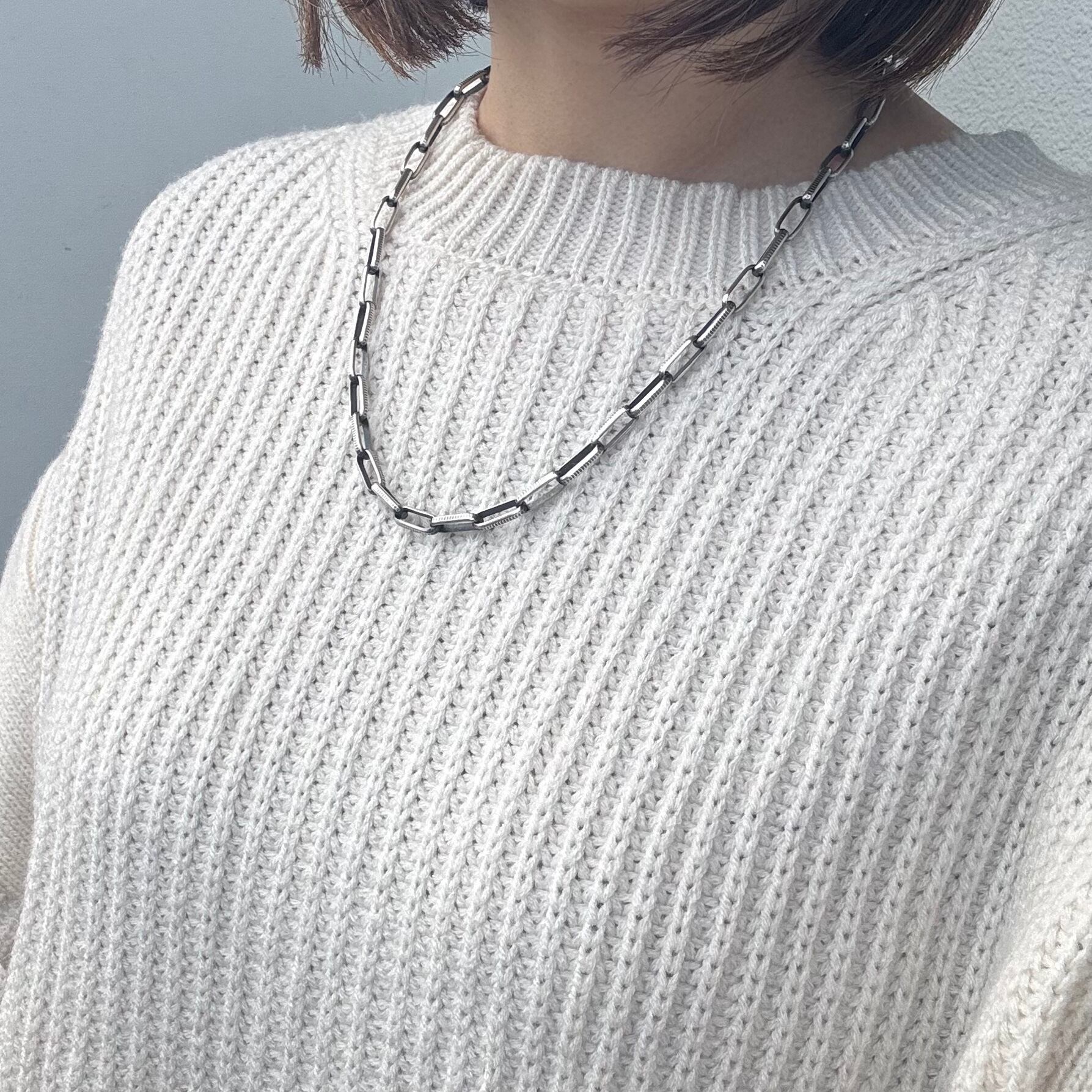 シンプルで洗練されたスタイルを演出する存在感のあるシルバーチェーンネックレス。