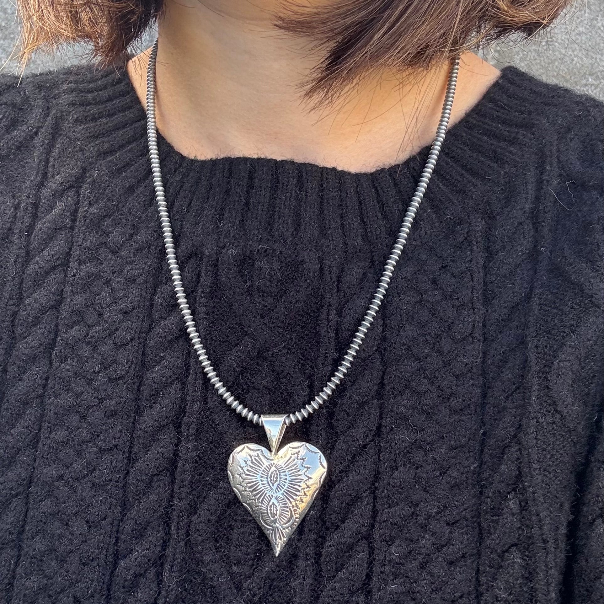 ハートだけどオールシルバーで可愛すぎない、大人可愛いペンダントヘッド。