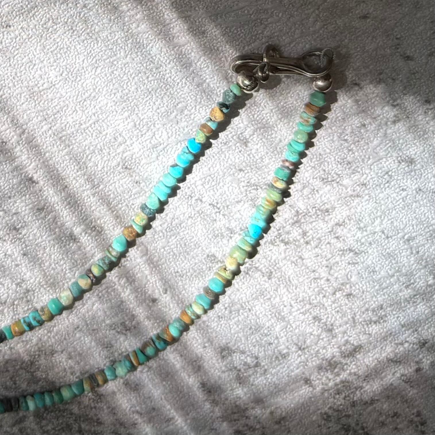 ※ターコイズビーズの一部に欠けや傷が見られたり、ビーズ一つ一つの大きさや色合いが異なっておりますが、ハンドクラフトならではの味としてお楽しみください。